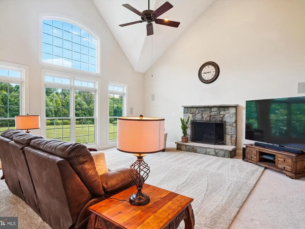 • Floor-to-ceiling stone fireplace