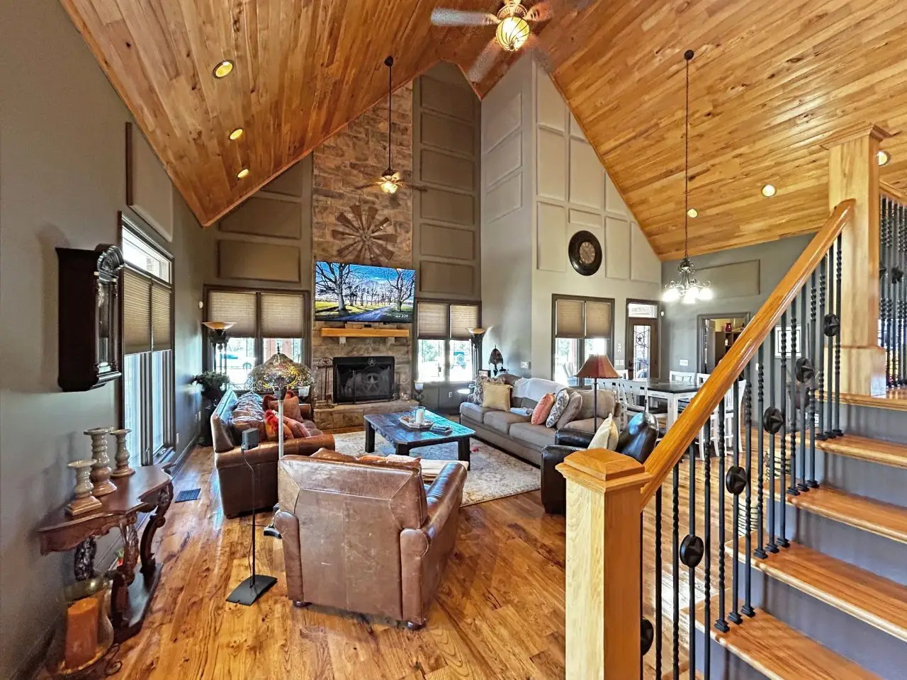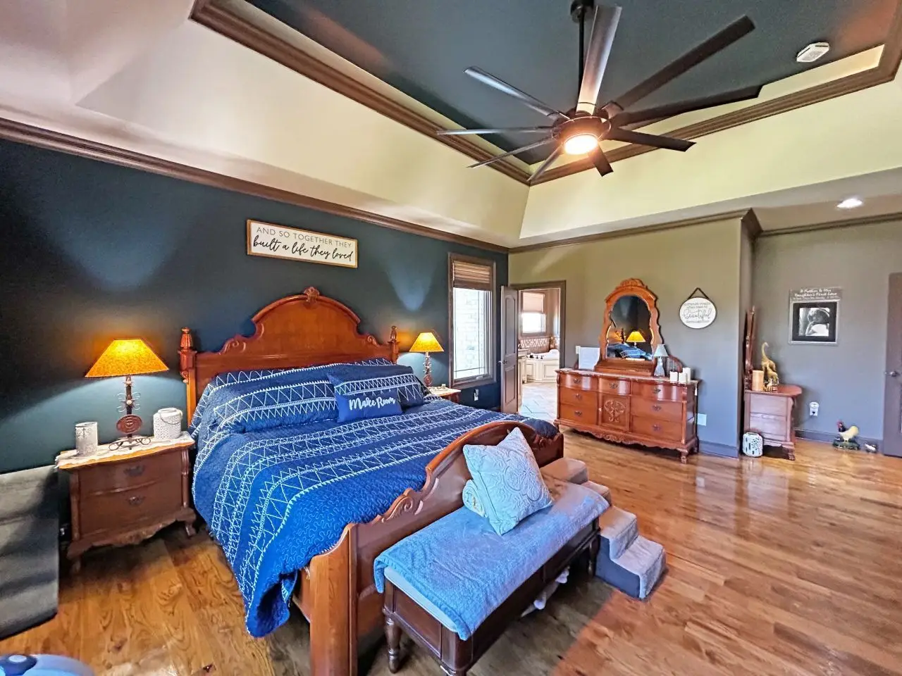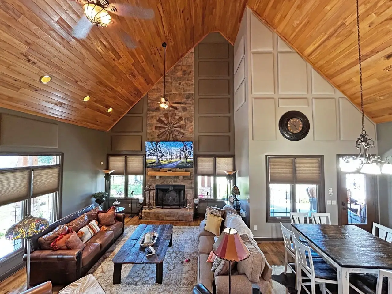 This Absolutely Gorgeous Custom-Built Home on 5 Lovely Acres is a Charmer you will not want to miss. 4 BR 4½ Baths. Beautiful Kitchen with Granite Counter Tops, Double Pantry, SS Appliances (Double Ovens, Built-In Microwave, Dishwasher, Refrigerator, Bun Warmer) that opens to a nice breakfast room which flows to the relaxing family room with wood burning fireplace. Primary suite is on the main level and has a jacuzzi tub, tile shower, heated floor, and huge walk-in closet. Delightful Media/Game room upstairs. Safe room and heated & cooled work area down. Abundant storage over the 3-car garage. Side porch with wood burning fireplace. Patio with Hot Tub. Furniture is negotiable. Seller is offering up to 45k for interest rate buydown or closing costs. Comes with One Year Eagle Premier Home Warranty. This one has it all. Do not miss it.