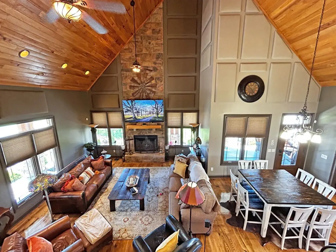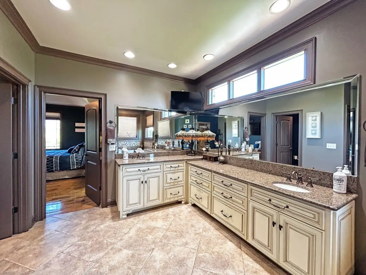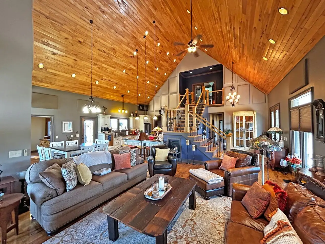 This Absolutely Gorgeous Custom-Built Home on 5 Lovely Acres is a Charmer you will not want to miss. 4 BR 4½ Baths. Beautiful Kitchen with Granite Counter Tops, Double Pantry, SS Appliances (Double Ovens, Built-In Microwave, Dishwasher, Refrigerator, Bun Warmer) that opens to a nice breakfast room which flows to the relaxing family room with wood burning fireplace. Primary suite is on the main level and has a jacuzzi tub, tile shower, heated floor, and huge walk-in closet. Delightful Media/Game room upstairs. Safe room and heated & cooled work area down. Abundant storage over the 3-car garage. Side porch with wood burning fireplace. Patio with Hot Tub. Furniture is negotiable. Seller is offering up to 45k for interest rate buydown or closing costs. Comes with One Year Eagle Premier Home Warranty. This one has it all. Do not miss it.