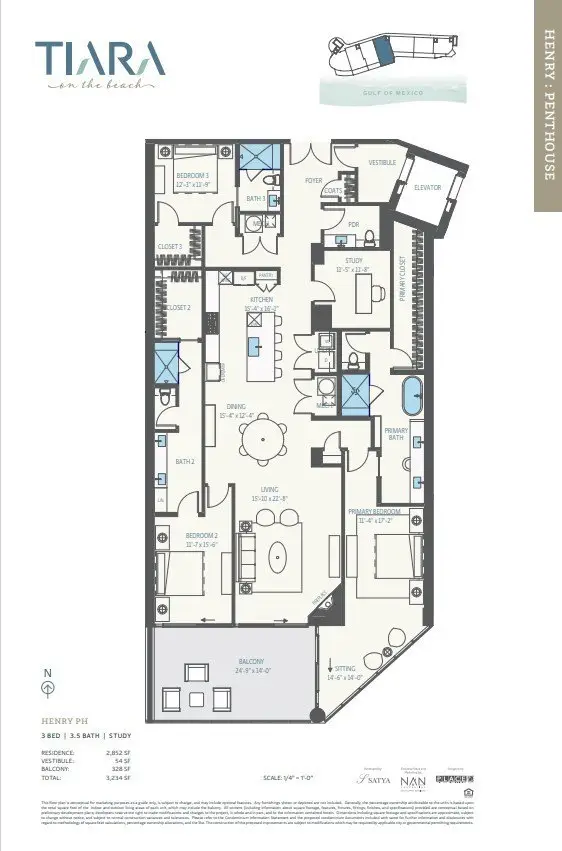 Open House November 1st 11:00AM-3:00PM. Now under construction! Welcome to the Henry Penthouse at Tiara on the Beach- This floorplan is located on the 10th floor and is 1 of 7 available penthouses, which redefine the art of gracious living with a private elevator vestibule, lofty 11’ ceilings, a stunning fireplace, and all Gaggenau appliances. Contemporary and sophisticated, Tiara on the Beach will be an architectural gem nestled along one of Galveston Island’s prime locations. This luxury residence will offer an amenity-rich lifestyle on Galveston Island. Features include spacious open floor plans and endless water views. Distinctive finishes such as Italian cabinetry and the highest levels of design and craftsmanship await you. Visit our one-of-a-kind sales gallery that includes a scaled model to showcase the architecture and amenities on 300ft of beachfront. Total square footage includes square footage of balcony. Completion scheduled for Summer of 2027.