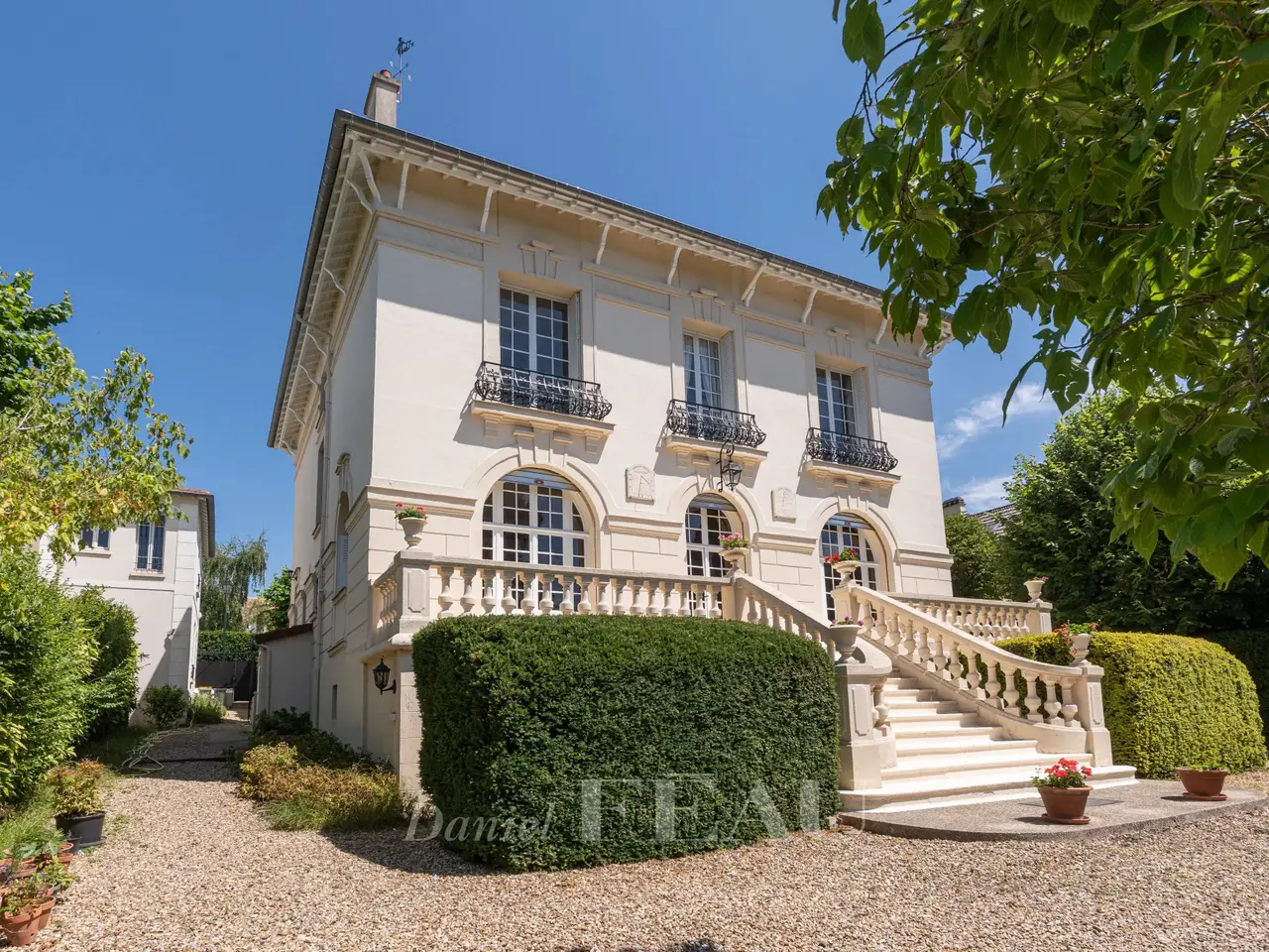 This early 20th century property is set in about 1800 sqm of leafy landscaped grounds in a peaceful environment in the immediate vicinity of the shops and the transport networks. Boasting period features including near 4-metre high ceilings, it includes two bright living/reception rooms, a dining room, and a kitchen with dining facilities. Upstairs a landing leads to four spacious bedrooms, two bathrooms and a dressing room. The top floor comprises two further bedrooms, a study and a spacious recreation room. On a near 150 sqm basement with storage rooms, a wine cellar, a utility room and a boiler. An annex comprises a garage and 25 sqm accommodation to renovate.