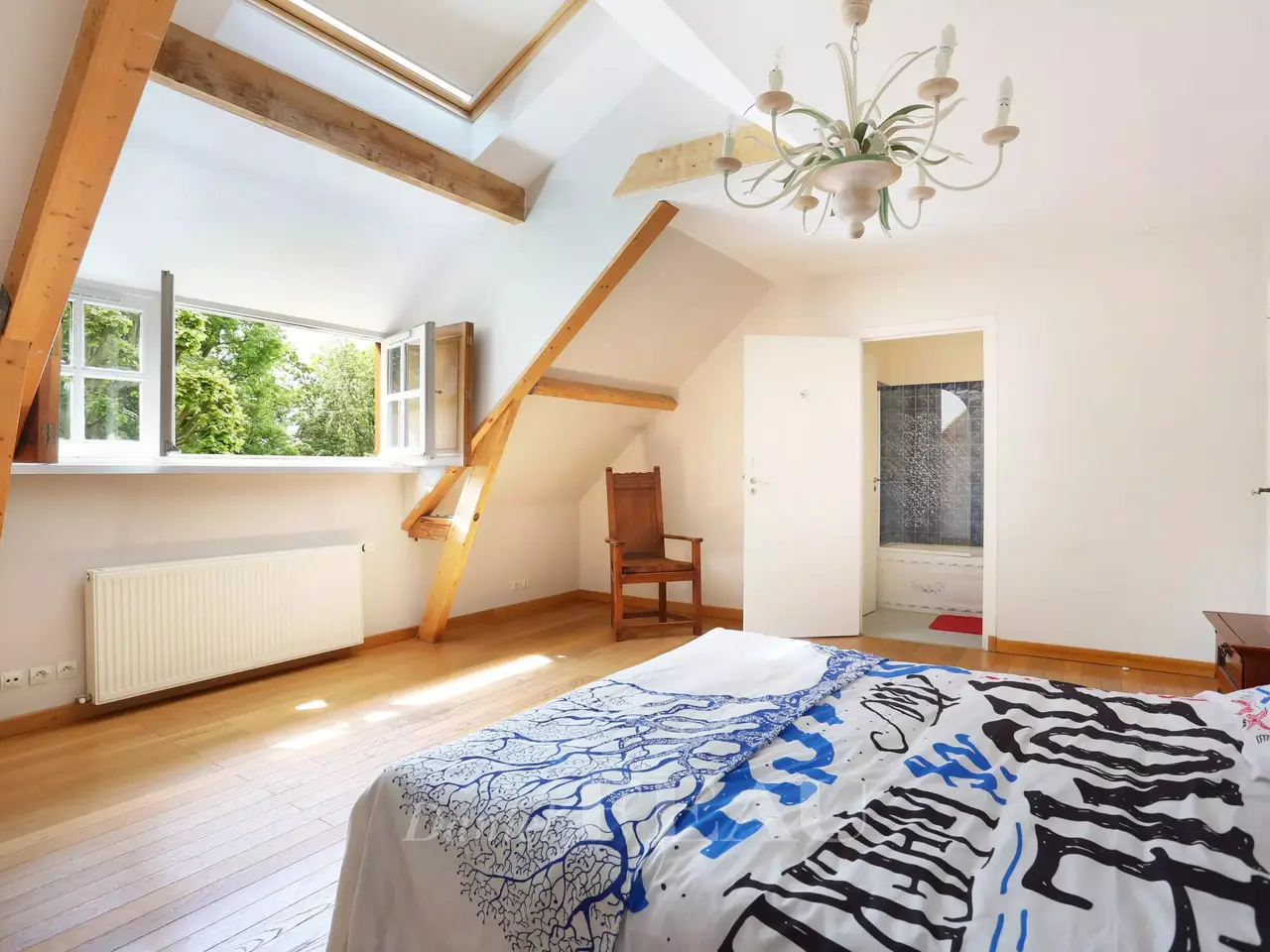 In the immediate vicinity of schools and the city center, this house of 340 sqm living space (possibility of 400 sqm living space by converting the attic of the first floor), is built on a beautiful plot of 2 357 sqm, facing south and out of sight. Pleasant to live on two levels, it benefits on the ground floor, an entrance with guest cloakroom, a double living room of 65 sqm, a dining room, a large kitchen and a master suite of 100 sqm (bedroom, office/ dressing room and bathroom), giving each (e) on the garden. This level also has a service room with its bathroom. The floor serves three bedrooms with three bathrooms, a laundry room and a convertible attic of 60 sqm. The basement has a garage for 3-cars, a cellar and a boiler room.