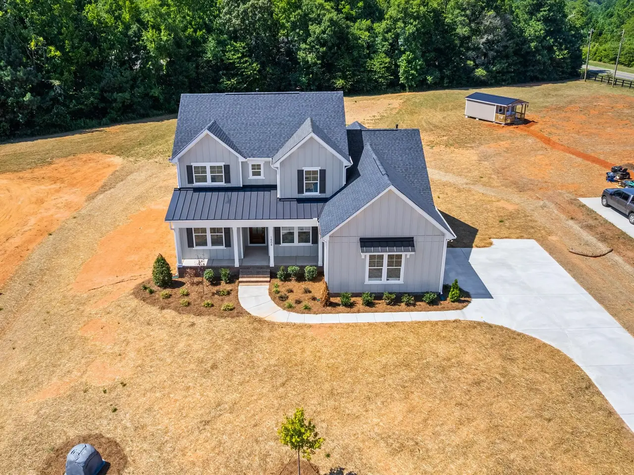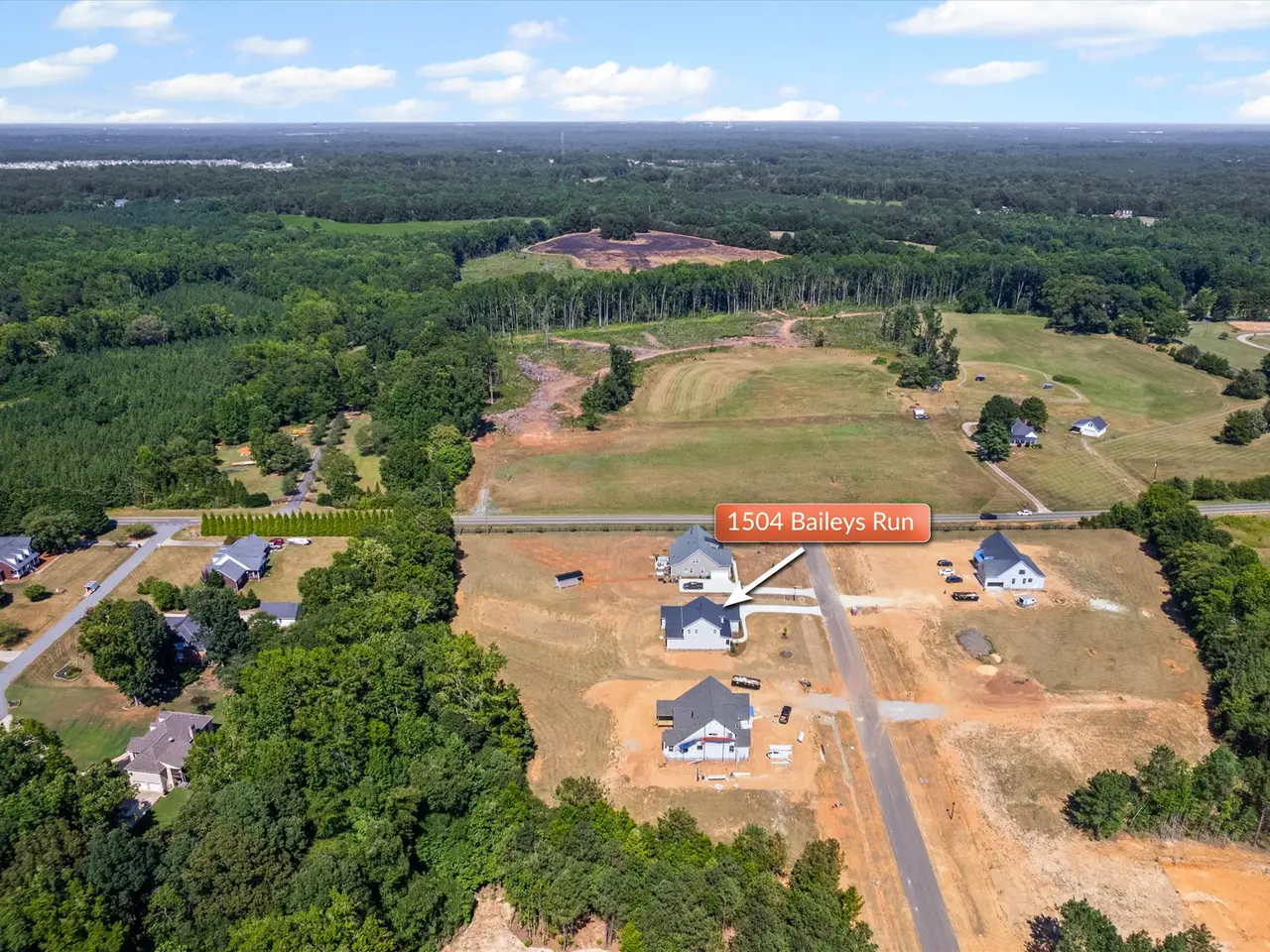1504 Baileys Run is situated on 1 acre in the beautiful new 10 home subdivision of Baileys Farm. This thoughtfully designed Wells plan offers 4 spacious bedrooms, 3 full baths, and a dedicated office. From the moment you arrive, you'll notice the attention to detail, with an inviting front porch leading to a warm and welcoming entryway. Inside you'll discover a beautifully appointed family room with a coffered ceiling that flows seamlessly into a bright and airy kitchen, complete with stacked cabinets, a generous island, and high-end gourmet appliances. The main floor primary suite is a true retreat, featuring a spa-like bath and a large walk-in closet. Upstairs, a very large loft area connects two additional bedrooms and a full bath. Enjoy outdoor living on the covered rear porch, ideal for relaxing or entertaining. Baileys Farm offers the perfect blend of luxury, comfort, and community making sure to check all the boxes!