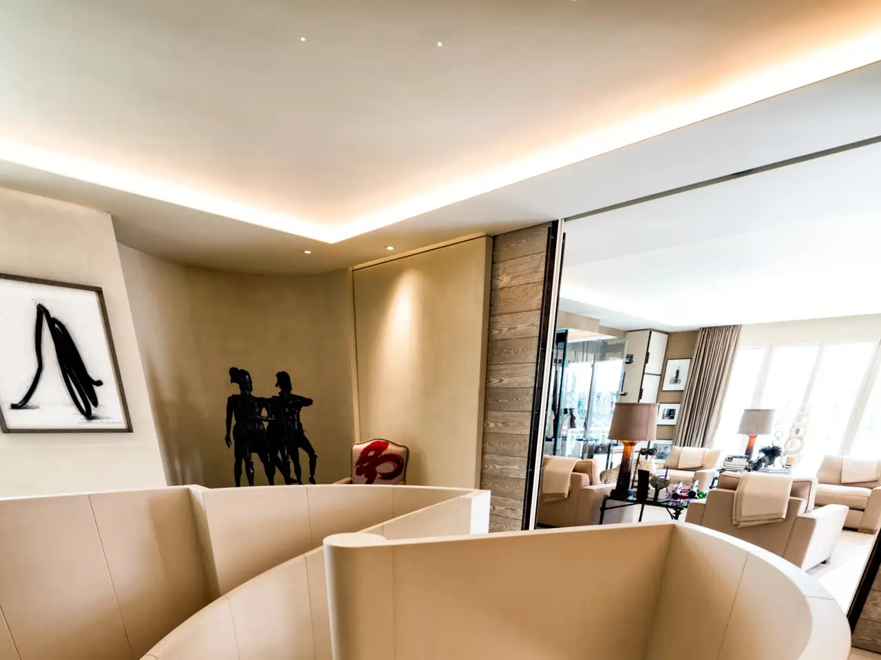 Located in Champel, one of Geneva's most prestigious districts, this exceptional 9-room apartment with 4 en suite bedrooms offers incomparable luxury and a rarity on the real estate market. Completely renovated and refurbished between 2005 and 2007 using top-quality materials. The upper level welcomes the main entrance leading to a spacious hall, showcasing the remarkable quality of the renovation finishes. Here you'll find a bright, spacious study, the sumptuous master bedroom, opening onto a terrace, with two dressing rooms and a bathroom. Two further bedrooms with their respective shower rooms, a boudoir and a studio with a small kitchen complete this level. A vast terrace of almost 90 m², perfectly laid out for relaxation, extends the space. A laundry room, hammam, storage area with wine cellar and utility room add practicality and functionality to this floor. The lower level hosts a spacious professional kitchen, a luxuriously appointed living and dining room, creating a warm and welcoming space. A dedicated visitor entrance and WC further enhance the conviviality. A direct opening leads to a sunny terrace and exclusive access to the private and condominium gardens, both separated by fencing and planting. The apartment also features two cellars, three basement parking spaces and one outdoor parking space. This exceptional property offers an incomparable living environment, combining modern comfort with timeless elegance. The unique features and high-quality finishes make this a rare residence in Champel, a renowned address in the canton of Geneva.
