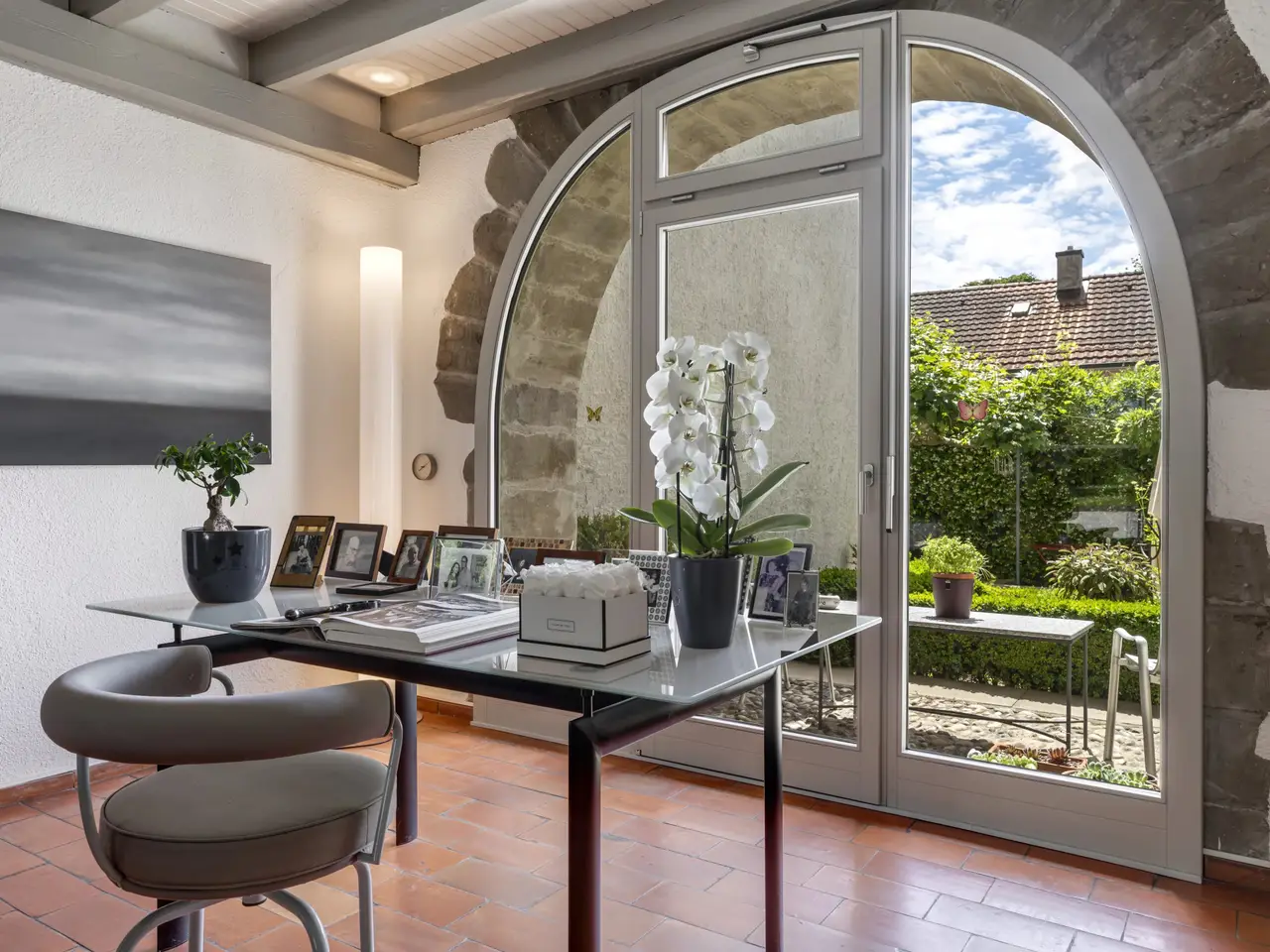 Nestled in the heart of the picturesque village of Aire-la-Ville, this splendid village house stands out due to an exceptional renovation orchestrated by ASS Architectes. The architecture, both interior and exterior, captivates with its timeless elegance. Carefully renovated and maintained, this property harmoniously blends the authentic charm of yesteryear with modern-day comfort. Upon crossing the threshold, you are welcomed by a spacious entrance hall leading to the living room/library, enhanced by a fireplace. One of the highlights of this home is the large winter garden, formerly a Huguenot church, now featuring automatic Stebler glass roofs, providing a space filled with light and tranquility. The adjacent patio leads to a large dining room, also equipped with a fireplace. The high-end kitchen, equipped by Forster, will delight cooking enthusiasts with its modern appliances and practical layout. Upstairs, there are four large bedrooms, including a sumptuous master suite with its own fireplace and shower room. An additional bedroom can serve as an office or conference room, according to your needs. A small lounge and ample storage space complete this living area. Amenities include an additional shower room and separate toilets, as well as two attics for optimal storage space. The functional basement houses four large cellars, including a wine cellar kept at an ideal temperature of 10-11°C, a cellar for gardening equipment, a storage cellar, and a laundry/boiler room with direct access. Outside, the landscaped 1,200 m² garden, designed by Boccard in 2015, offers a haven of peace and greenery. The courtyard, with its shelter for four vehicles and parking spaces, completes this exceptional offering. This house represents a rare opportunity to live in a setting where the unique charm of the past blends with modern comfort, creating an incomparable and enchanting living space.