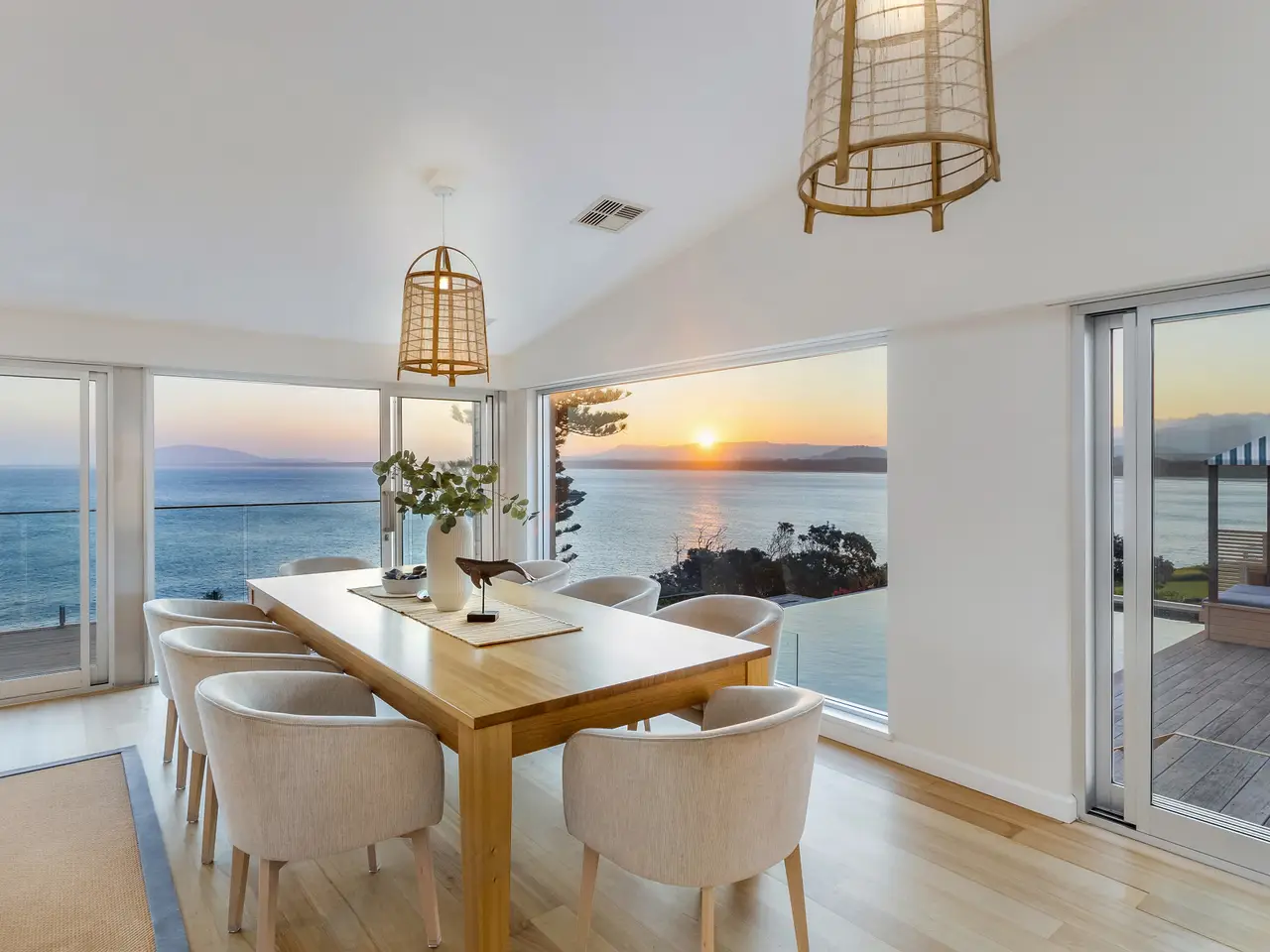 Perched in an unrivalled position on Gerroa Headland, this once-in-a-generation package is an instant gateway to a life filled with panoramic beauty, unparalleled luxury, and the endless charm of the South Coast. As a premier oceanside retreat, it boasts a breathtaking, unobstructed view that sweeps across the shimmering shores of Seven Mile Beach to Currarong, encapsulating the essence of coastal grandeur. The residence is an ode to luxury and privacy, featuring an opulent infinity pool and a heated spa set alongside a secluded pool deck. Enhanced by privacy screens, this outdoor oasis includes an automated cinema for evenings under the stars, a built-in barbecue kitchen for alfresco dining, and lounging spaces for soaking up the sun. Inside, the home is perfectly equipped for hosting multiple families or entertaining a lavish lifestyle. It features two individual kitchens, two laundries, and two expansive living areas, each with full-width balconies. Four spacious bedrooms and four bathrooms ensure comfort and convenience for all occupants. Additional amenities include locally-made bespoke furniture, an integrated Sonos sound system, automated blinds, and comprehensive security features. The property also has an outdoor fire pit, indoor fireplace, and ample parking, completing the abundant offerings. This exquisite residence is a stone's throw from the quaint towns of Berry, Gerringong, and Kiama, ensuring easy access to a wealth of local attractions. From boutique vineyards and majestic mountain ranges to unspoiled beaches, it promises a lifestyle replete with moments that will be treasured forever, setting the scene for a life of luxury and endless enjoyment. •Sublime oceanfront property atop Gerroa Headland with panoramic views that will never be built out •Unrivalled view of Seven Mile Beach to Currarong •Two-storey residence with four bedrooms and four bathrooms •All bedrooms have built-in robes, plus one with access to the front courtyard •Two kitchens, two laundries, and spacious living areas with full-width balconies •Lavish outdoor area with the best infinity pool on the South Coast, plus a heated spa, and privacy screens •Outdoor automated cinema, built-in barbecue, day bed, and lounging space •Features bespoke furniture, Sonos sound system, and concealed blinds •Fully remote security system and back-to-base alarm system •Includes an outdoor fire pit, indoor fireplace •Double garage plenty of off-street secure parking •Minutes from Berry, Gerringong, Kiama, local vineyards, and idyllic beaches.