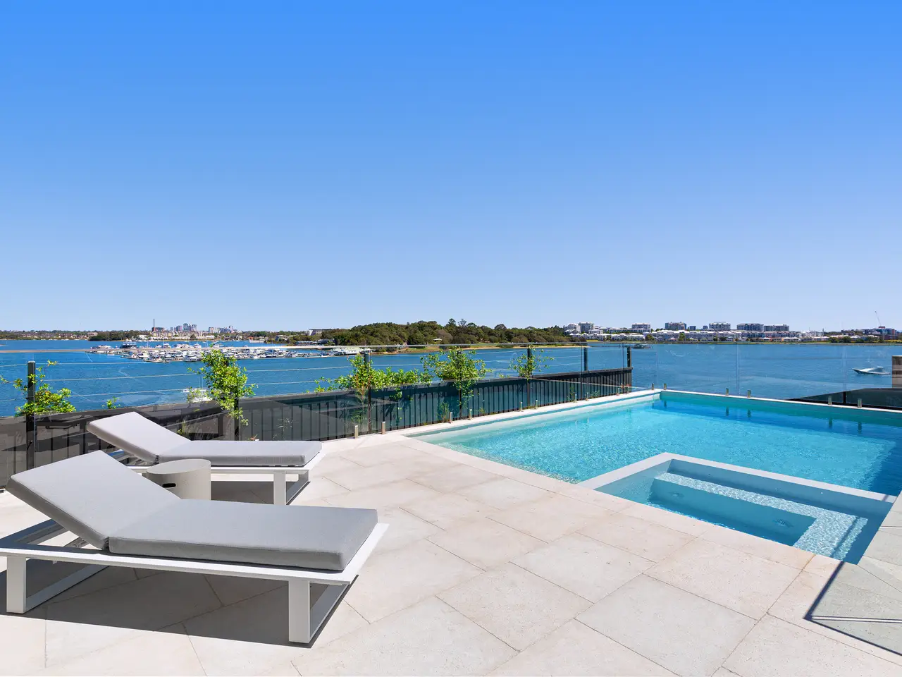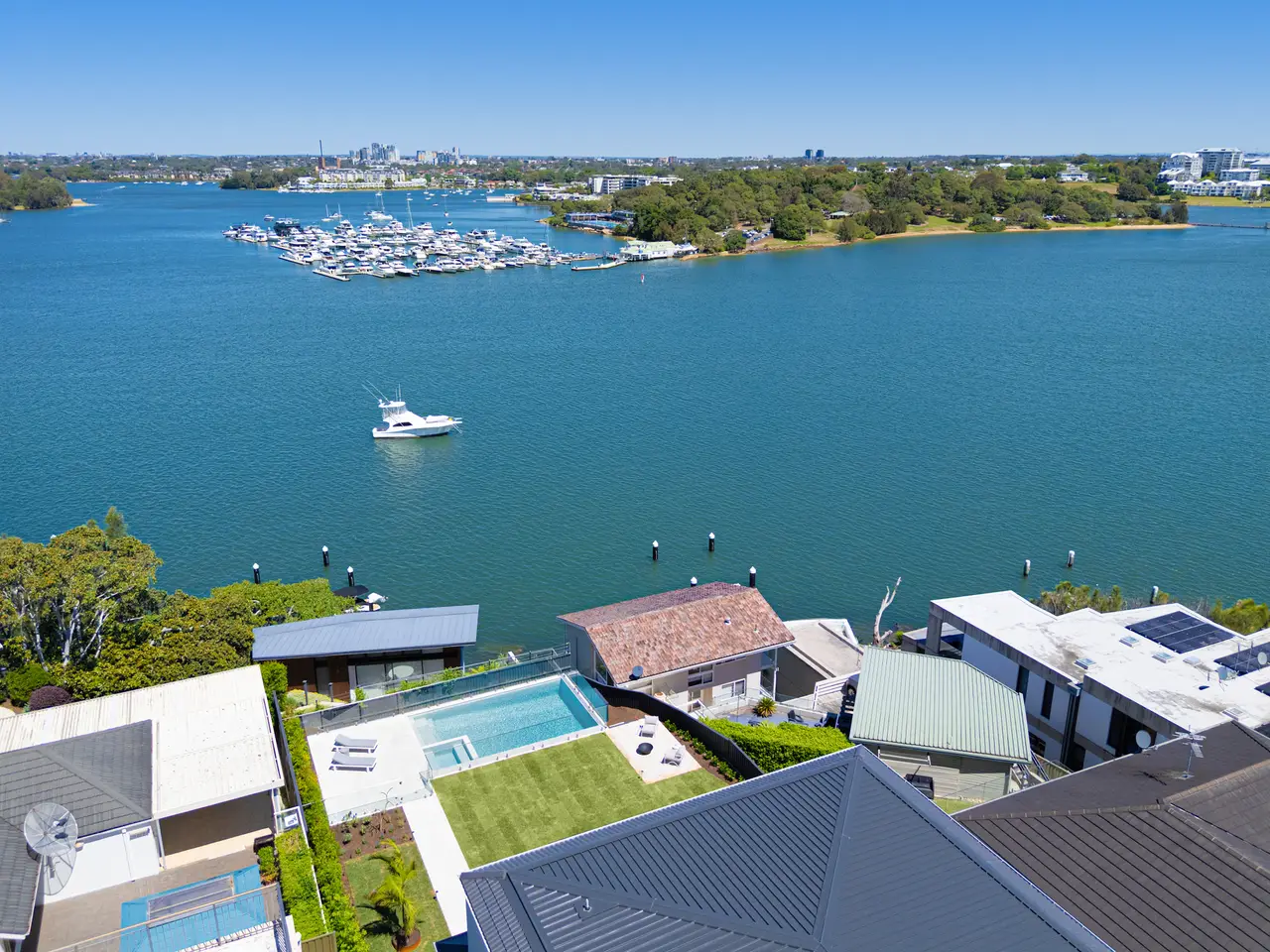 Set in the exclusive Gladesville peninsula, with uninterrupted water views and enjoying magical sunsets, this brand-new, custom designed double brick and concrete home isn't just position-perfect, it's a prestigious statement of luxury providing family living in the highest class. Grand volumes and glorious high ceilings present light-filled interiors, while premium inclusions, a beautiful heated pool and spa and a sleek emphasis on in/outdoor flow ensure its status as a modern and sophisticated masterpiece. – Bespoke residence by award-winning designer/builders Hall & Hart – Sumptuous family zones extending to full-width alfresco, BBQ and pool – Level backyard, upper terrace and retreat – all boasting never to be built out views – Miele kitchen appliances, marble benchtops and island, butler's pantry – Vast hotel-style master quarters with dressing room and full ensuite – Dedicated media room, hardwood floors, DLUG plus circular driveway for up to 4 cars – Whisper-quiet setting minutes to schools, shops and bayside parks