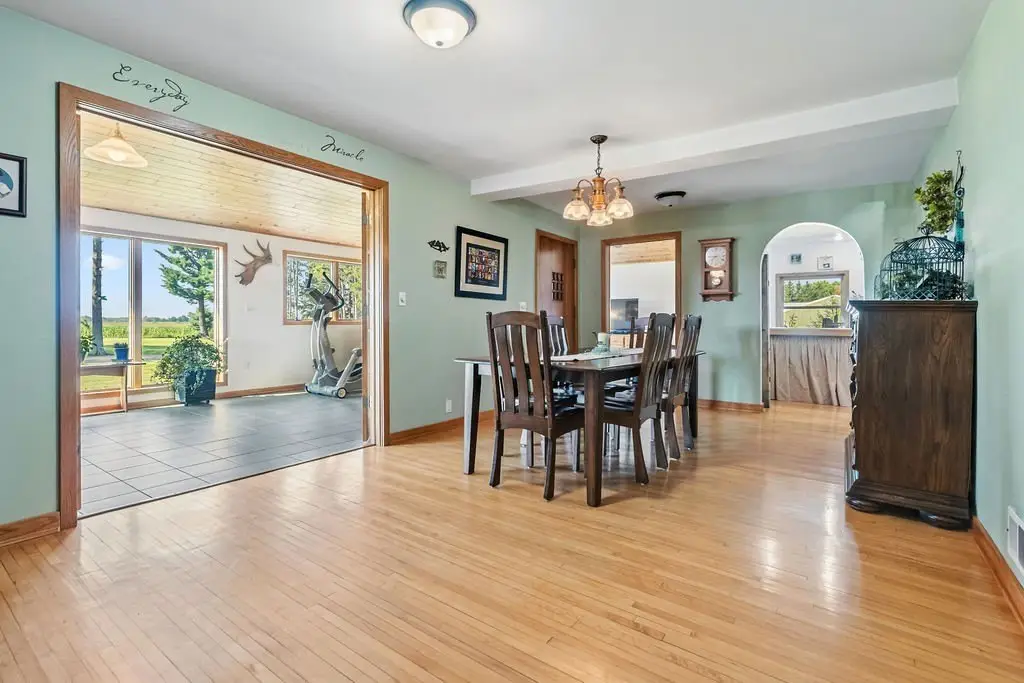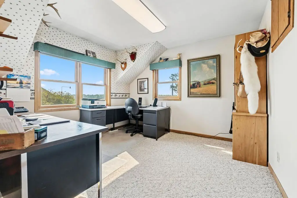 For the first time in over a century, this cherished legacy farm is being offered to a new steward. Spanning 420 acres of productive tillable land, woods, beautifully maintained homestead & outbuildings, this turnkey operation offers a rare opportunity. The welcoming farmhouse features a wrap-around porch for sunrise coffee. Sunroom & living room w/In-floor heat & great views! Main floor laundry. Generations of dedication are evident in the well-kept grounds, raised gardens beds, apple trees, multiple ponds, deer stands, 2 detached garages, workshop, machine shed, hay storage shed, pole building, cow yard w/automatic waterer, granary, multiple new roofs. Income-producing commercial building w/3-phase power, office space, warehouse, cold storage w/loading docks. Located at the end of a road this property offers both seclusion & convenience. Whether you're expanding your agricultural operation, starting a family farm, or seeking a rich hunting and wildlife retreat this property delivers.