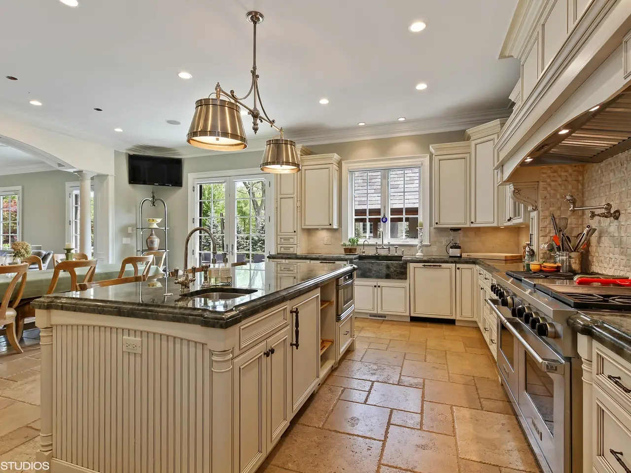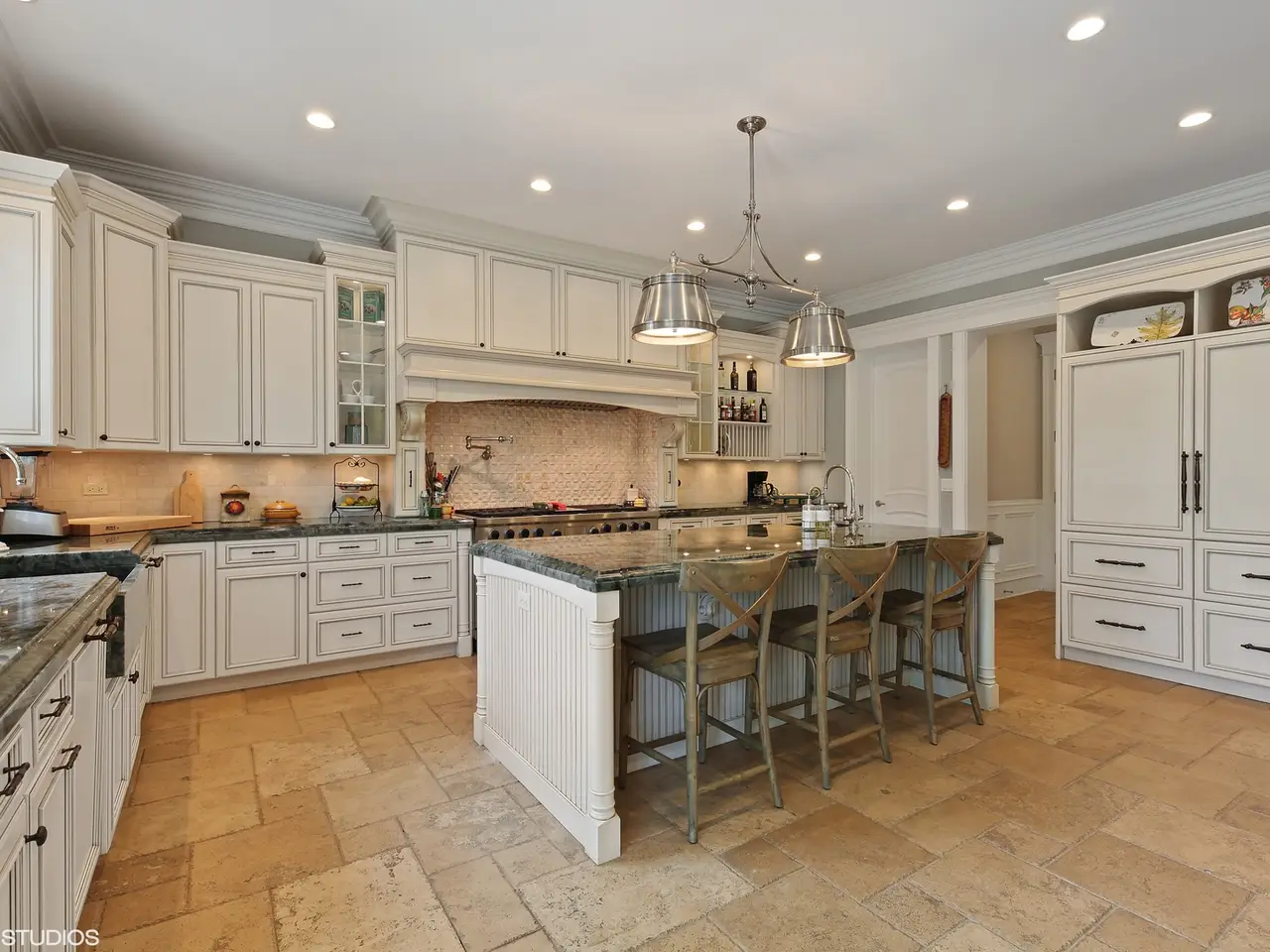 Extraordinary French style stone home on over half acre golf course setting. Elegant foyer with stone floor, and hand scraped wide plank walnut floors on main level. Generous dining room, billiard room, office, and family room with limestone fireplace and access to amazing yard. Remodeled kitchen with high end appliances, limestone floor and large eating space. First floor mudroom with laundry. Grand staircase to the 2nd floor with a spacious primary bedroom with two private balconies. Recently updated deluxe primary bath with double vanity, makeup area, separate shower and tub. Oversized completely outfitted closet. Four other en suite bedrooms and additional laundry room complete the 2nd floor. Bright, fully finished lower level with oversized window wells, wet bar, wine room, rec room, gym, and separate boxing room. Backyard boasts a commercial grade Stone outdoor kitchen with slate roof with a wood burning pizza oven, commercial burners, and fridge. Large heated brick paver eating area overlooking lushly landscaped yard and vegetable garden. Heated paver driveway and 3 car garage. Call Lanny for more details.