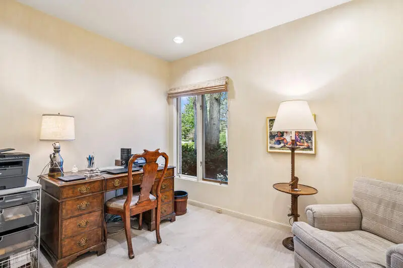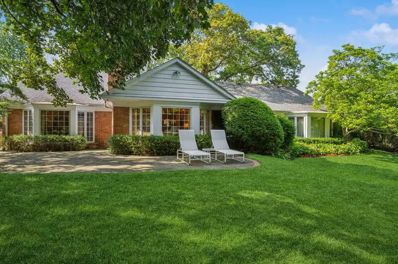 Perfect ranch situated on a lush .45-acre lot with majestic trees on an intimate east Glencoe street with beach rights. The gracious entry features a tray ceiling and opens to the living room with bay window overlooking the beautiful backyard. The nuHaus eat-in kitchen with honed marble flooring is adjoined by a laundry/mudroom with extensive storage and a nicely tucked-away office/fourth bedroom and full bath. The primary suite includes another picturesque bay window, dressing area with custom built-ins, and two generous walk-in closets. Two additional well-proportioned bedrooms share a jack-and-jill bath. The partial basement provides additional flexible space for exercise/play. A large stone patio and lovely, mature landscaping make the expansive backyard a personal haven.