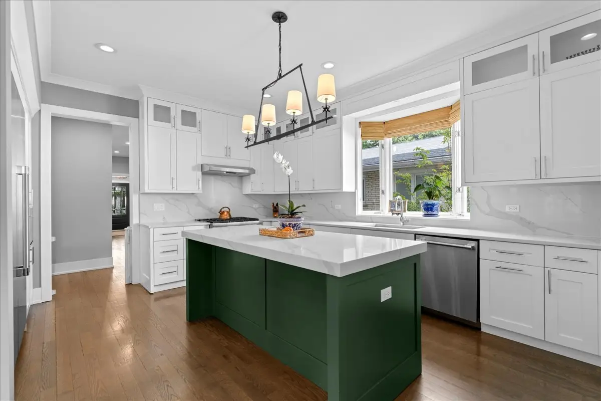 This home checks all the boxes-with an unbeatable location to match. Fully renovated down to the studs in 2019, this 4+1 bedrooms, 3.5 bathroom home has been thoughtfully upgraded and customized since, including full landscape design surrounding the house with new fencing, all creating an incredible outdoor space that's perfect for entertaining. Abundant southern exposure fills the open floor plan with light, highlighting the home's high ceilings and sleek hardwood floors throughout. The chef's kitchen is the heart of the home, outfitted with a premium Thermador appliance package, a walk-in pantry, mudroom, and dedicated office space. The second floor offers three spacious bedrooms, three full bathrooms, and a convenient laundry room. On the third floor, you'll find even more flexibility with a bonus room, additional bedroom, and ample storage. The sun-filled lower level features a large playroom and a dedicated exercise room with professional-grade gym flooring. All of this in a prime walk-to-town location-just steps from dining, parks, schools, and the Metra. Move right in and enjoy!