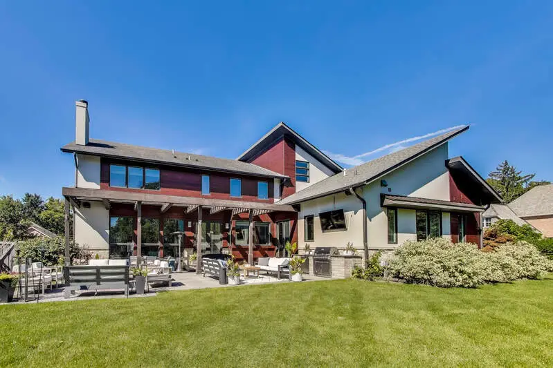 Glen Oak Acres stunner! 6 bed 5.5 bath, extra wide lot (97x133). Professionally designed from the ground up, no expense was spared. Contemporary luxury abounds. 10ft ceilings throughout 1st floor and 18ft vaulted ceilings in almost every bedroom and throughout entire 2nd floor, 9ft ceilings in basement. Custom 5" white oak hand scraped with beveled edge on site! Traffic stain on all floors. Exquisite light fixtures from Lightology. Two story foyer, double wood doors which looks on to the custom glass and floating staircase with mahogany wood wall detail. Large dining room with 7' x 30" Subzero wine fridge, gas fireplace and built-ins. Private lounge with designer wall paper and light fixtures. Huge kitchen with (2) 36" Subzero refrigerator/freezer, (2)Miele dishwashers, 48" Wolf range/hood, Miele built in coffee maker, honed quartzite countertop with black walnut wood block counter bar and built in banquet for casual dining. Open concept kitchen into family room with gas fireplace. 1st floor office/bedroom with en-suite bath. 2nd level offers gorgeous primary with en-suite and dual closets; teak built in bed with nightstands and full upholstered headboard. Step into the spa like primary bath where you will find teak slatted wood flooring and 6ft MTI soaking tub with separate rain shower. The additional bedrooms are generous in size, 1 with en-suite and 2 with jack and Jill bath. One bedroom has fun loft space for toys or teen hangout. Custom closets throughout. Enormous basement with high ceilings, large wet bar with (2) Subzero beverage refrigerators, one with freezer bottom. Lower-level guest bedroom with full bath, and plenty of recreational space for the whole family. Step out in the backyard oasis, expansive Unilock Bristol stone paver patio, built in gas fire pit, outdoor SunBrite tv, built in 48" grill with prep counter and Subzero beverage refrigerator. This home has it all! You have to see it to believe it! Nationally ranked school Districts 34 and 225. Close to OLPH and Loyola Academy. Downtown Glenview revitalization with several new restaurants; Jackman & Co, Hometown to name a couple. Don't miss this one! Welcome home!