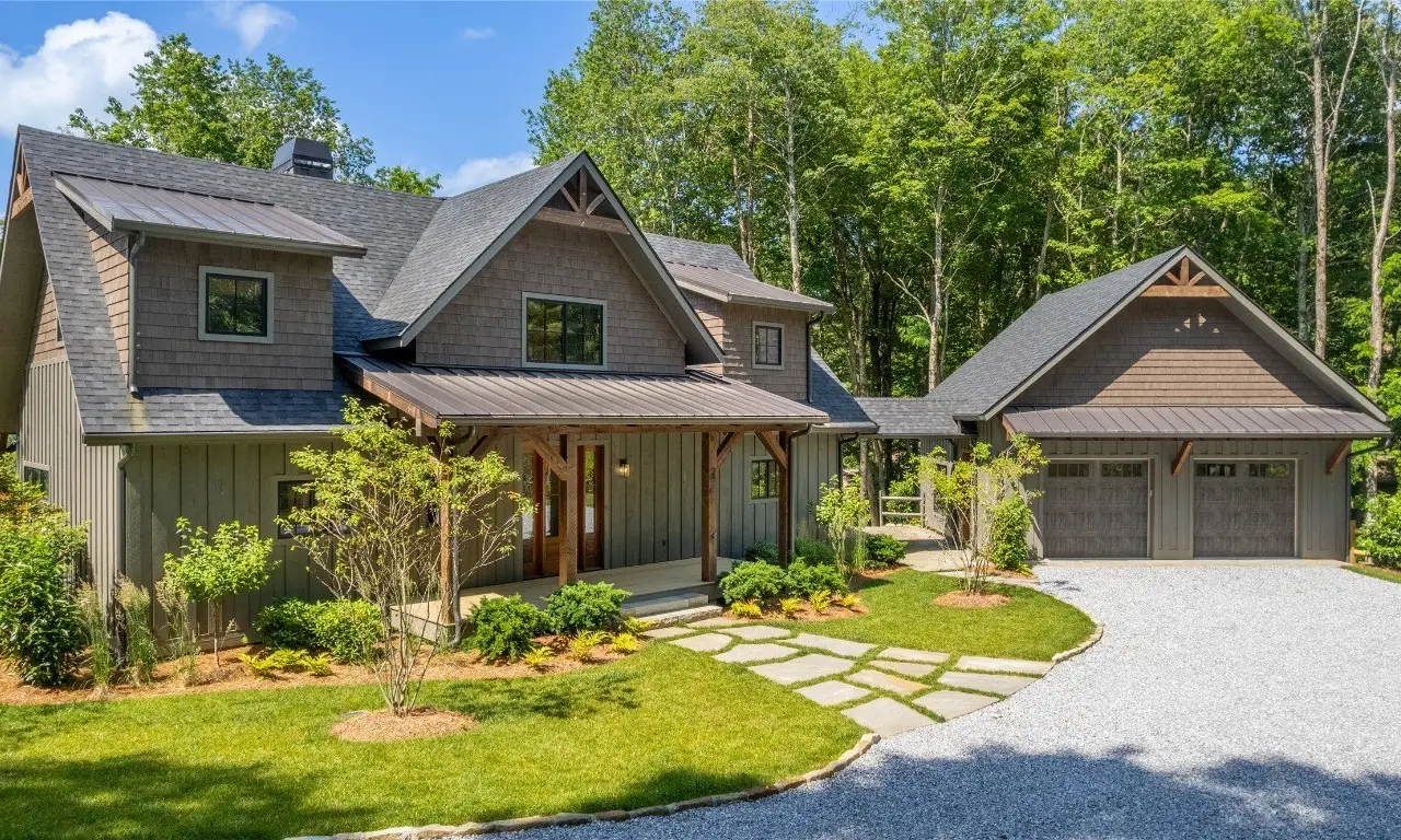 Set on 2.3 gentle acres just minutes from the pristine Lake Glenville, this stunning new construction offers an elegant mountain retreat designed to capture sweeping views of the Western North Carolina landscape. The three-bedroom home, thoughtfully planned over two levels, welcomes you with a grand great room featuring a soaring two-story vaulted ceiling and an expansive porch. Both spaces are anchored by inviting fireplaces, perfect for enjoying the crisp mountain evenings. The open-concept kitchen, equipped with Thermador appliances, flows seamlessly into the dining area, creating a warm, versatile space ideal for both intimate family meals and entertaining friends. Upstairs, a spacious loft leads to two generously appointed guest bedrooms, each with ensuite baths for the ultimate in privacy and comfort. With an attached two-car garage and gentle topography surrounding the home, this property combines convenience with natural beauty. Completed in 2025, this residence is designed to offer a refined lifestyle with a perfect blend of mountain charm and modern sophistication. Virtually staged photos are included to showcase the potential of the property.