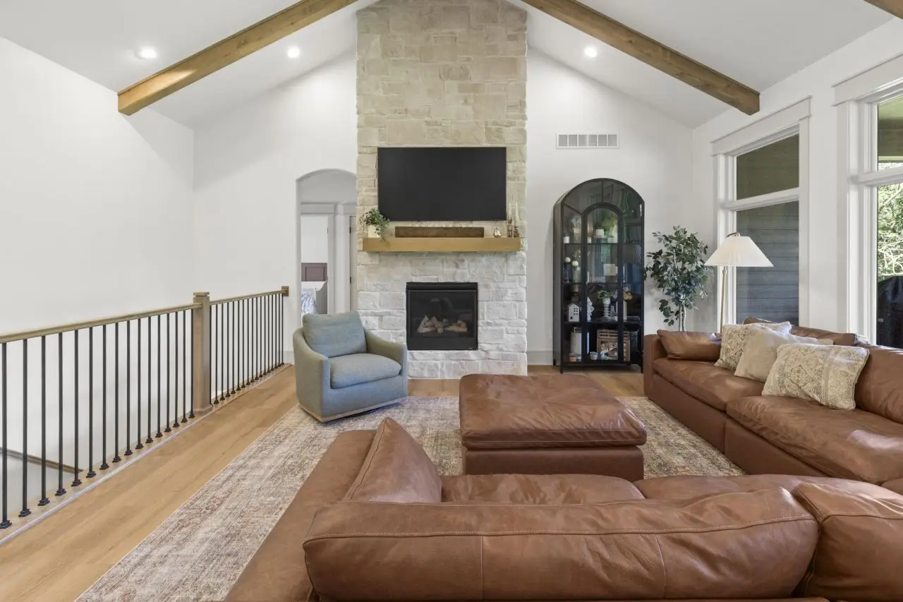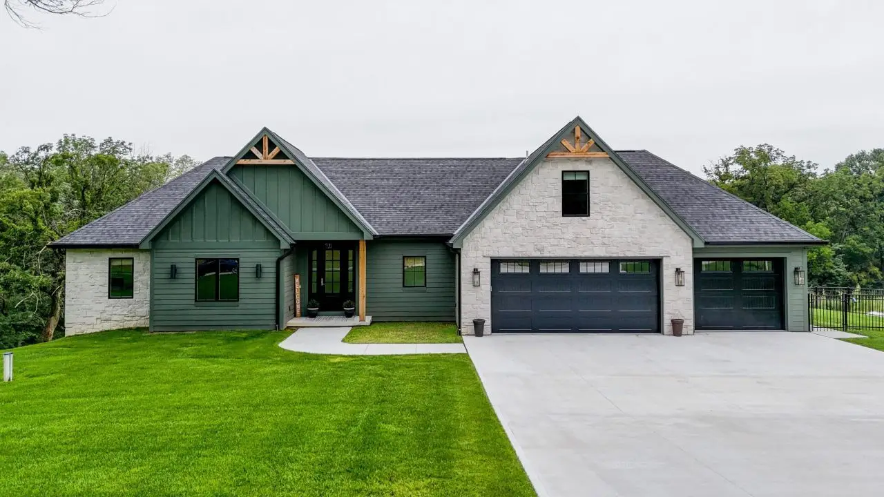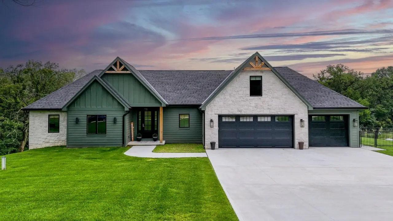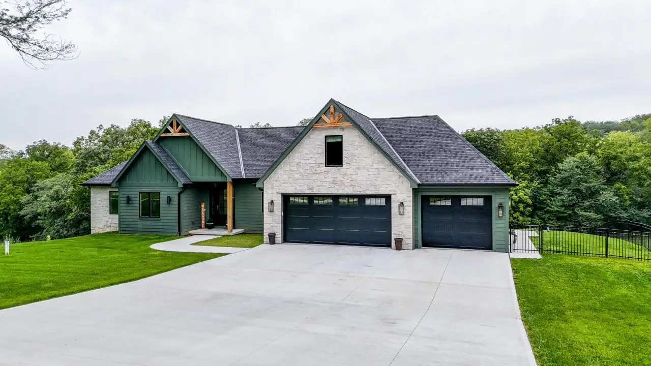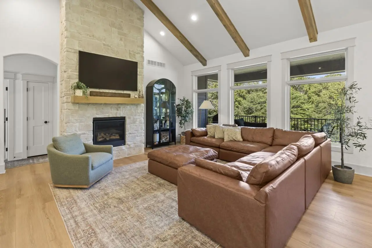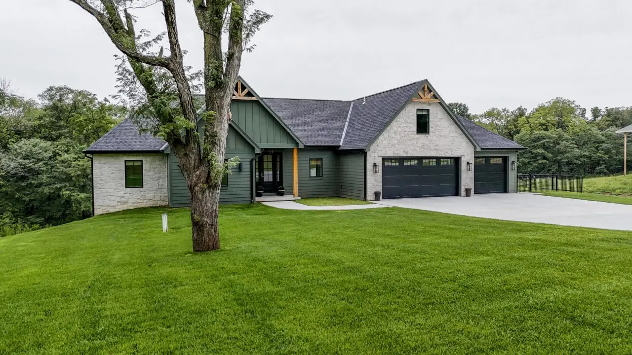 Price improvement + $10K toward buyers closing costs or moving expenses. Why wait to build when you can enjoy this under-a-year-old luxury estate on 3.28 acres in a premier neighborhood? Architecturally stunning and filled with refined finishes, it offers soaring ceilings, a vaulted family room with timber beams, stone fireplace, and walls of windows. The spa-style primary retreat boasts a soaking tub, tile shower, dual vanities, and massive walk-in closet with bonus storage. Three guest bedrooms feature custom closets and designer details. The chefs kitchen impresses with a massive island, premium appliances, ceiling-height cabinetry, and hidden pantry with Costco door. Upstairs: a private guest suite. Oversized 3-car climate-controlled garage. Unfinished walkout lower level with 13 ceilingsperfect for golf simulator, wet bar, and bath. One-third fenced, wooded views, wildlife, reverse osmosis, sprinklers, and generator wiring.