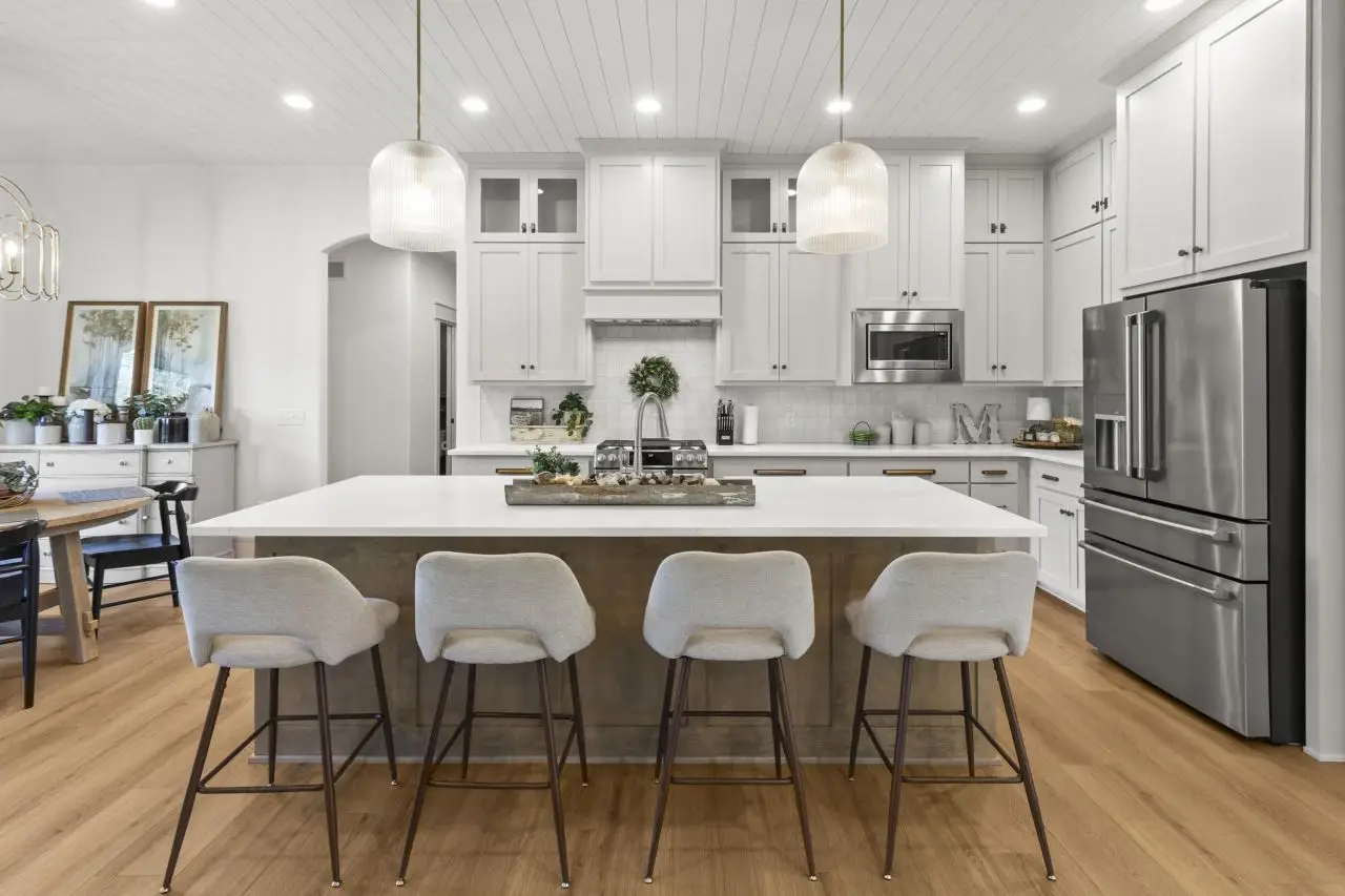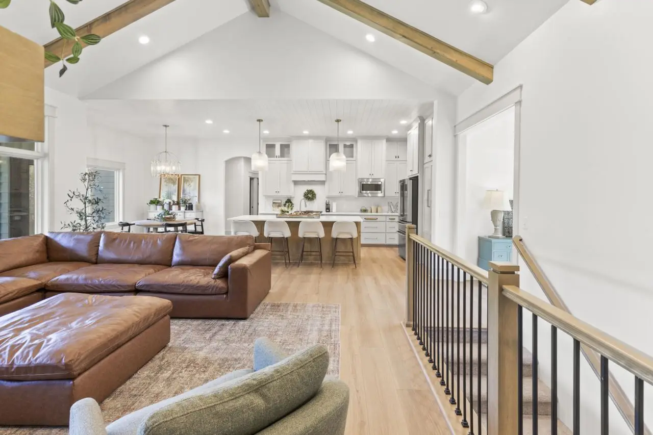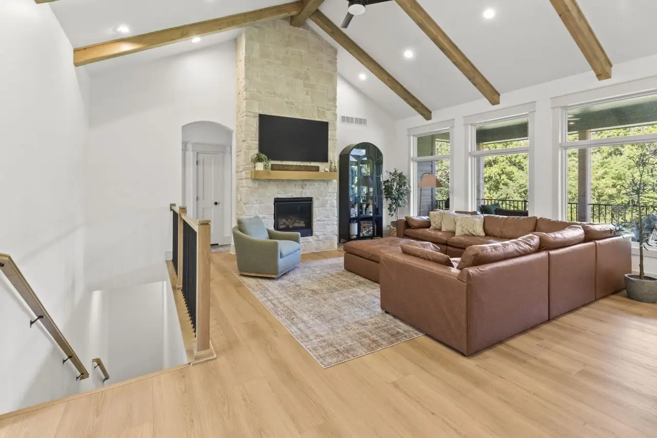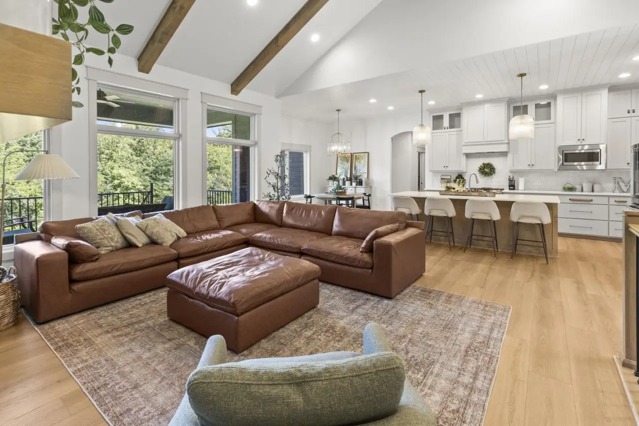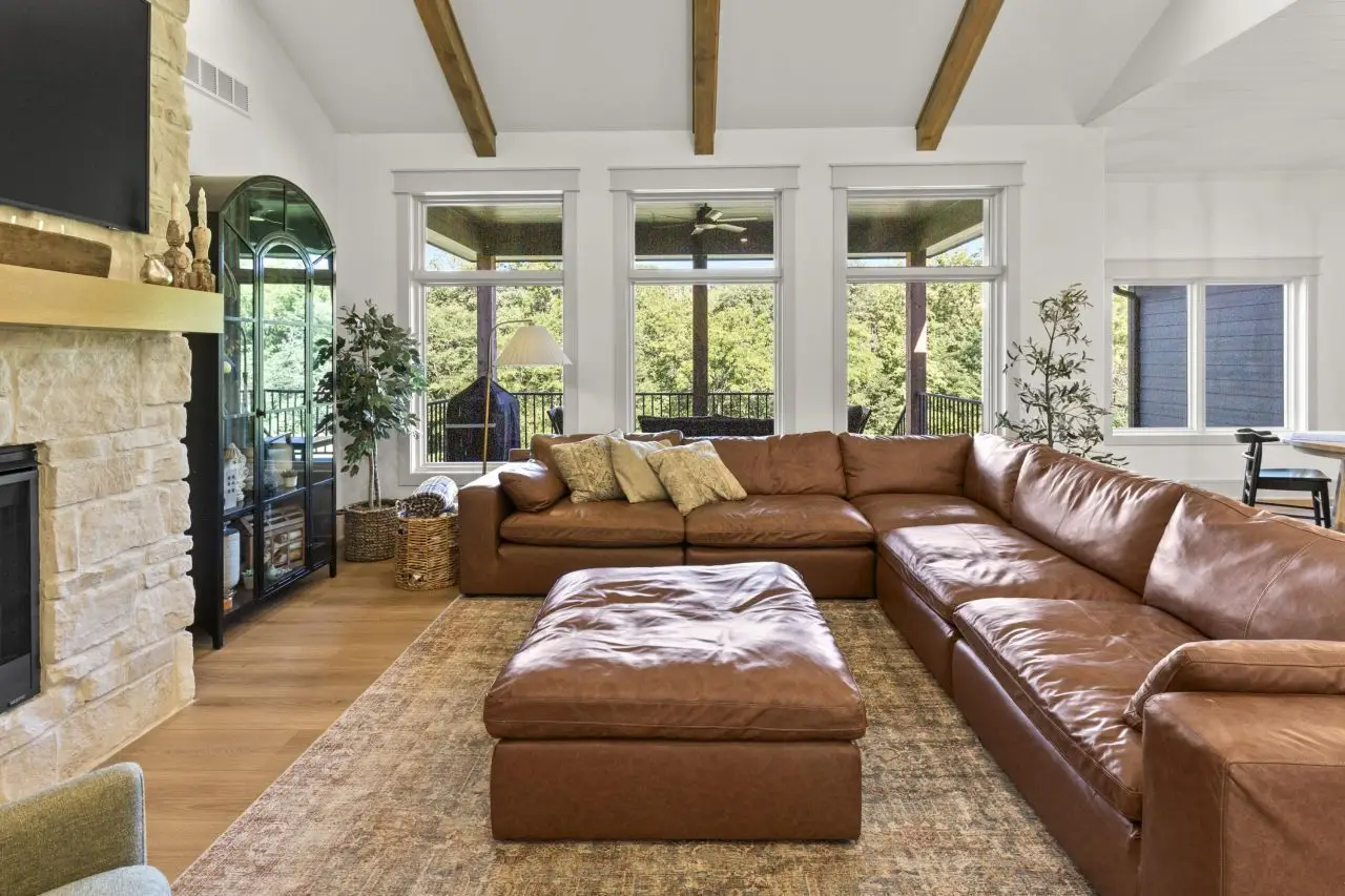 Price improvement + $10K toward buyers closing costs or moving expenses. Why wait to build when you can enjoy this under-a-year-old luxury estate on 3.28 acres in a premier neighborhood? Architecturally stunning and filled with refined finishes, it offers soaring ceilings, a vaulted family room with timber beams, stone fireplace, and walls of windows. The spa-style primary retreat boasts a soaking tub, tile shower, dual vanities, and massive walk-in closet with bonus storage. Three guest bedrooms feature custom closets and designer details. The chefs kitchen impresses with a massive island, premium appliances, ceiling-height cabinetry, and hidden pantry with Costco door. Upstairs: a private guest suite. Oversized 3-car climate-controlled garage. Unfinished walkout lower level with 13 ceilingsperfect for golf simulator, wet bar, and bath. One-third fenced, wooded views, wildlife, reverse osmosis, sprinklers, and generator wiring.