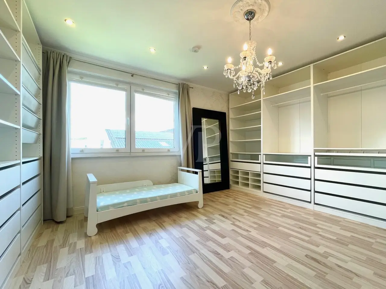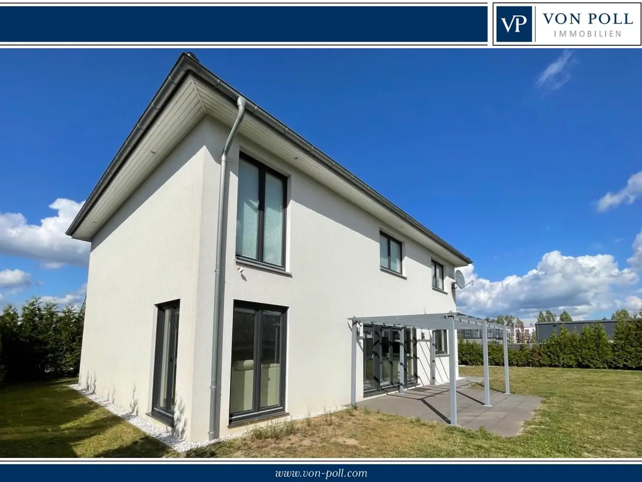 This attractive detached house from 2015 impresses with its perfect room layout, upscale furnishings and particularly versatile usage options. According to the development plan (no. 40b), the house is located in a "quiet commercial area", whereby 51% of the total area is subject to commercial use. This makes the property ideal for buyers who want to combine "beautiful living" and working under one roof. The living space of approx. 225 m² is spread over two full floors with seven generously proportioned rooms. Five of these can be used as bedrooms and offer sufficient space for family members, guests and commercial use. Two modern, tastefully furnished bathrooms meet the highest standards of comfort. Particularly noteworthy is the large bathroom on the upper floor, which has a whirlpool bath and a power connection for a sauna. The plot of around 1,104 m² offers numerous opportunities for development. The detached house has been positioned on the plot in such a way that there is enough space to build an additional hall and garage. It is also likely that a full two-storey extension can be realized - an advantage for buyers with extended space requirements and a desire for more flexibility. Another plus point is the convertible loft: Already laid floorboards make it easier to customize the space according to your own wishes, perhaps as storage, an archive or an additional office? There is well thought-out network cabling throughout the building so that modern communication and work structures can be easily implemented. The quality of the fittings and construction meet high standards: in addition to solid construction to KfW 70 standard, which guarantees very low heating costs, efficient underfloor heating and solar panels for hot water ensure energy-saving and comfortable everyday living. The Vallox ventilation system with heat recovery contributes to a pleasant indoor climate. Large, floor-to-ceiling windows allow plenty of daylight into the house and create a friendly living atmosphere. The interior is modern and timeless with lots of white and technical refinements such as the electric wall fireplace and spectacular LED ceiling lighting. Outside, a sunny, covered south-facing terrace of approx. 24 m² invites you to spend relaxing hours outdoors. Security is also a top priority: Plastic windows with double glazing (mushroom-head locking), aluminum exterior blinds and entrance doors with burglar protection offer a reassuring level of protection. The property is very practically laid out: A generously paved entrance area offers space for up to seven vehicles - ideal for a larger fleet. A garden shed provides additional storage space for garden utensils. The robotic lawnmower makes for easy maintenance and would like to remain at your service. All in all, this house in mint condition presents itself as a convincing overall package - with well thought-out space, energy-saving technology and versatile usage potential. You are welcome to arrange a viewing appointment to see the possibilities of this property for yourself - and please don't forget: A trade license is currently mandatory! We will be happy to advise you on this.