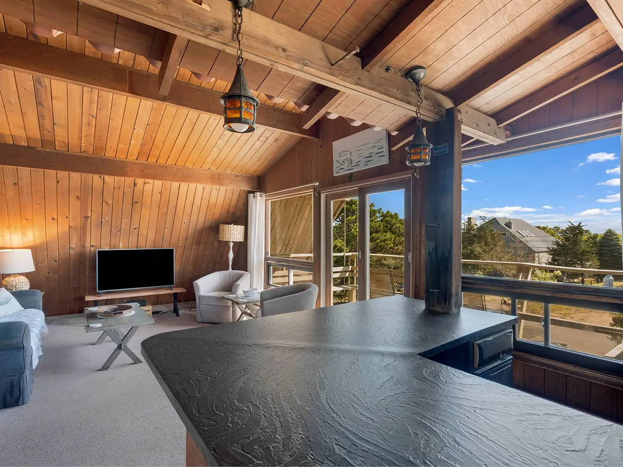RR#:241147 Tucked away in the coveted Amagansett Dunes, 31 Leeton Road is a classic Hamptons beach retreat just moments from the ocean. This charming 3-bedroom, 2-bath home captures the essence of coastal living with its relaxed, sun-drenched interiors and wraparound decks perfect for enjoying the sea breeze. The open-concept main level features a spacious living area, a fully equipped kitchen, and a casual bar-ideal for entertaining after a day at the beach. Upstairs, the primary suite opens onto a private balcony overlooking the dunes, offering the perfect spot for morning coffee or sunset cocktails. Whether you're looking for a laid-back summer escape or a peaceful off-season getaway, this home delivers the ultimate Hamptons beach lifestyle. Highlights: 3 bedrooms, 2 baths. Steps to the ocean in Amagansett Dunes. Indoor bar and open entertaining layout Wraparound decks and upper balcony with dune views. A classic beach house with charm and privacy Experience authentic Hamptons dune living. Listing ID: 741466