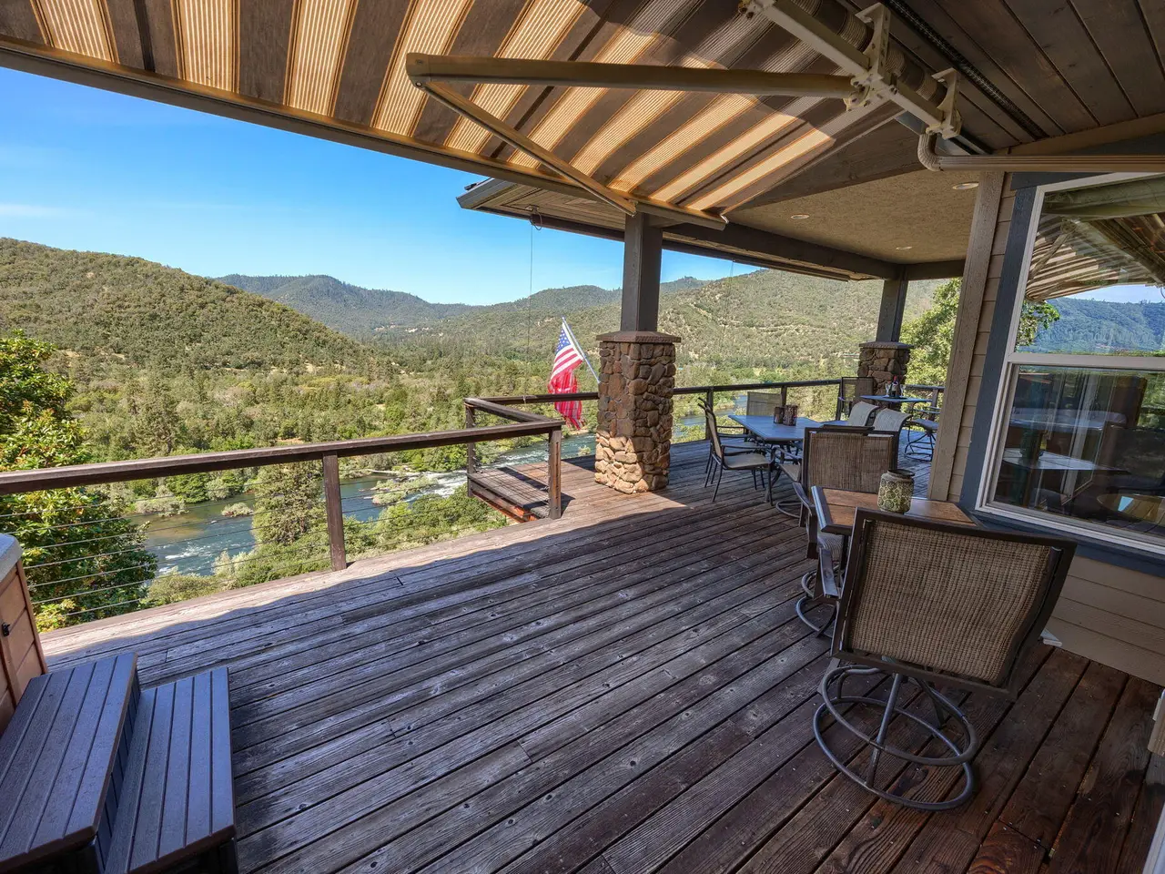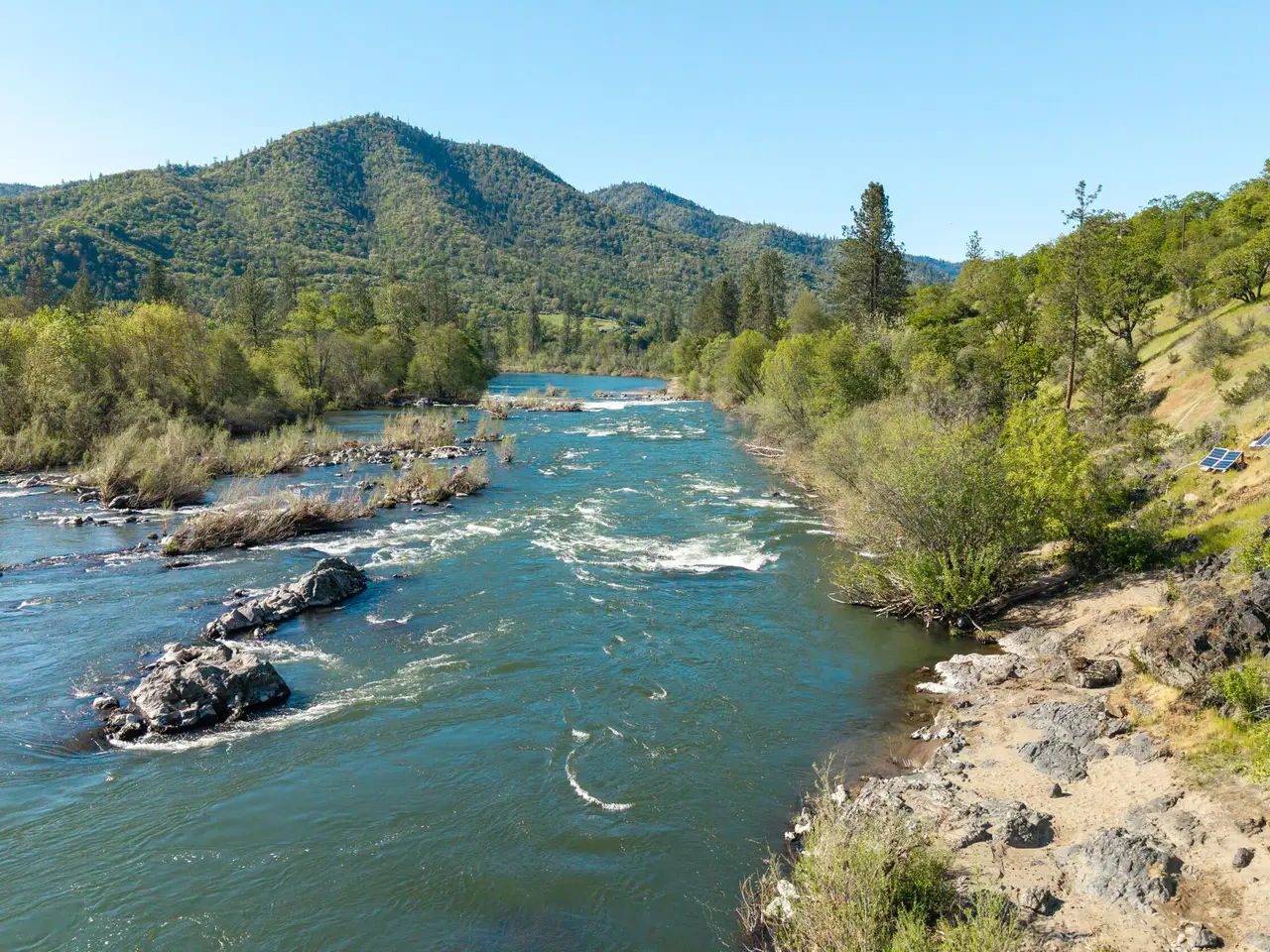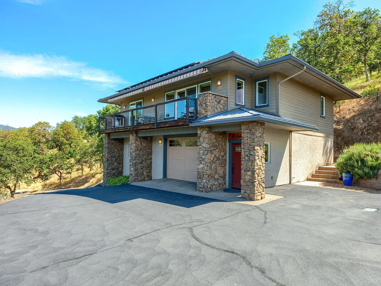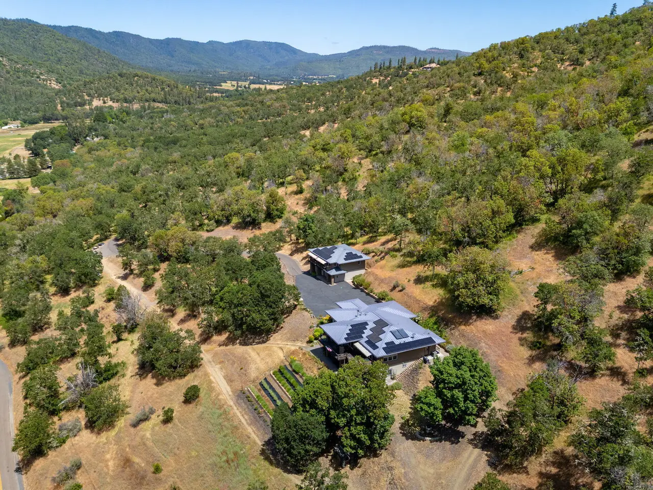 Privacy, gated security, convenience, abundant wildlife, whitewater, incredible mountain & Rogue River views w/amazing river sounds combine to provide the ultimate Southern Oregon lifestyle. This 2012 custom designed home built on 46-wooded acres features a two-story hillside layout with main floor living, 3,604 sf., 4 BR, 3 BA, home office, chef kitchen, rec/game room, hot tub, & 2 covered decks for seamless indoor/outdoor entertaining with river views. Paved drive w/3 garage spaces & convenient EV charger. A separate furnished modern 2 BR, 1 BA, 1,200 sf. ADU above shop/garage is perfect for multi-generational living or rental income. Interior/exterior natural rock architectural features enhance the professional interior design features for gathering in this exceptional home. Irrigation water rights, river access, & efficient solar panels on a firewise low maintenance property complete this versatile and inviting retreat. This can be your home with owner carry terms available!