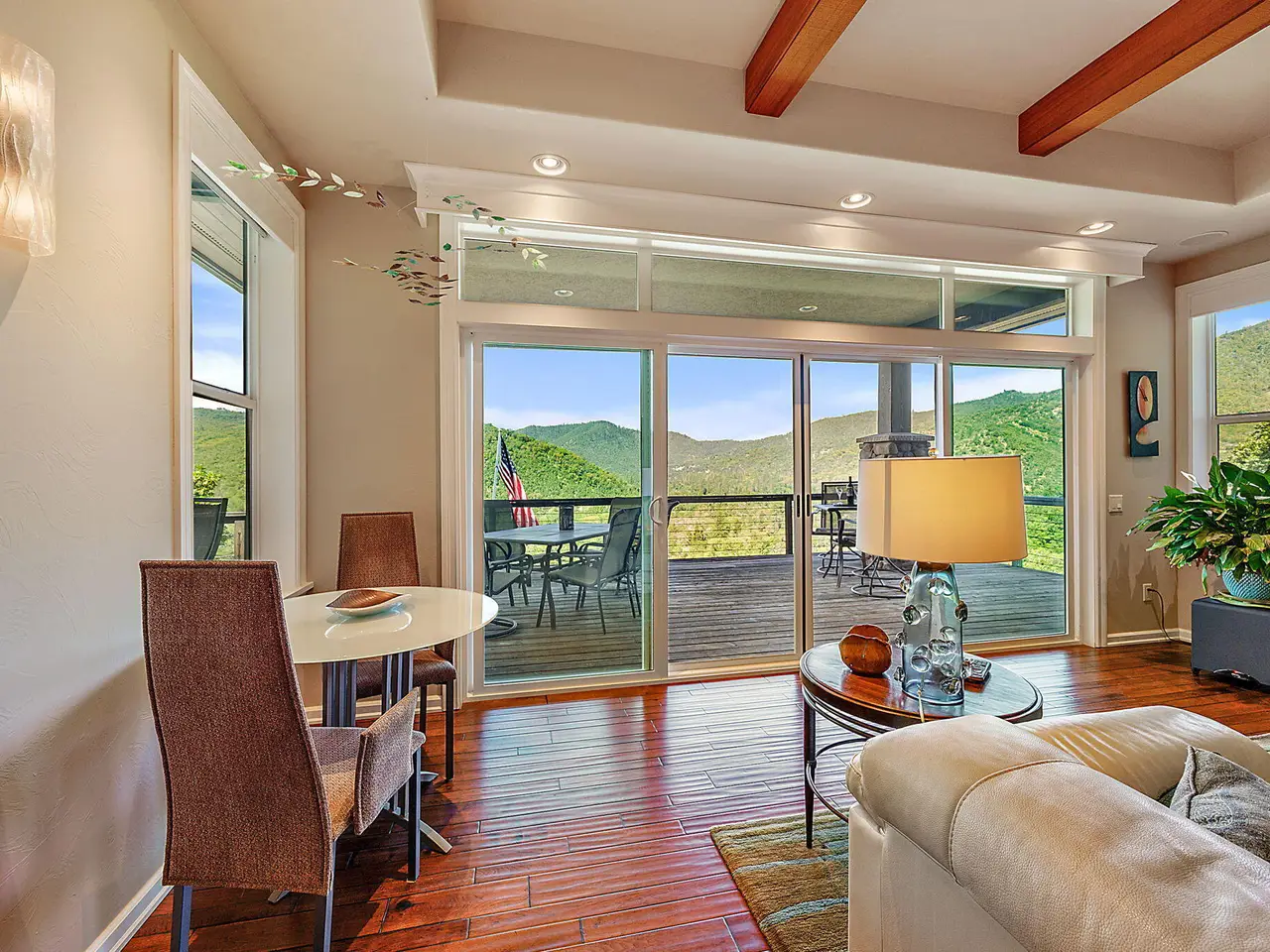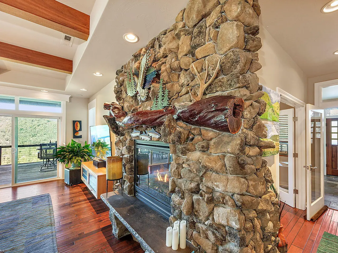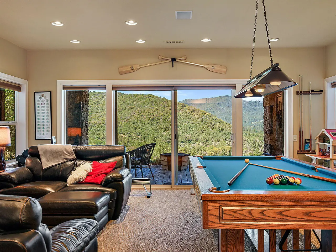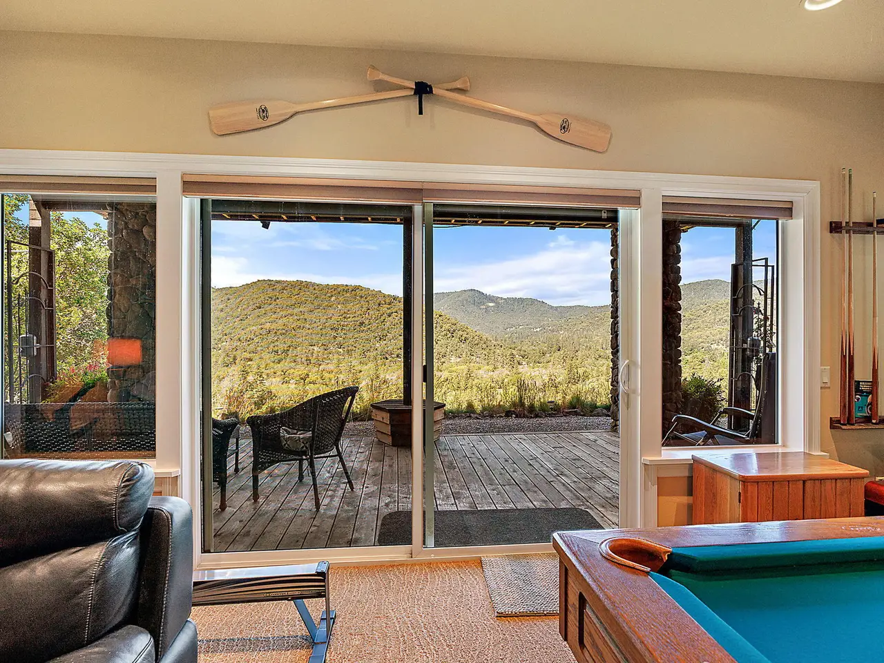 Privacy, gated security, convenience, abundant wildlife, whitewater, incredible mountain & Rogue River views w/amazing river sounds combine to provide the ultimate Southern Oregon lifestyle. This 2012 custom designed home built on 46-wooded acres features a two-story hillside layout with main floor living, 3,604 sf., 4 BR, 3 BA, home office, chef kitchen, rec/game room, hot tub, & 2 covered decks for seamless indoor/outdoor entertaining with river views. Paved drive w/3 garage spaces & convenient EV charger. A separate furnished modern 2 BR, 1 BA, 1,200 sf. ADU above shop/garage is perfect for multi-generational living or rental income. Interior/exterior natural rock architectural features enhance the professional interior design features for gathering in this exceptional home. Irrigation water rights, river access, & efficient solar panels on a firewise low maintenance property complete this versatile and inviting retreat. This can be your home with owner carry terms available!