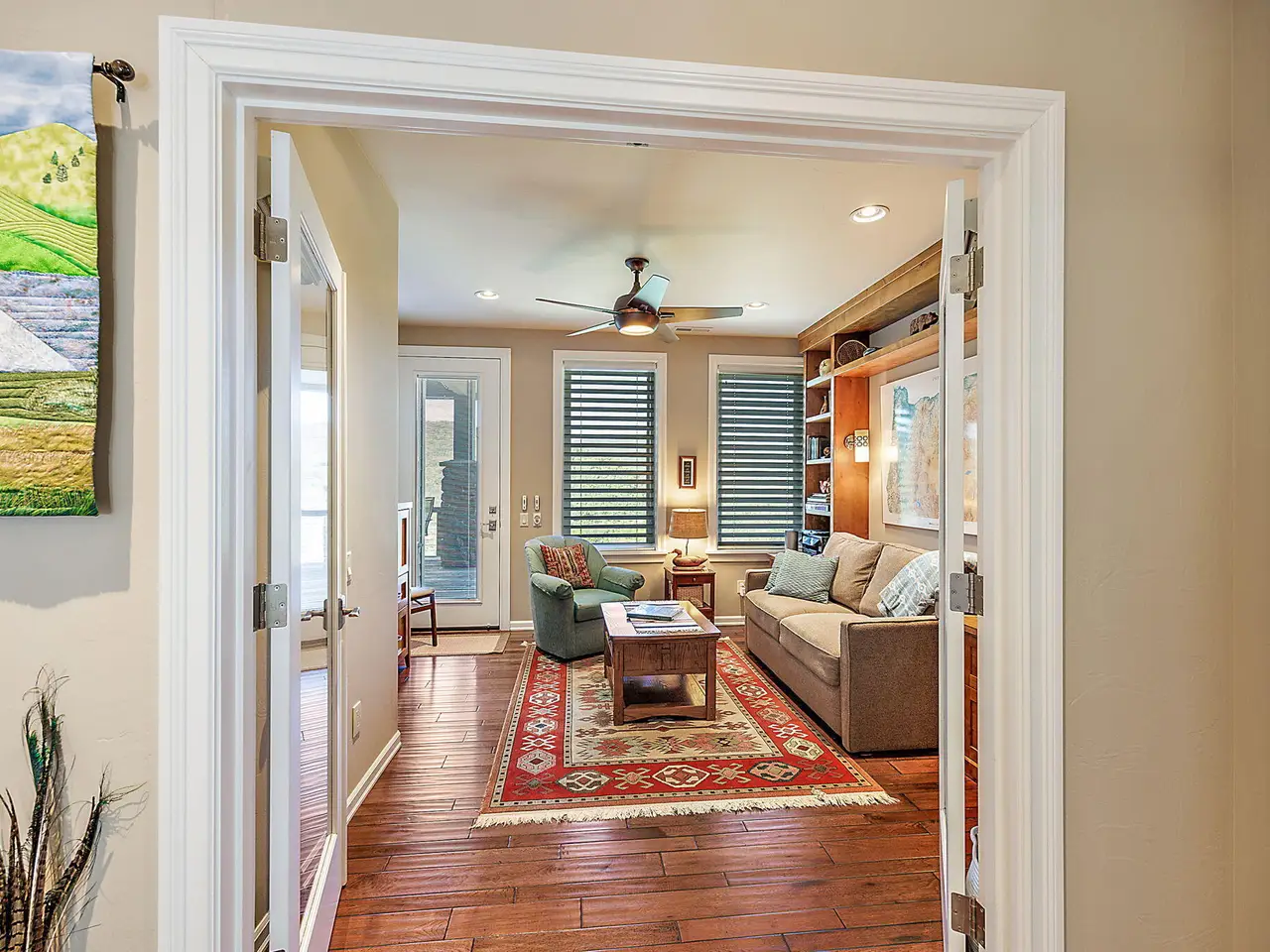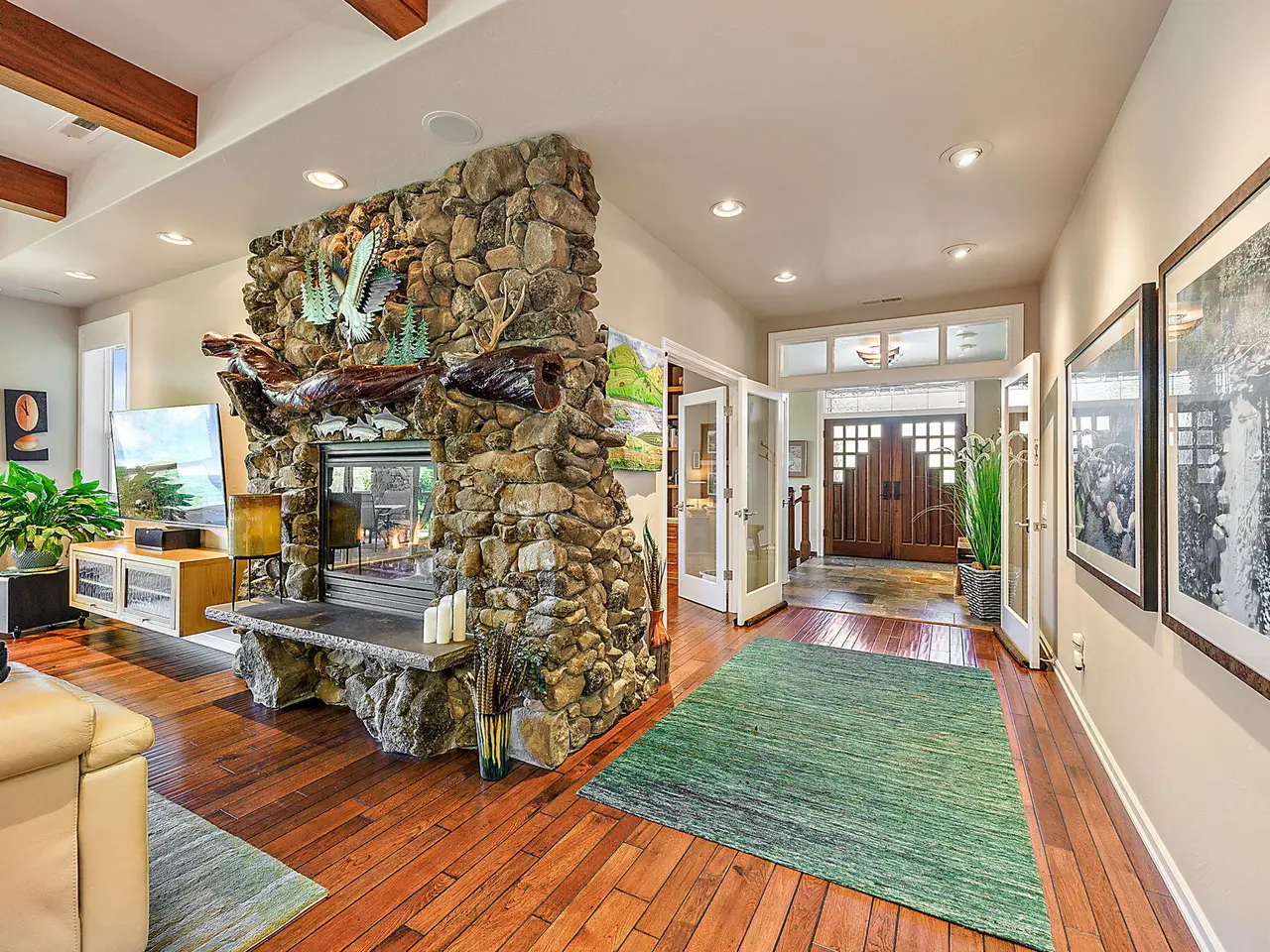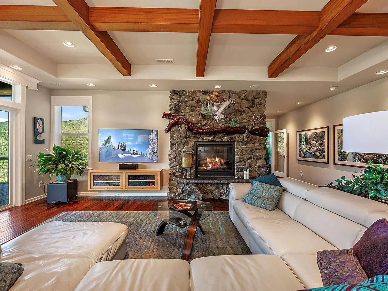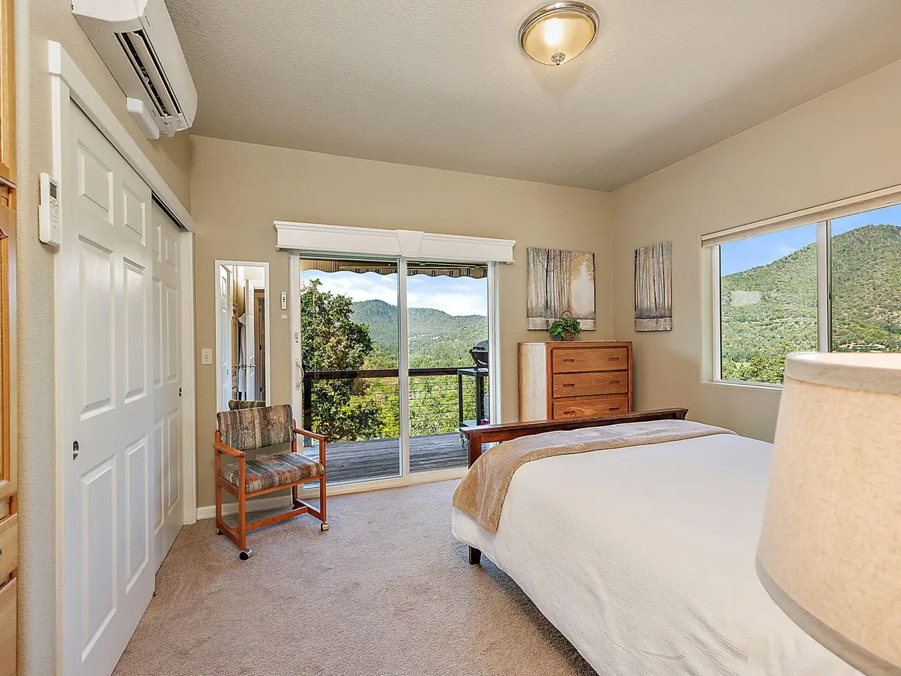 Privacy, gated security, convenience, abundant wildlife, whitewater, incredible mountain & Rogue River views w/amazing river sounds combine to provide the ultimate Southern Oregon lifestyle. This 2012 custom designed home built on 46-wooded acres features a two-story hillside layout with main floor living, 3,604 sf., 4 BR, 3 BA, home office, chef kitchen, rec/game room, hot tub, & 2 covered decks for seamless indoor/outdoor entertaining with river views. Paved drive w/3 garage spaces & convenient EV charger. A separate furnished modern 2 BR, 1 BA, 1,200 sf. ADU above shop/garage is perfect for multi-generational living or rental income. Interior/exterior natural rock architectural features enhance the professional interior design features for gathering in this exceptional home. Irrigation water rights, river access, & efficient solar panels on a firewise low maintenance property complete this versatile and inviting retreat. This can be your home with owner carry terms available!