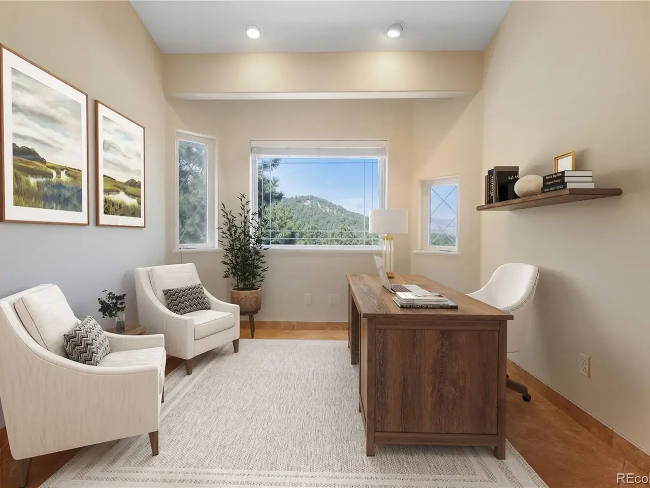 Breathtaking views and everyday convenience come together in this Lookout Mountain home. Located in Cody Park, this spacious contemporary home offers the perfect balance of mountain living and city access just minutes from I-70, 25 minutes from downtown Denver, and 90 minutes from world-class skiing. Step inside to gleaming hardwood floors and unique architectural details. The chefs kitchen is a true centerpiece with stainless steel appliances, a slab granite breakfast bar, huge pantry and a sunny sitting area perfect for slow mornings as the mountains awaken outside your window. The open dining and living areas invite gatherings with family and friends whether its a lively dinner party or a quiet night by the fire.The primary suite feels like a private sanctuary, complete with its own sitting area, a two-sided fireplace, a five-piece bath, and a large walk-in closet. Two additional main-floor bedrooms and two home offices provide wonderful flexibility whether you need creative studio space, a quiet home office, or room for guests. The finished walk-out lower level adds even more possibilities, featuring a mother-in-law apartment. Its the ideal setup for multigenerational living, long-term guests, or simply giving everyone their own space. Fabulous outdoor spaces! Enjoy your morning coffee on the expansive deck as the sun rises, spend afternoons watching deer and elk wander through the pines, and wind down in the evenings with a glass of wine as the sky paints itself with breathtaking Colorado sunsets. A stamped concrete patio and a private courtyard create additional outdoor living areas perfect for barbecues, stargazing, or cozying up with a good book. With a 3-car garage plus additional parking, theres plenty of room for vehicles, mountain toys, and gear. Cody Park combines privacy, wide-open views, and a true sense of Colorado mountain livingwhere every day feels like a getaway, but the city is always within reach.