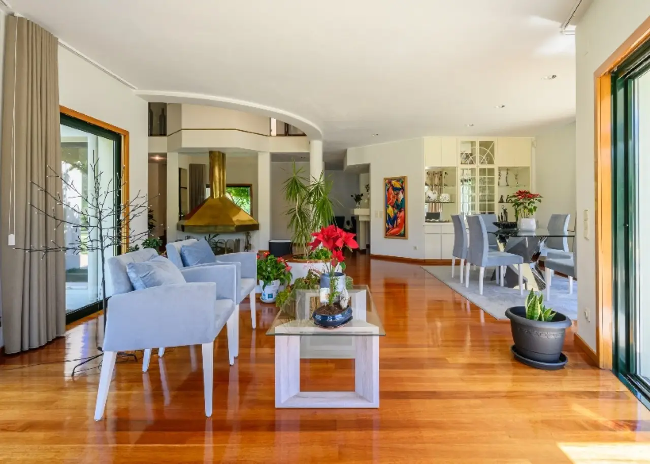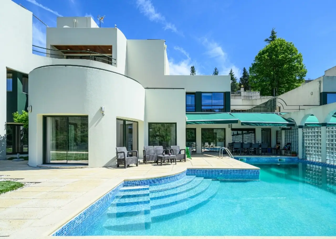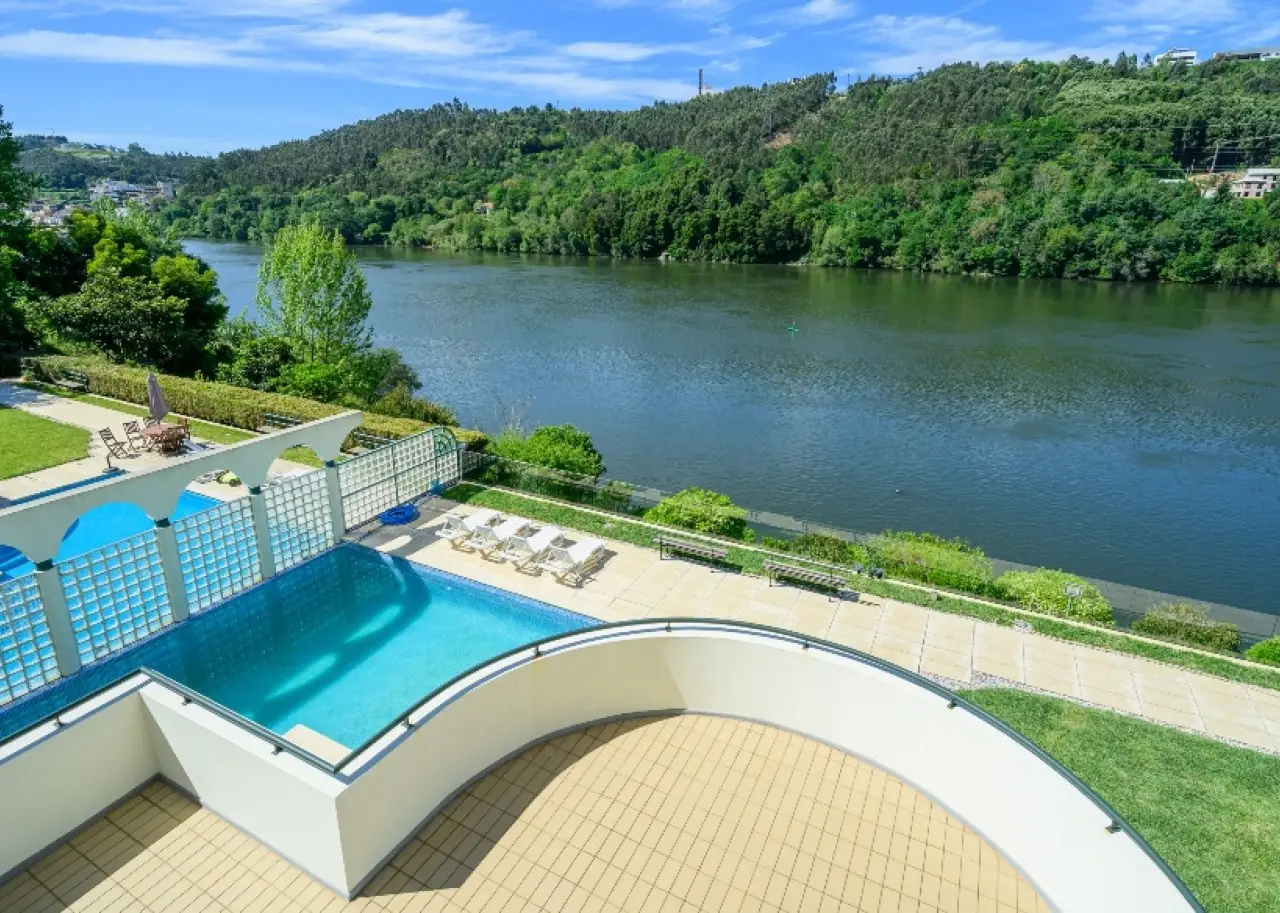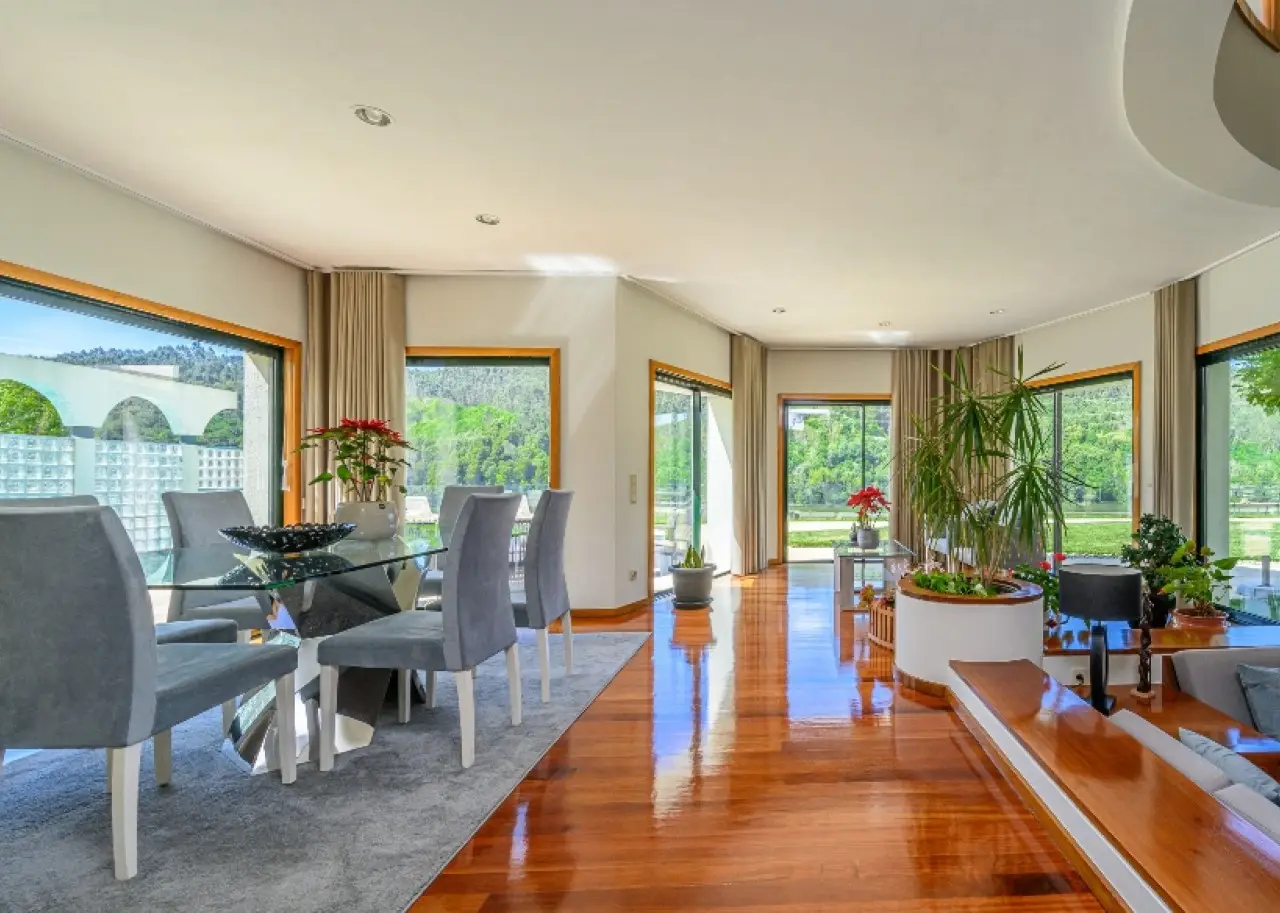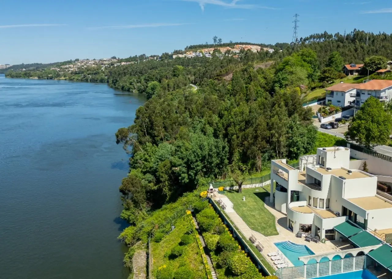 Fantastic three-storey semi-detached villa with swimming pool, private mooring and stunning views of the River Douro, located in Foz do Sousa. This villa - with very generous areas and lots of light - offers the comfort and tranquillity of the first line of the river through the glazed windows and doors that transport us to a landscape of unique beauty. Each room has been designed by the architect to take advantage of the views of the garden and pool, as well as the River Douro. Its location is excellent, 10 minutes from the Freixo Palace, 15 minutes from downtown Porto and 20 minutes from the airport. CHARACTERISTICS: Plot Area: 1 200 m2 | 12 917 sq ft Deployment Area: 245 m2 | 2 637 sq ft Building Area: 615 m2 | 6 620 sq ft Bedrooms: 4 Bathrooms: 4 Garage: 3 Energy efficiency: B-