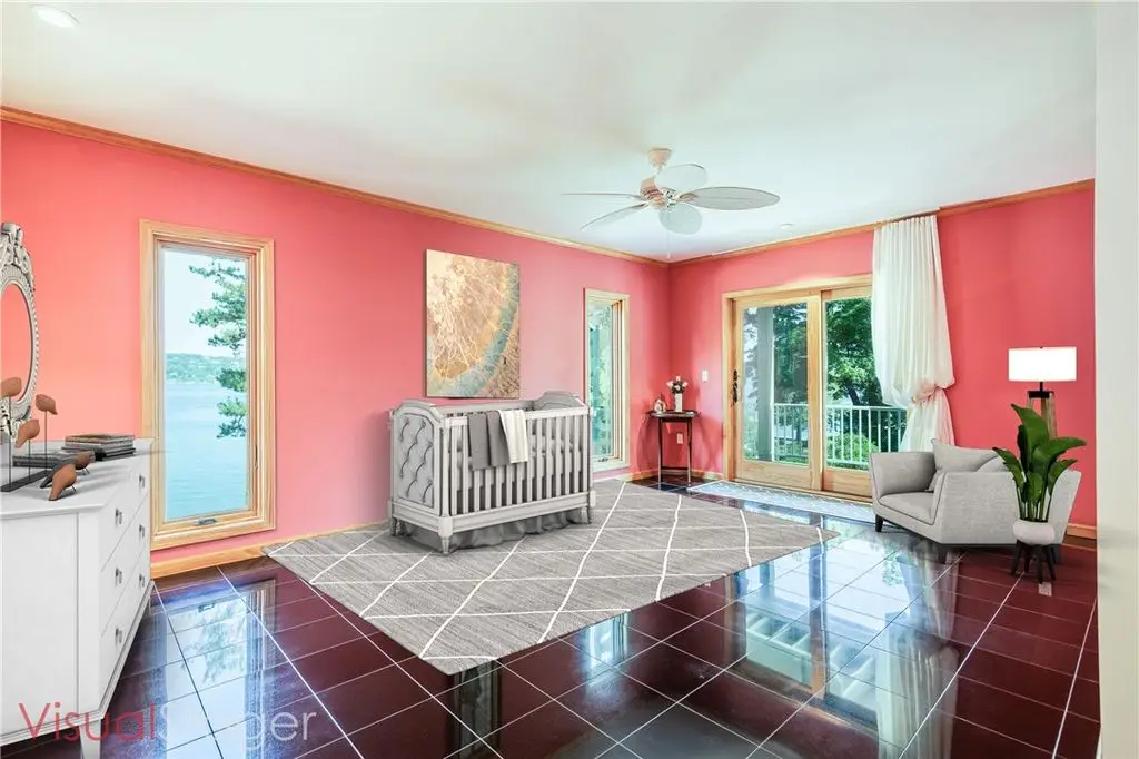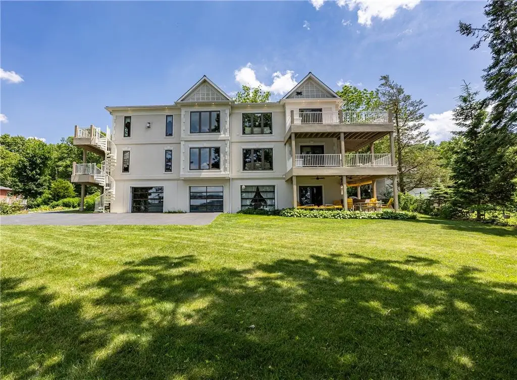 108' Rare, Level Lakefront + Custom 7-Bed, 7-Bath Luxury Home. Canandaigua Lake - Move-In Ready. Step into a showpiece of lakefront luxury. This custom 7,200 sq ft sanctuary (built 2013) sits on a unique level lot - safely "above the road" and never known to flood - and boasts 108 feet of premier Canandaigua Lake frontage. WATERFRONT & OUTDOOR HIGHLIGHTS ARE: Permanent 35'x20' aluminum dock, anchored over the lakes widest shelf, Natural shale beaches on both sides of dock and secure kayak/sailboat storage and solid poured concrete break wall. DESIGNED FOR FAMILY & FRIENDS with Seven separate bedrooms, each with its own fully accessible bathroom (heated granite floors), Two full gourmet kitchens + wet bars + lower level kitchenette + summer kitchen with infrared grill, Natural gas fire pit, three independent decks per level and Spacious elevator with lockout from all levels to decks and garage. PRESTIGE & PERFORMANCE with Triple-pane Anderson windows, closed-cell foam insulation - total utilities $1,700/year, Whole-house automatic Generac generator, Oversized 4+ car heated garage with polyaspartic heated floors, insulated-glass doors, cross ventilation, Elegant oak millwork, crown molding, custom staircases and high-end finishes. WHY THIS HOME CAPTIVATES: Imagine summer evenings by the fire pit, aerial views across Canandaigua Lake, family gatherings in an expansive gourmet kitchen, and effortless access for all ages and mobility levels. This is more than a home - it's a legacy retreat. The square footage difference is per seller.