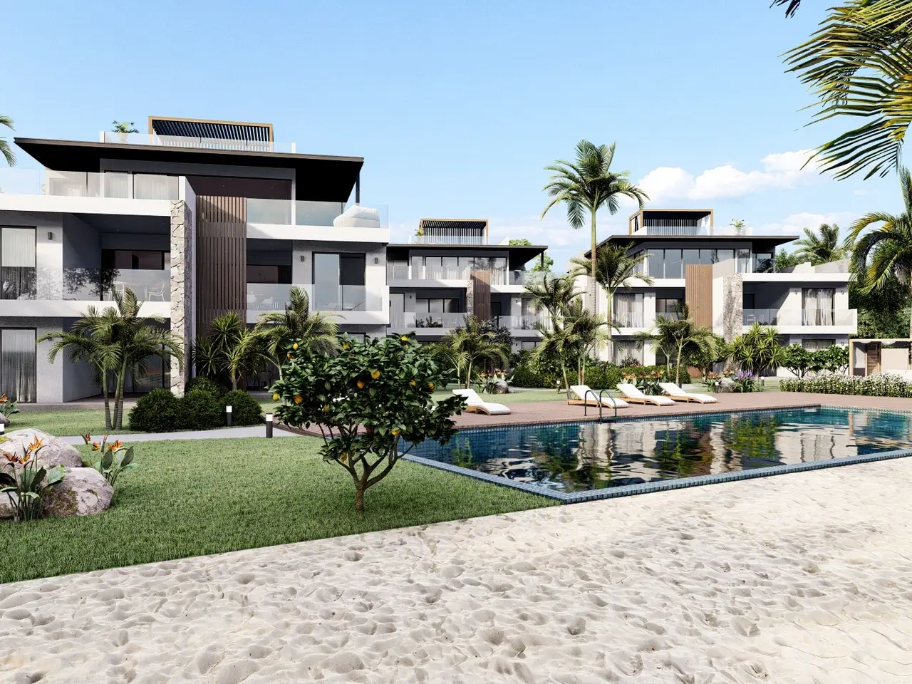 This magnificent apartment of 140m2 is part of a beautiful project of 12 apartments. Also includes 3 exclusive penthouses each having their own private swimming pool. It consists of 3 bedrooms ( 1 ensuite bedroom) a living room, a modern style kitchen. Residents will have common facilities includes generous parking, an large swimming pool and deck, a boathouse and a lush tropical garden overlooking the natural bay.The common outdoor space is a convivial concept that features a pool lounge area to be enjoyed during relaxation gatherings whilst admiring the passing boats and infinite views of the ocean as well as a private access to the bay should you wish to enjoy stand up paddling and kayaking.