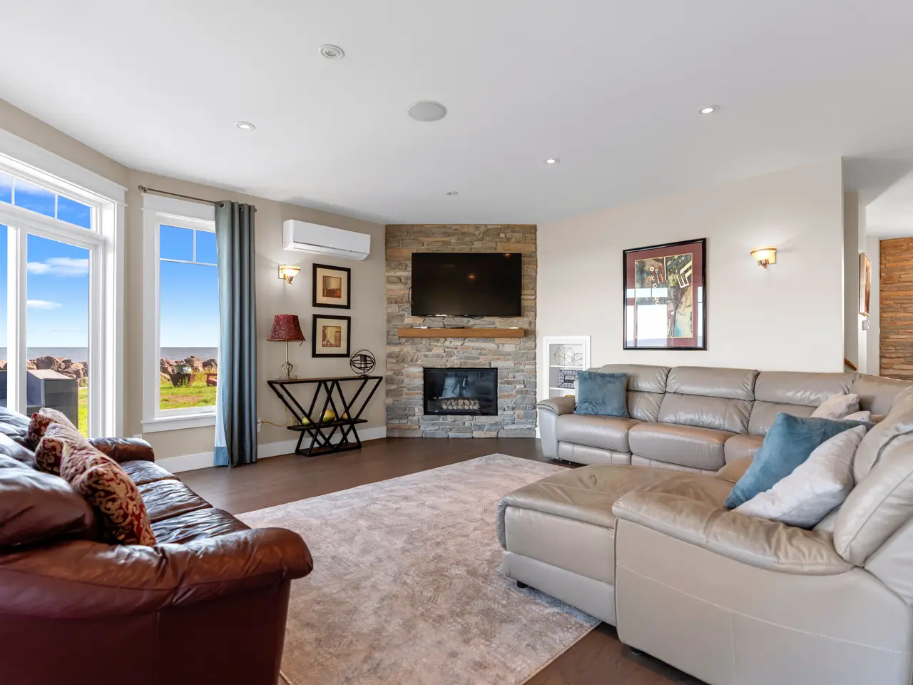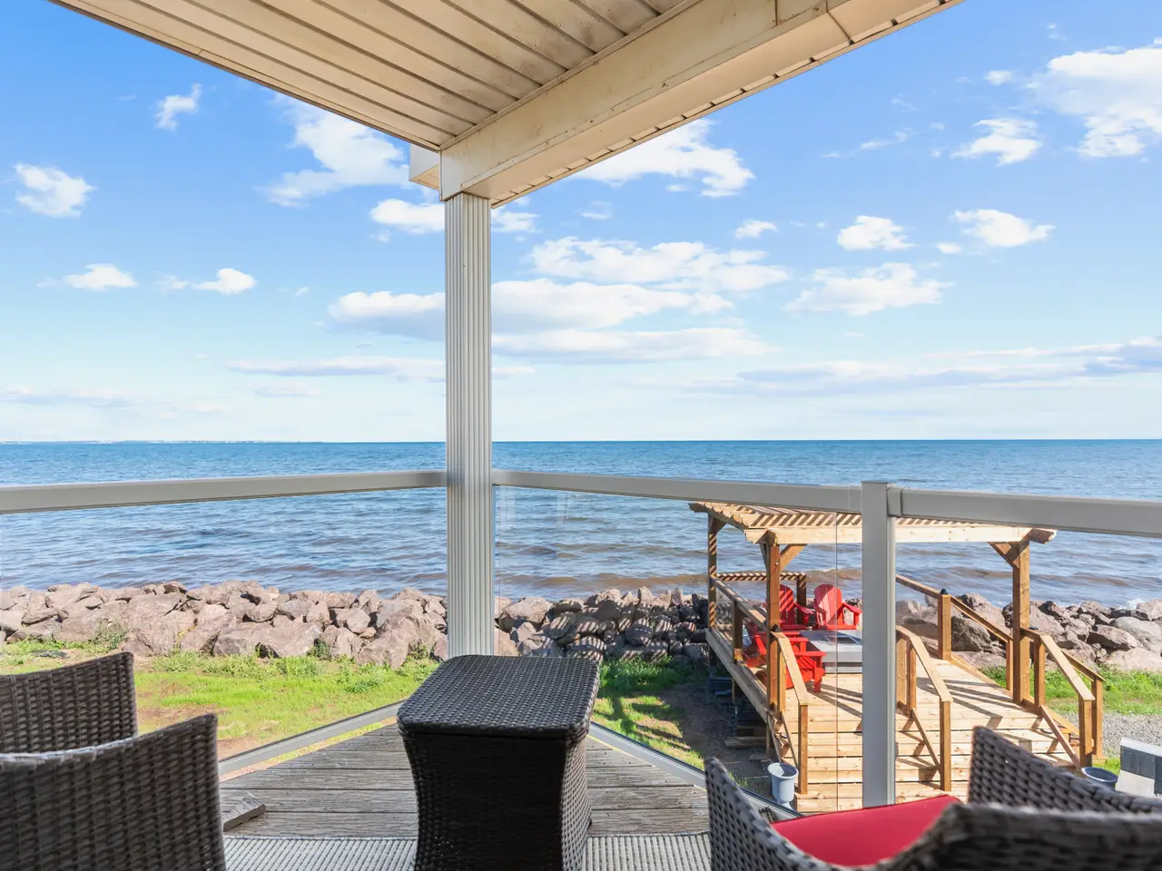 Wake up to the waves, unwind to the sunsets, this is coastal living at its finest. Nestled on a quiet private street in one of the area's most sought-after coastal enclaves, this exceptional waterfront home offers a rare blend of seclusion, sophistication, and natural beauty. With direct private access to a sandy beach and breathtaking, panoramic views of the Northumberland Strait, it’s the perfect escape for those who crave peace without compromise. Thoughtfully positioned to maximize natural light and ocean vistas, the home features expansive windows and glass doors that blur the line between indoors and out. The open-concept design offers bright, airy living spaces that flow effortlessly. Step outside to enjoy your morning coffee on the sun-kissed oceanfront decks, or host unforgettable gatherings in the newly built, water-facing gazebo, anchored on Post Tech supports for durability and style. Every element of this property is designed to connect you with the surrounding landscape. Crafted with premium finishes and attention to detail throughout, the home also features significant updates, including a new roof (June 2023) and a reinforced breakwater, now doubled in depth to provide long-term shoreline protection and peace of mind. This is more than just a home, it’s a rare lifestyle opportunity. A chance to own a turnkey waterfront retreat on an exclusive street, where private beach walks, coastal serenity, and uninterrupted ocean views are part of everyday life.