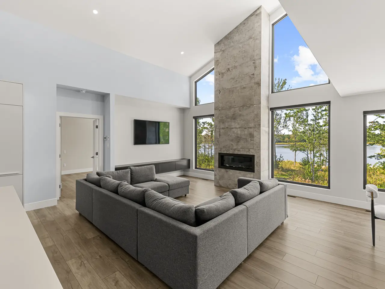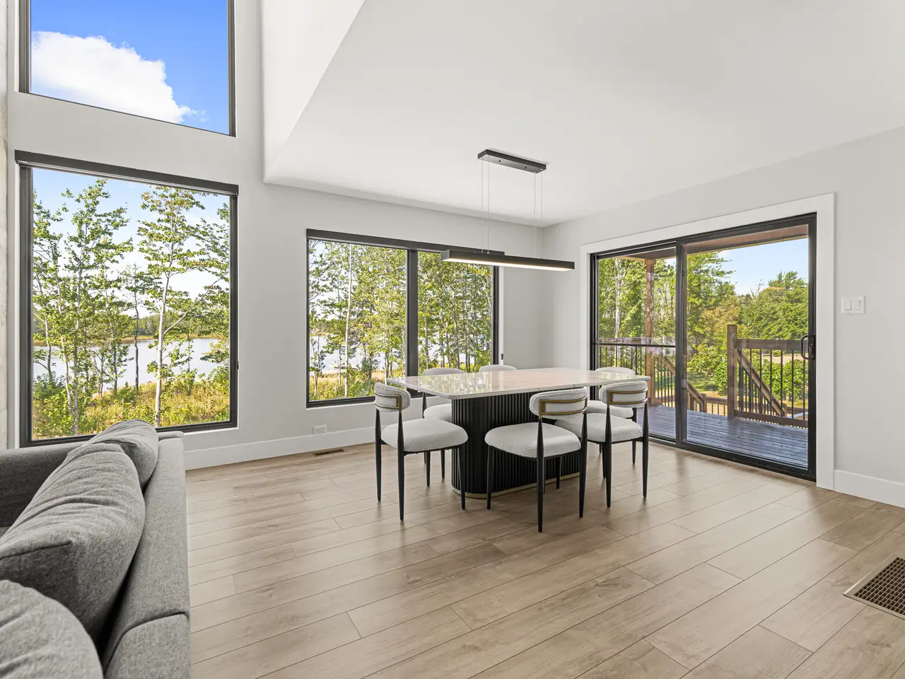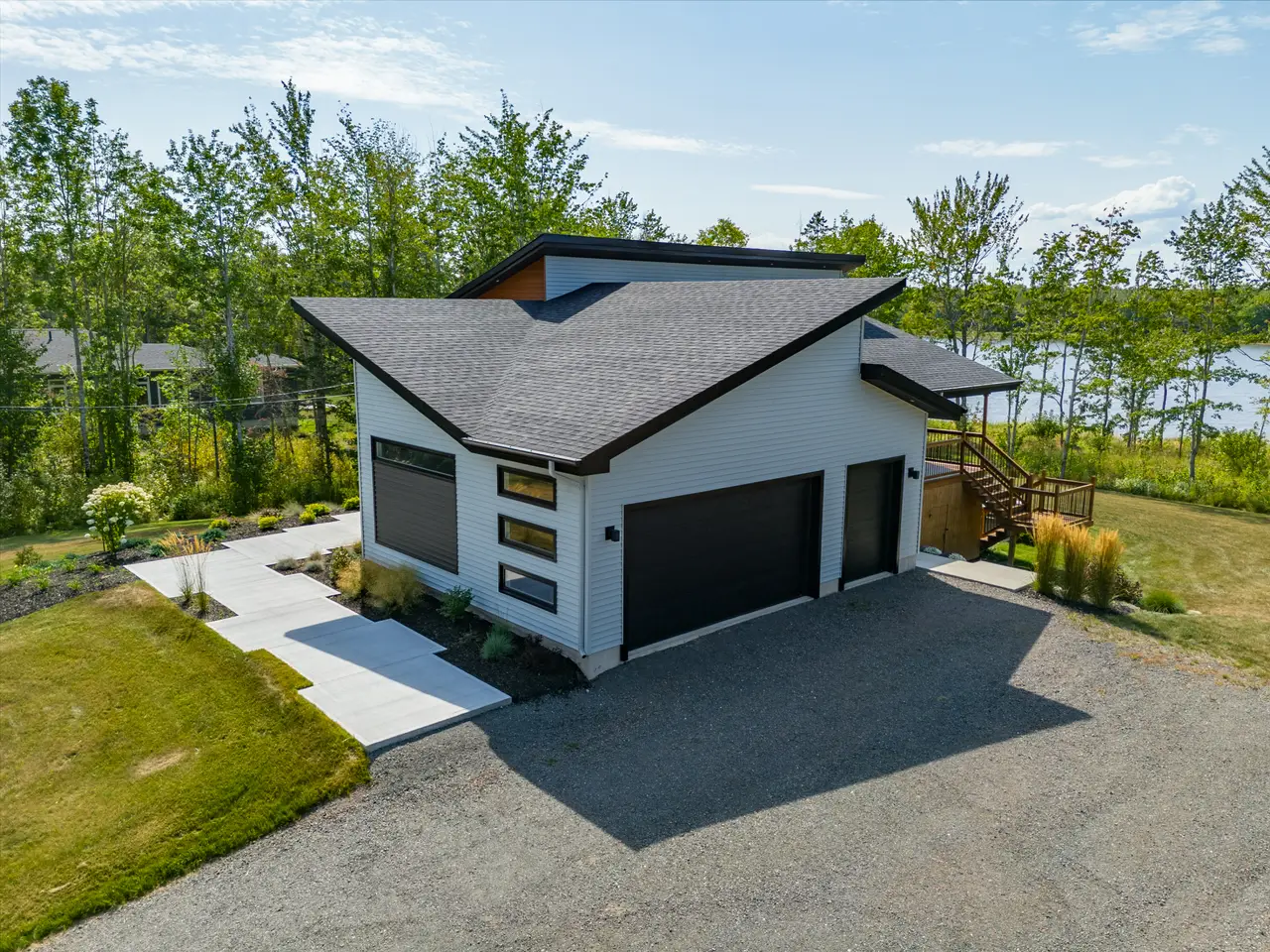 Stunning Waterfront Bungalow with Walk-Out Basement on 2.4 Acres // Forced Air Heat Pump // 4 Bedrooms & 3.5 Bathrooms // Attached Double Garage Welcome to 331 Pointe-A-Nicet, a custom-built 2019 home offering breathtaking sunsets over the water. This uniquely designed bungalow features a forced air heat pump with dual-zone control, EV plug-in, and generator readiness. Step inside to a large foyer that opens to a bright, open-concept main floor with kitchen featuring quartz waterfall counters, induction cooktop, double wall ovens, and a walk-in pantry. The living and dining room offer tons of windows for gorgeous water views, high ceilings, and a beautiful accent wall with fireplace. The primary bedroom offers more great views, a walk-in closet, and a spa-inspired five-piece ensuite. A second bedroom, four-piece bath, and powder room complete the main floor. There is also a handy side entrance including a mudroom with built-ins and a laundry room between the two floors. The lower level is designed for both entertainment and family or guest stays, with a walk-out to a massive concrete patio with hot tub overlooking the water and treed yard. Enjoy a games room with bar and beer fridge, gym with barn doors, dedicated office with water views, two additional bedrooms, and a three-piece bathroom. Additionally, this waterfront retreat offers plenty of storage and is wired throughout for high-speed internet. This exceptional home has been meticulously maintained and is move-in ready for its new owners.