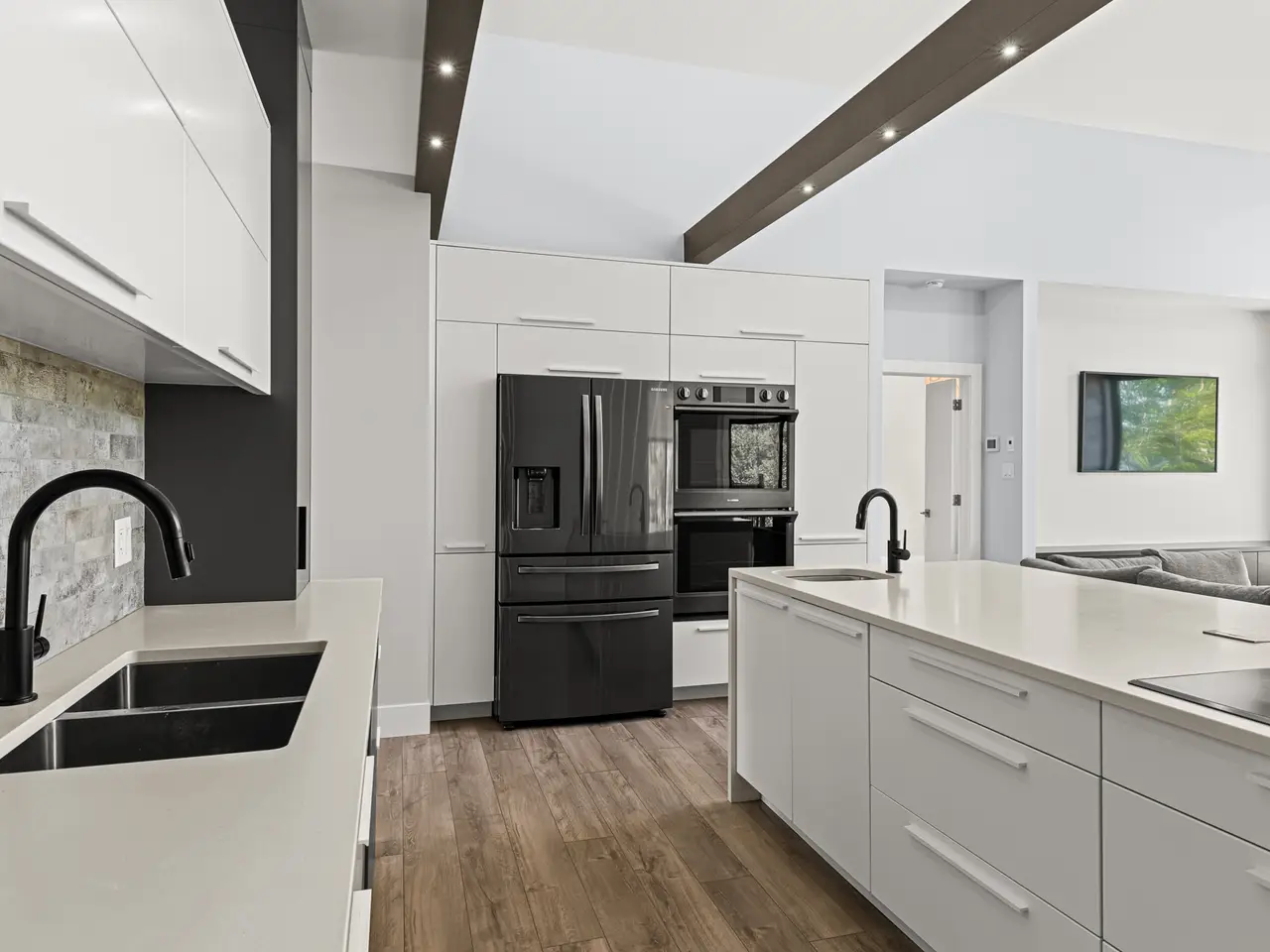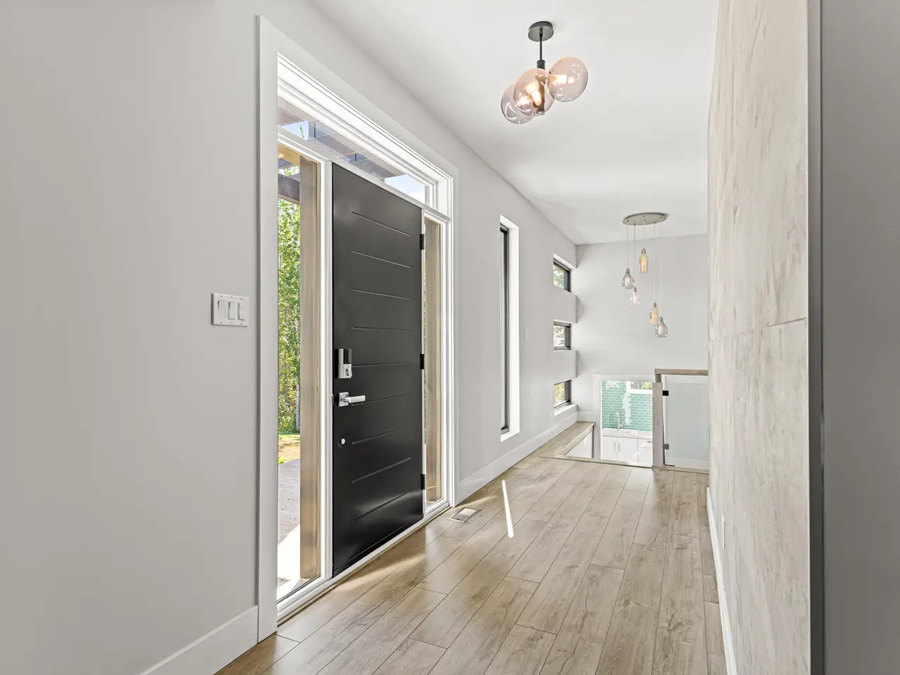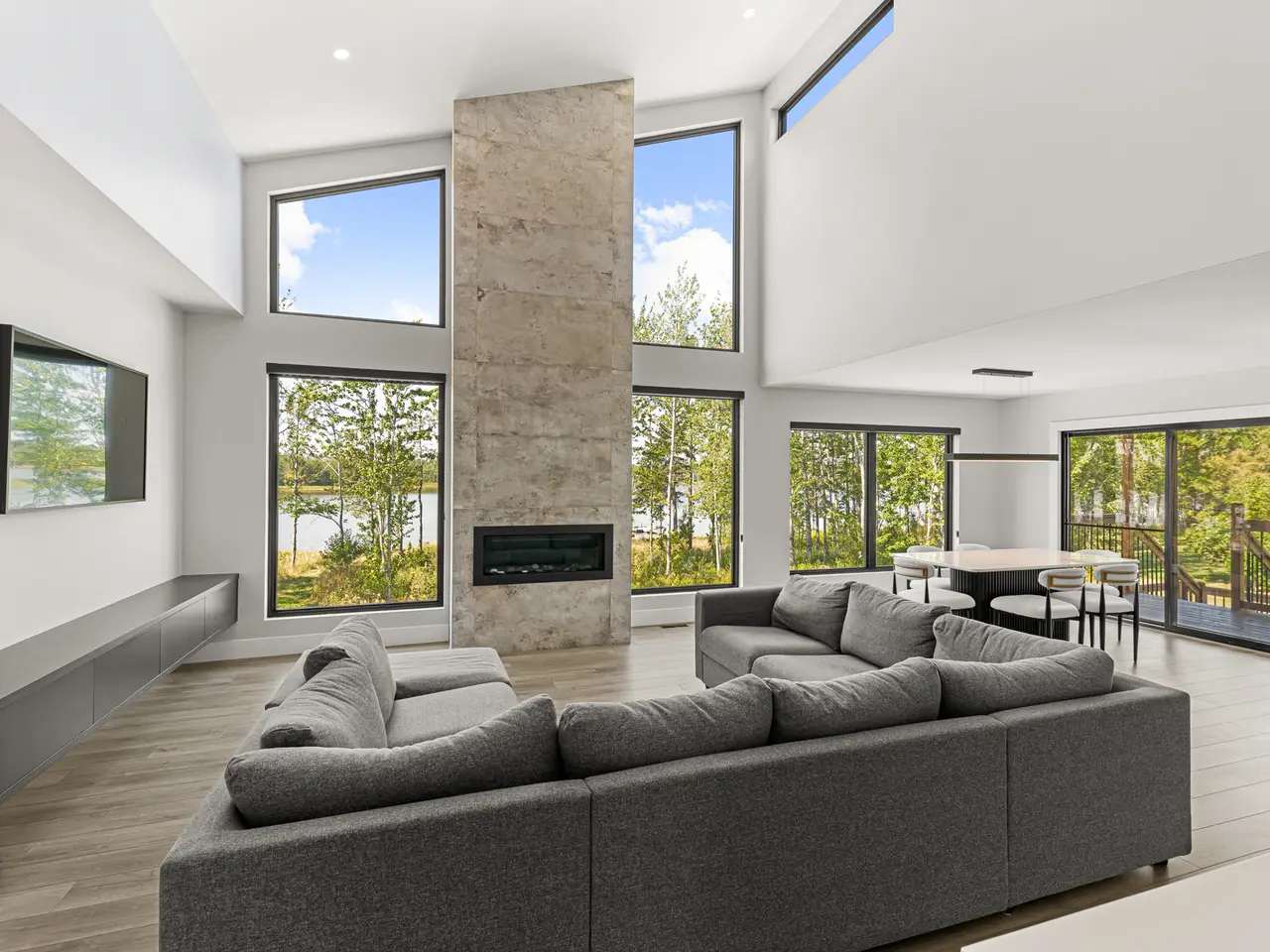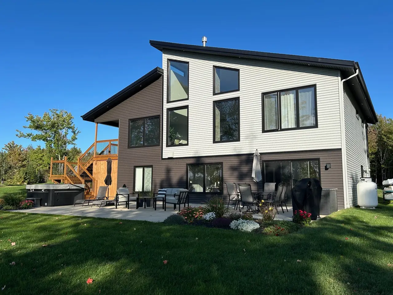 Stunning Waterfront Bungalow with Walk-Out Basement on 2.4 Acres // Forced Air Heat Pump // 4 Bedrooms & 3.5 Bathrooms // Attached Double Garage Welcome to 331 Pointe-A-Nicet, a custom-built 2019 home offering breathtaking sunsets over the water. This uniquely designed bungalow features a forced air heat pump with dual-zone control, EV plug-in, and generator readiness. Step inside to a large foyer that opens to a bright, open-concept main floor with kitchen featuring quartz waterfall counters, induction cooktop, double wall ovens, and a walk-in pantry. The living and dining room offer tons of windows for gorgeous water views, high ceilings, and a beautiful accent wall with fireplace. The primary bedroom offers more great views, a walk-in closet, and a spa-inspired five-piece ensuite. A second bedroom, four-piece bath, and powder room complete the main floor. There is also a handy side entrance including a mudroom with built-ins and a laundry room between the two floors. The lower level is designed for both entertainment and family or guest stays, with a walk-out to a massive concrete patio with hot tub overlooking the water and treed yard. Enjoy a games room with bar and beer fridge, gym with barn doors, dedicated office with water views, two additional bedrooms, and a three-piece bathroom. Additionally, this waterfront retreat offers plenty of storage and is wired throughout for high-speed internet. This exceptional home has been meticulously maintained and is move-in ready for its new owners.
