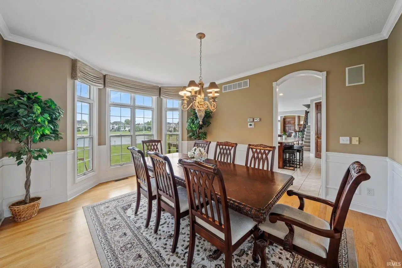 This elegant 2-story brick home in prestigious Covington Shore offers breathtaking lake views and exceptional design throughout. Step into a dramatic 2-story foyer featuring a curved staircase that leads upstairs, with a second staircase conveniently located off the eat-in kitchen.The home boasts a private study with built-in cabinetry, a bright and open living room, and a formal dining room filled with natural light from multiple large windows. The kitchen is both functional and beautiful, with rich cabinetry, granite countertops, and newer stainless steel appliances that make cooking a pleasure.The spacious family room features soaring ceilings, a cozy fireplace, built-in shelves, and expansive windows that frame the stunning outdoor views. All bedrooms are generously sized, with either private en-suite bathrooms or Jack-and-Jill access for convenience. The luxurious primary suite includes a fireplace, a serene sitting area with lake views, and an oversized walk-in closet.The finished 1,553 sq ft walk-out basement is an entertainer's dream, complete with a fireplace, home theater, and a custom bar?perfect for gatherings with friends and family. Kegerator, microwave, refrigerator in the basement and the pedal boat are also included in the sale. Imagine yourself fishing on a lake stocked with fish. With two furnaces and two A/C units, this home ensures year-round comfort and energy efficiency. Northpoint/Discovery/Penn high school Don't miss this opportunity to own a lake-view home that perfectly balances elegance, comfort, and functionality. New HVAC units, New refrigerator, New stove, New dishwasher, New washer, New dryer in the past 5 yrs. Call today for a private showing. You won't be disappointed.
