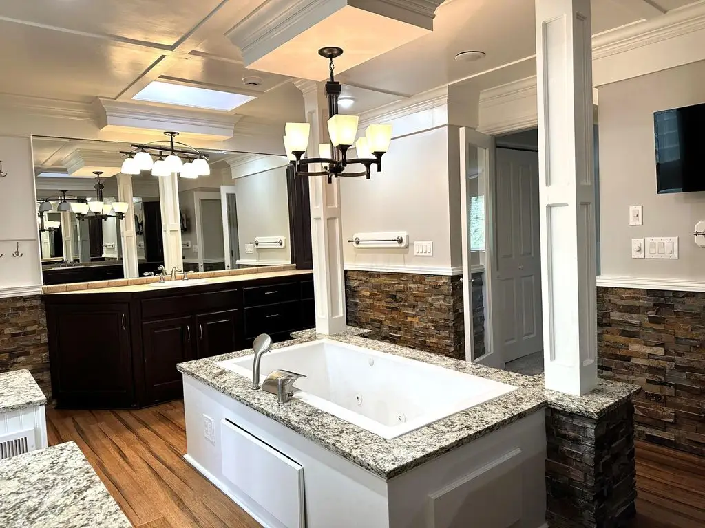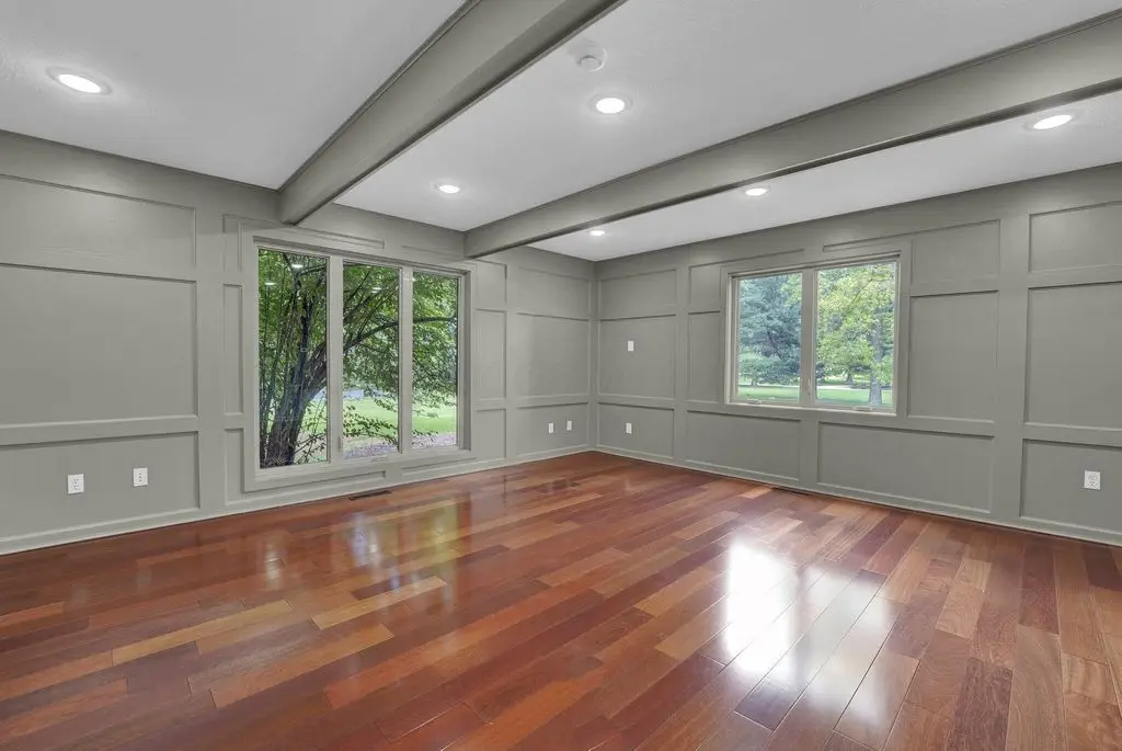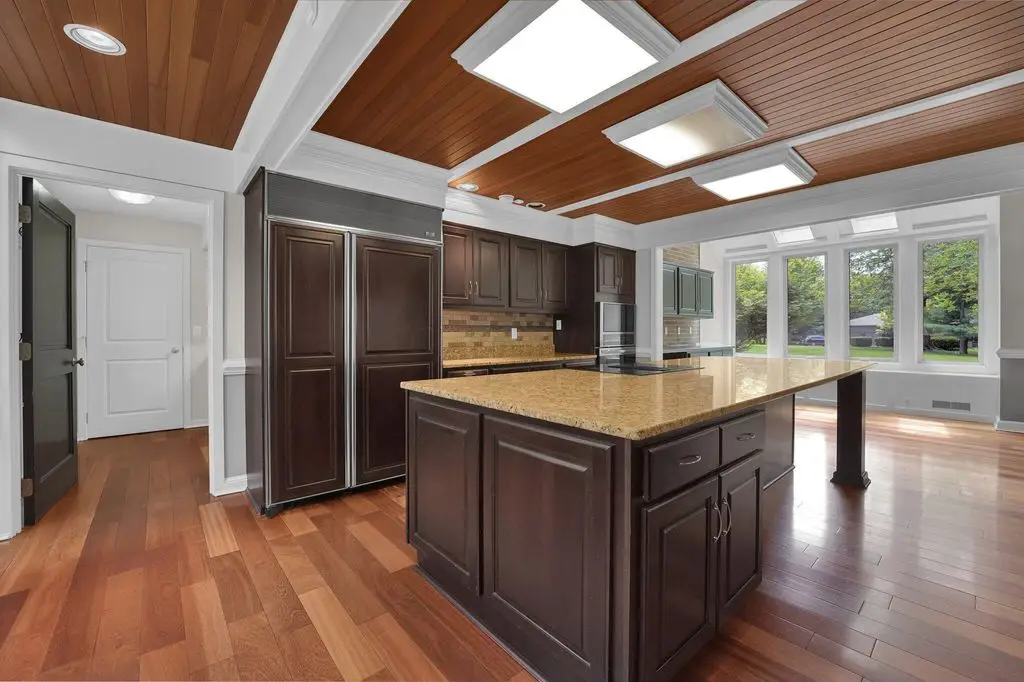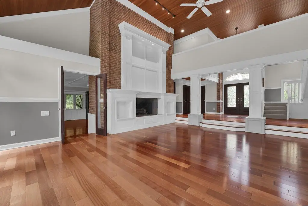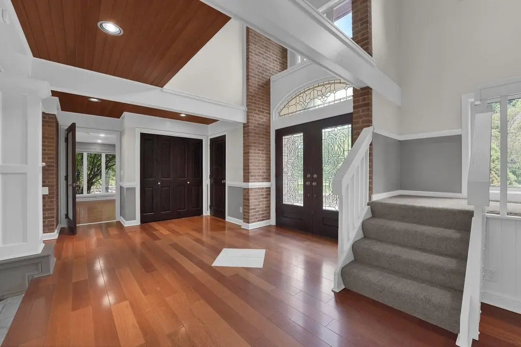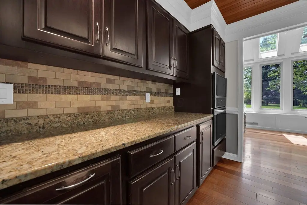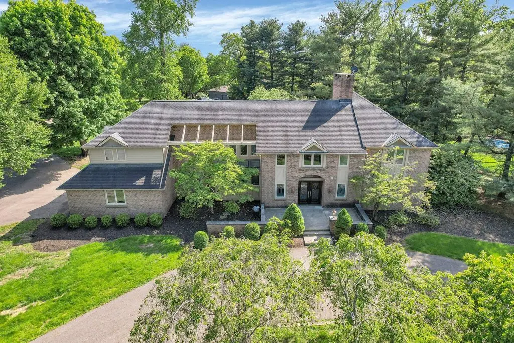 Situated on 2 picturesque acres on a cul-de-sac within the sought-after Highlands of Erinwood neighborhood, this stunning custom-built home offers a perfect blend of luxury, privacy, and timeless design. A circular driveway leads to the elegant beveled-glass mahogany entry door and into a welcoming 2-story foyer with beautiful 6' Brazilian Cherry hardwood floors and light-filled living areas, with abundant windows and skylights throughout. The heart of the home is the impressive great room, highlighted by a dramatic tongue-and-groove wood ceiling, a striking fireplace, and custom built-ins. The chef's kitchen combines form and function with granite countertops, a generous island, upscale appliances, and extensive cabinetry - seamlessly flowing into the dining and great rooms for easy entertaining. A main-level den features a fireplace, custom built-ins, and classic wainscoting, while the cozy family room with a new 110' TV offers the perfect retreat. The large mudroom/laundry area provides exceptional workspace and organization. The outstanding primary bedroom that is highlighted by an electric fireplace, is a true retreat, showcasing a beautifully renovated bath with dual granite vanities & dual commodes, a spa-like shower with steam & auxiliary heat, and a jetted tub with a granite deck & ledge. Two spacious bedrooms share a Jack- and-Jill bath, while a fourth bedroom enjoys an en-suite bath. Outdoor living includes two patios - ideal for relaxing or hosting guests. Additional highlights include freshly painted rooms, new carpet, deep 3-car garage, commercial grade tankless hot water heater with a recirculating line, water filtration system, gorgeous trim and woodwork, abundant closet space, and a partially finished lower level offering flexible living and storage options. Located in the Granville School District, this exceptional home is a rare opportunity offering quality, comfort, and space at every turn.