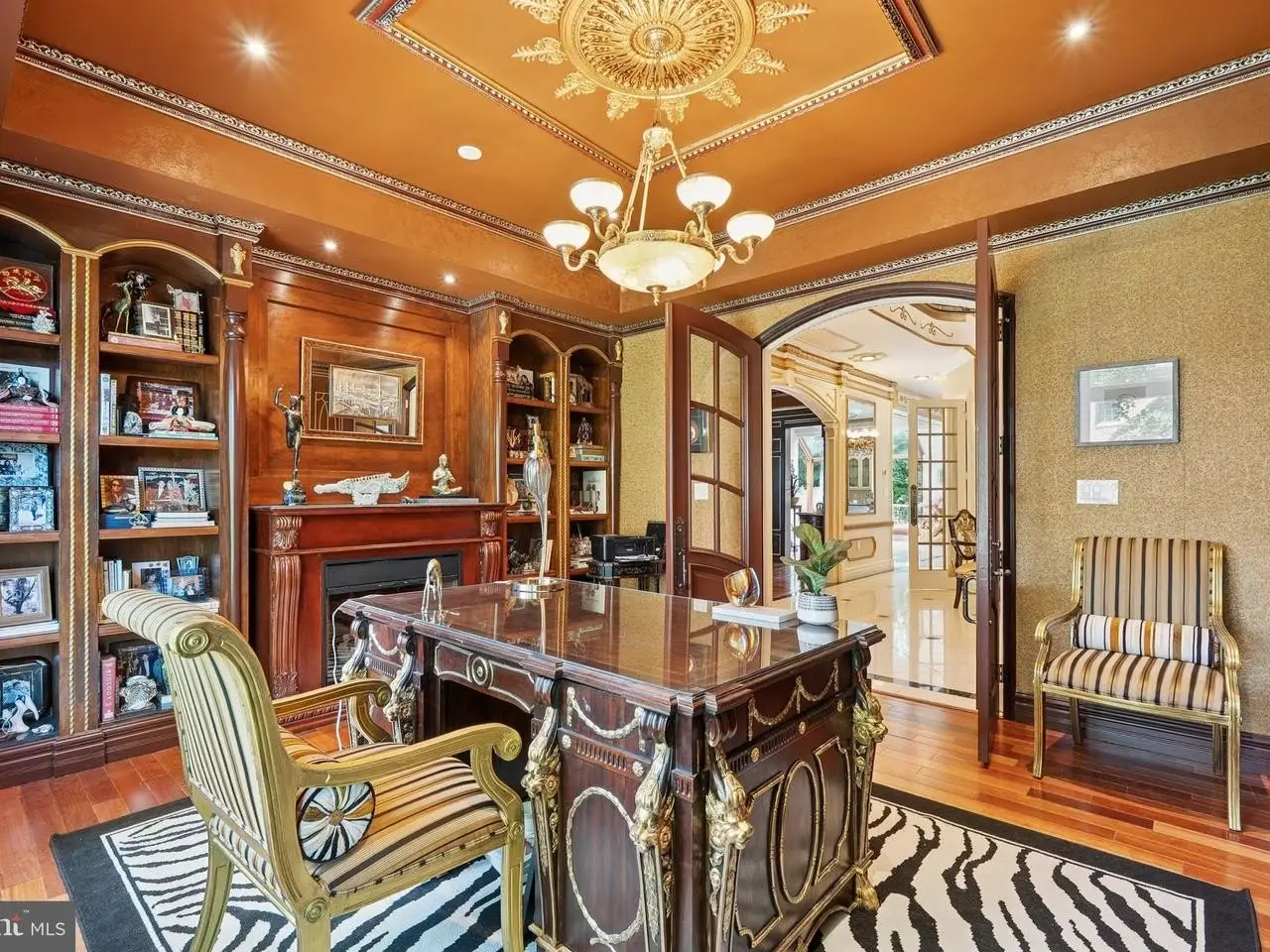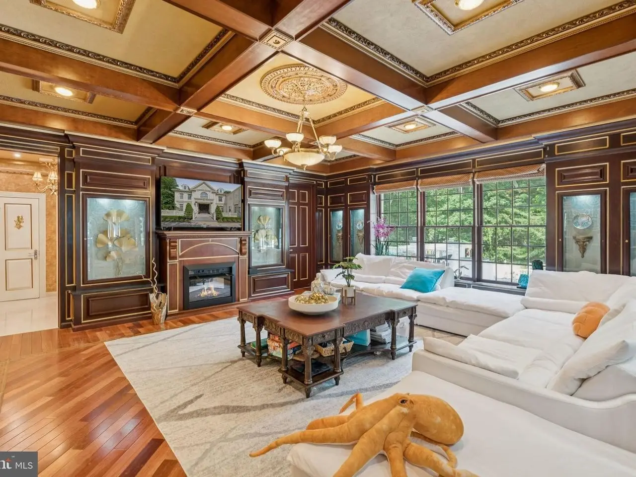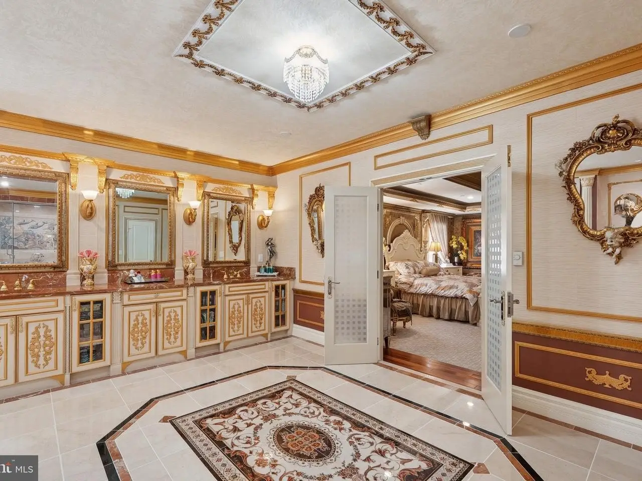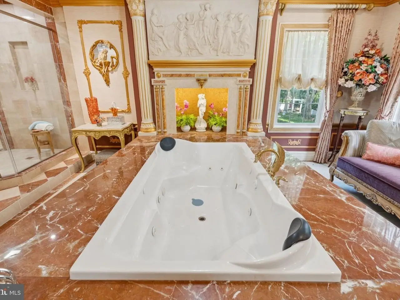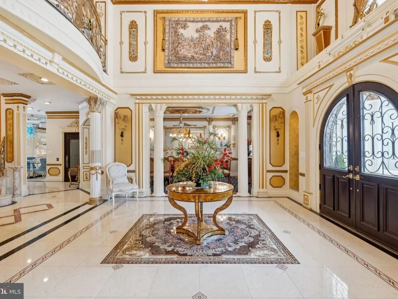Exquisite artistry, quality craftsmanship and a touch of glamour combine in this spectacularly appointed 11,000+ sq. ft. manor, set on .89 lush acres. Sited near the Potomac River and moments from the quaint shops and fine dining of Great Falls village, this impressive estate showcases luxurious living at every turn. A grand marble foyer sets the tone, with lighted recesses, gold-gilded trim, and sweeping views of the home's richly designed interiors. The formal living and dining rooms feature antique mirrors, crystal chandeliers, intricate ceiling medallions, and decorative hardwood floors with inlaid wool carpeting. At the heart of the main level, a breathtaking reception area rises two stories, offering an ambiance of elegance and exceptional detail. The richly paneled library is clad in hardwood and features a fossil-stone granite wall with built-ins and fireplace. A coffered-ceiling drawing room includes 11 glass showcases-perfect for art or collectibles. Nearby, a bright music room with bamboo flooring and iron chandelier offers quiet refuge. The chef-caliber gourmet kitchen impresses with an 8x5 ft. ""Louise Blue""Â? granite island and premium appliances. A granite breakfast bar and informal dining area complete the kitchen. Adjacent, a vaulted solarium with bamboo ceiling and French doors opens to expansive decks and lawns, ideal for indoor-outdoor entertaining. Additional amenities on this level include a paneled elevator, pantry, butler's pantry with copper sink, mud room, and direct access to the 4-car garage. Upstairs, the opulent owner's suite is a private sanctuary that features a tray ceiling, Brazilian cherry flooring with a 100% wool inlay rug, and a cozy sitting area with silk carpet before a marble fireplace and media screen. A morning kitchen offers private refreshment. The walk-in gallery closet is a boutique experience, with Thomasville cabinetry, center Travertine island, cedar-lined wardrobes, and chandelier-lit tray ceiling. The spa-like primary bath stuns with a central soaking tub before an electric fireplace, dual vanities with 24k gold-gilded sinks, media-screen mirror, and a separate commode room with decorative vanity. Glass-enclosed steam and marble showers, stone seating, and mosaic tilework complete the indulgent space. Three additional bedroom suites each feature designer bathrooms and walk-in closets. A full laundry room with LG washer/dryer and whirlpool sink completes the upper level. The lower level embraces a sleek, club-like vibe. Descend via curved staircase with leopard-print carpet to a modern lounge featuring a golf simulator, lighted mosaic bar, billiards area, and expansive rec room-ideal for lively entertaining. A dramatic home theater, entered through a historic Hotel Washington door flanked by theater masks, includes a custom wool carpet medallion, three-tier leather seating, granite bar, and immersive surround sound. Also on this level: a 5th bedroom with spa bath, sauna and steam shower; a Tuscan-style wine cellar and tasting room with stone and granite walls; and a utility closet with stacked washer/dryer for guests or staff. Outdoor living is equally impressive. Walk out to a tiered granite terrace with a summer kitchen, built-in BBQ, and stone fireplace. A generous deck overlooks landscaped lawns and a newly built pool, plus a hot tub with recessed TV and radio-perfect for private relaxation or elegant entertaining.