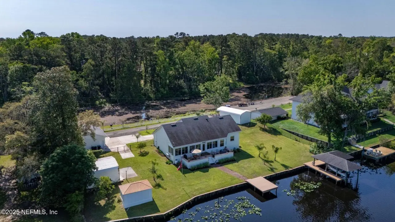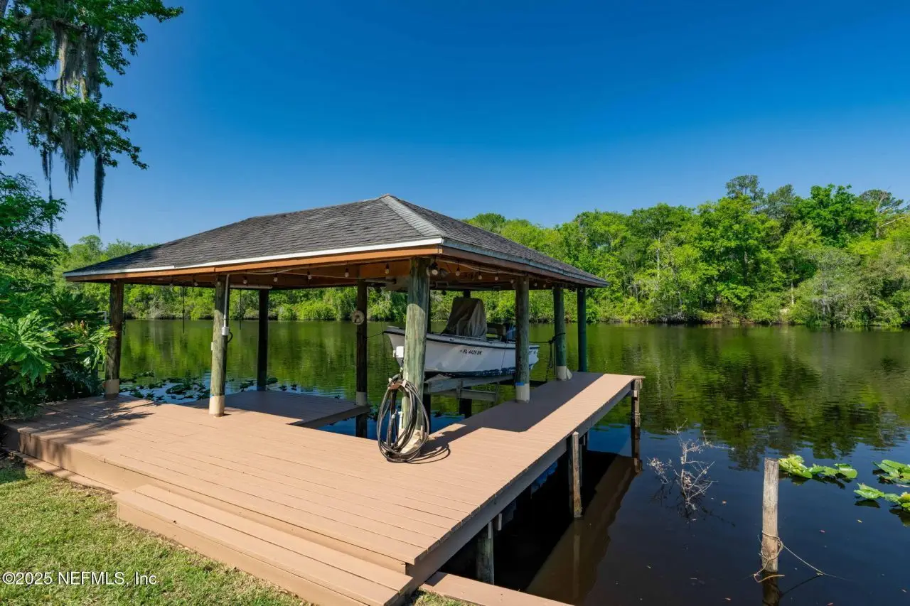 Don't miss this beautiful Black Creek home and get ready to be a part of Creek life! This property has it all with spectacular views of Black Creek in the backyard, and a fishing lake in the front yard! The property features a dock with covered slip and boat lift, wood bulkhead, an additional fishing dock, a boat shed for kayaks and all other aquatic equipment, a generous separate workshop/garage with concrete floor, a concrete block oversized two car garage and covered RV parking garage. The inside the home is well kept and has three bedrooms and two baths in a thoughtfully arranged open plan on one level with a large glassed-in Florida room over looking the water and a patio beyond. Imagine, having your coffee with deep water Black Creek in the backyard, and nothing but trees on the other side (Fla. Land Trust property) and it is just a short boat ride connecting to the St. Johns River and from there anywhere in the world