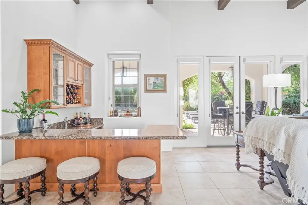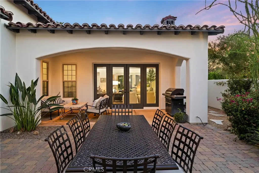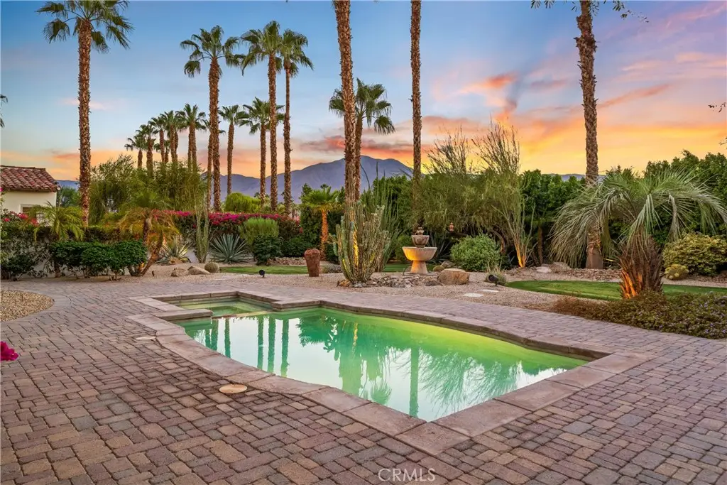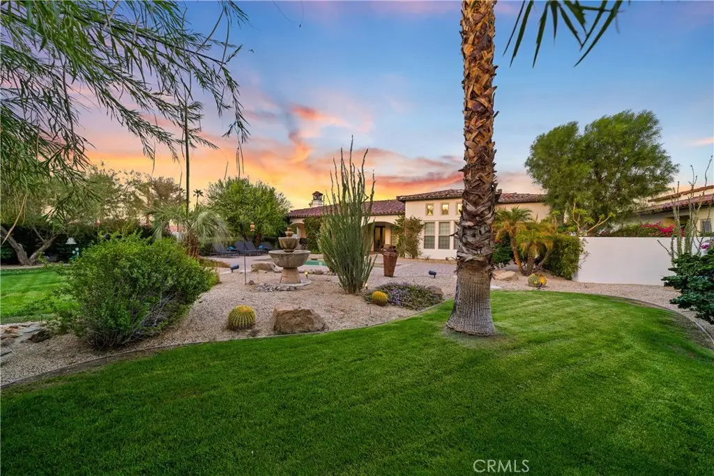 Nestled within the prestigious Norman Estates at PGA West, this meticulously maintained 3,040-square-foot home is a masterpiece of design and comfort. It offers an unparalleled lifestyle, combining modern luxury with the relaxed elegance of a resort. Every detail has been carefully considered to create a bright, airy, and inviting atmosphere, from the moment you step through the private, gated courtyard. The residence's high ceilings and thoughtfully designed open-concept layout fill every room with an abundance of natural light, creating a sense of spaciousness and tranquility. The living room serves as the heart of the home, featuring a cozy fireplace for cooler evenings and seamless access to both the front and back patios, ideal for effortless entertaining. A culinary dream, the kitchen boasts a large central island, warm wood cabinetry, and sleek granite countertops. It is equipped with top-of-the-line stainless steel appliances, including a gas cooktop, catering to the most discerning of chefs. Retreat to the secluded primary suite, which offers direct access to the serene backyard. The en-suite bathroom is a spa-like sanctuary, featuring a lavish soaking tub, a walk-in shower, dual vanities, and an expansive walk-in closet. The home includes two additional en-suite guest rooms, ensuring ultimate comfort and privacy for visitors. One is located within the main residence, while the other is a detached casita accessed from the central courtyard. The home features a very impressive custom 72 bottle wine wall for your favorite vintage. The exceptionally large backyard is a private desert oasis, complete with a refreshing pool and spa. Multiple covered and uncovered patios offer ample space for al fresco dining, sunbathing, or simply relaxing while enjoying the breathtaking mountain and sunset views. Beautifully landscaped grounds are set against a magnificent backdrop of the Santa Rosa Mountains, providing a truly spectacular setting for both relaxation and entertaining. As a resident, you will enjoy all the exclusive benefits of the La Quinta Fairways HOA, including pristine community landscaping, enhanced security, and the peaceful, meticulously maintained environment that defines this sought-after enclave. This home truly offers the epitome of upscale, single-level living in the highly desirable PGA West Greg Norman area. Welcome Home.