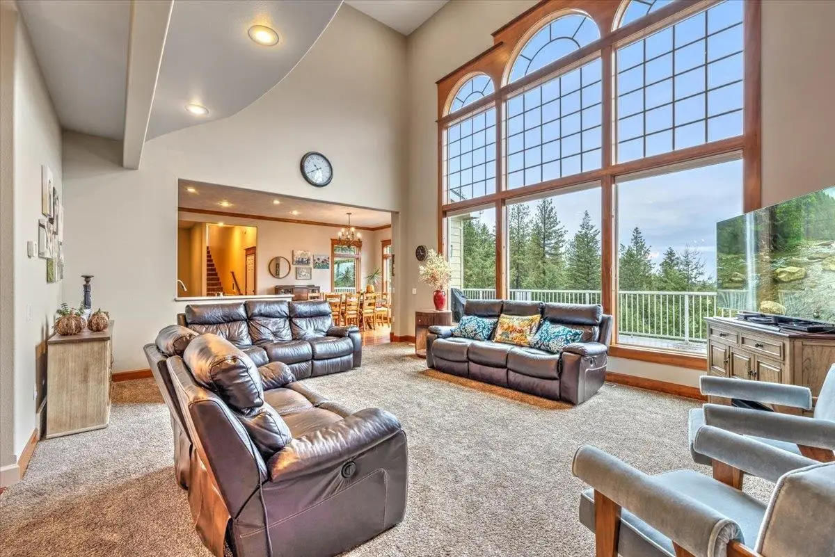 Nestled atop a picturesque hill in the heart of Spokane Valley lies a remarkable estate situated on 13.63 acres of pure tranquility & breathtaking views! Indulge in the splendor of this magnificent traditional home, an architectural masterpiece boasting over 10,000 sq.ft. which includes an indoor BASKETBALL COURT/SPORTS COURT, soaring ceilings, large view windows, gorgeous hardwoods and renovations in 2020 to include: flooring, lighting, interior paint, exterior paint, new decking, kitchen & bathrooms. This Estate offers a blend of luxury & comfort, adorning a total of 7 bedrooms, two master suites (one on main level and one upstairs), 6 bathrooms, formal-living & dining rooms and a great room that opens to the Chefs kitchen. The beautiful kitchen features hardwood flooring, custom cabinetry, quartz countertops, state of the art appliances & an expansive pantry. Main floor master suite boasts an expansive tile shower, soaking tub, new tile flooring & large walk in closet. The oversized garage is 1,274 sq.ft.