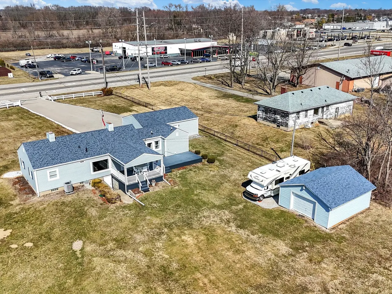 Great commercial location on the west side of Greenfield offering 1.979 acres. Parcel offers a well kept 1296 sq home along with a 3 car attached garage and a 1 car detached garage. The current structures could be used for multiple situations plus there's plenty of space for additional development. Parcel sits immediately east of a 9 screen theater and within a close proximity to multiple car lots, other commercial uses and residential developments. Zoning is National Road which allows for broad range of commercial uses including residential with commercial uses, multi-family, retail, grocery, restaurants, studios, health studios, spa, garden centers, professional offices, financial services, convenience stores, auto wash, auto service and repair, auto sales, auction facilities, self storage, commercial parking, manufacturing and additional uses (some require board of zoning approval and or development plan approval).