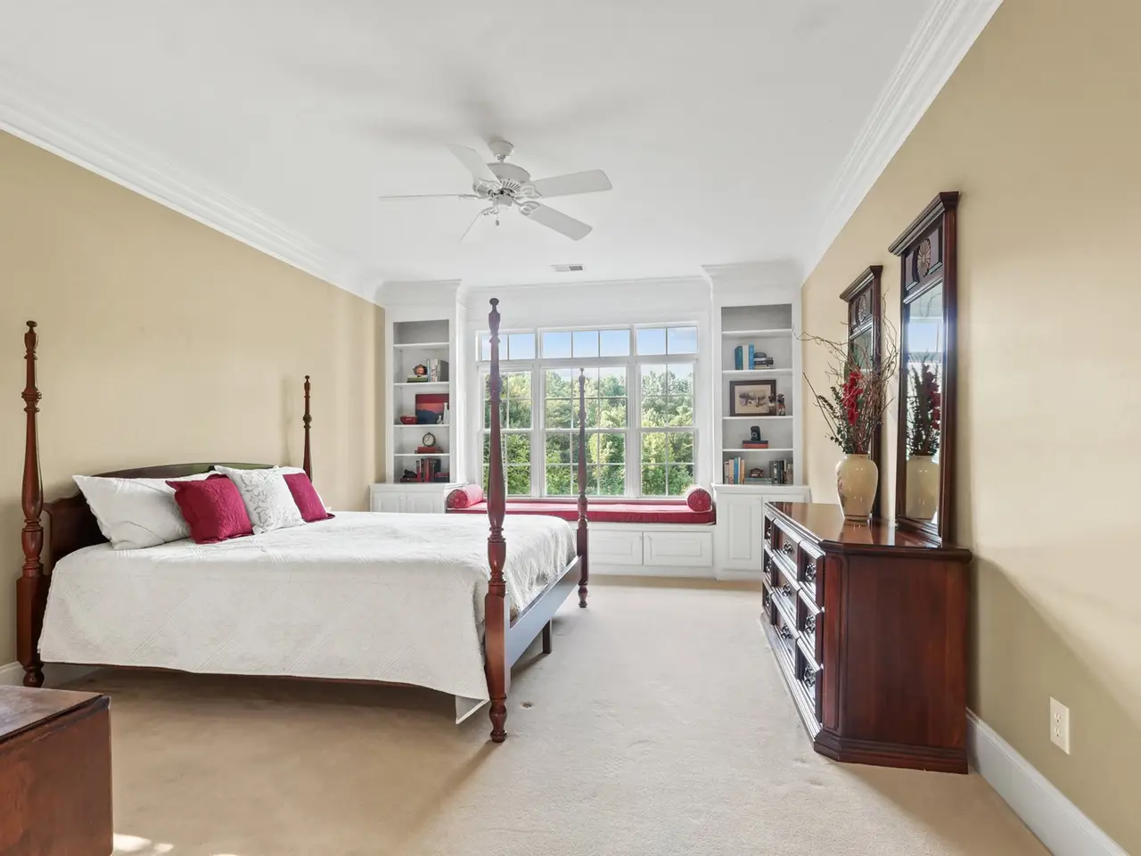Perfect opportunity to own this custom-built home in sought-after Northwest Greensboro neighborhood. Beautiful 1.5-acre lot features gorgeous private backyard overlooking pond. Formal rooms plus eat-in kitchen and lovely covered deck. Spacious office with built-ins and wet bar. The primary bedroom has an incredible walk in closet Second bedroom has an ensuite bath. A full walk-out basement provides an opportunity for in-law suite. This lower-level living has an extra large living space plus a kitchen, two bedrooms, exercise room, full bath and heated one car garage. The seller is currently using the basement garage as a workshop. Additional upgrades include permanent stairs for walking up to the large floored attic, two water heaters, a central vacuum system, and a sprinkler system.