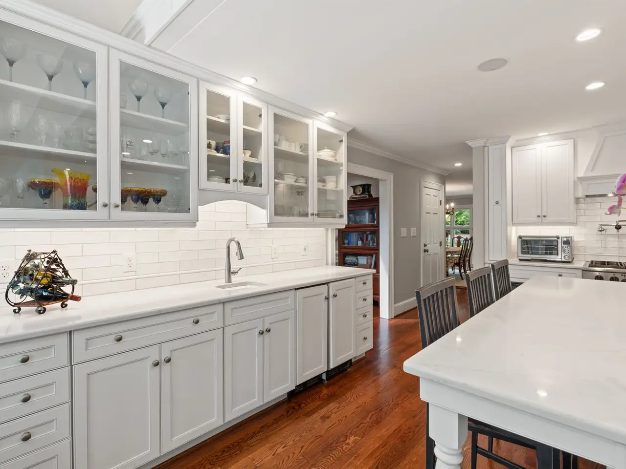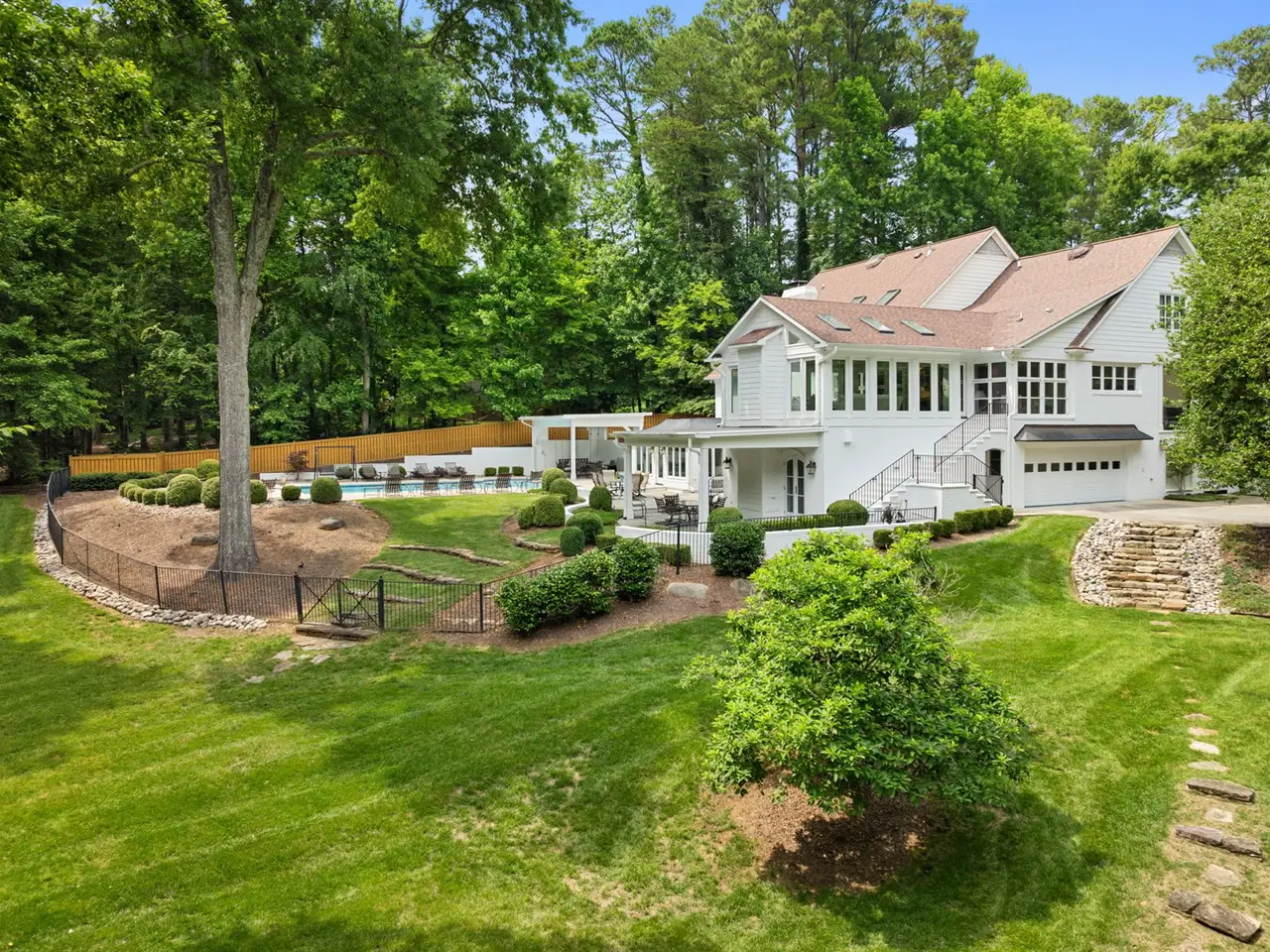 Impeccably maintained 4 bedroom/4.5 bath brick home nestled on a lush, private lot. Home has been updated by Wolf Construction-two sunrooms, kitchen reno, outdoor pavillion & more. The property overlooks a professionally landscaped backyard oasis featuring a 25x40 heated pool, pavilion w/daybed swing, fireplace, covered patio & access to a stocked pond. With 7,098 square feet of heated living space & an elevator that goes from the basement to the second floor, this home has great potential for multigenerational living. Main level boasts the primary suite, gourmet kitchen, formal & informal living areas, a dining room, dedicated office, large laundry room & a light-filled sunroom. Upstairs, you'll find three additional bedrooms and a Jack & Jill bath. Abundant storage throughout. The finished basement offers a second full kitchen, living area, sunroom, flex room, second laundry & two full baths (one has a steam shower) and is an ideal spot for entertaining guests. Don't miss this one!