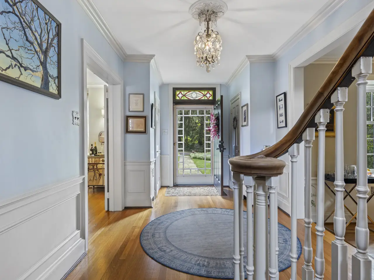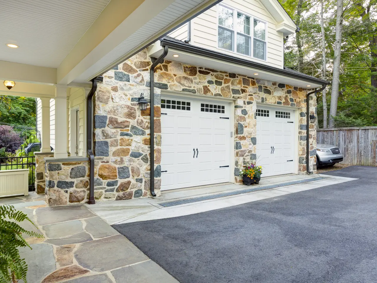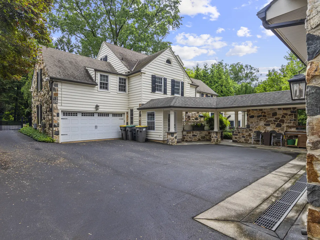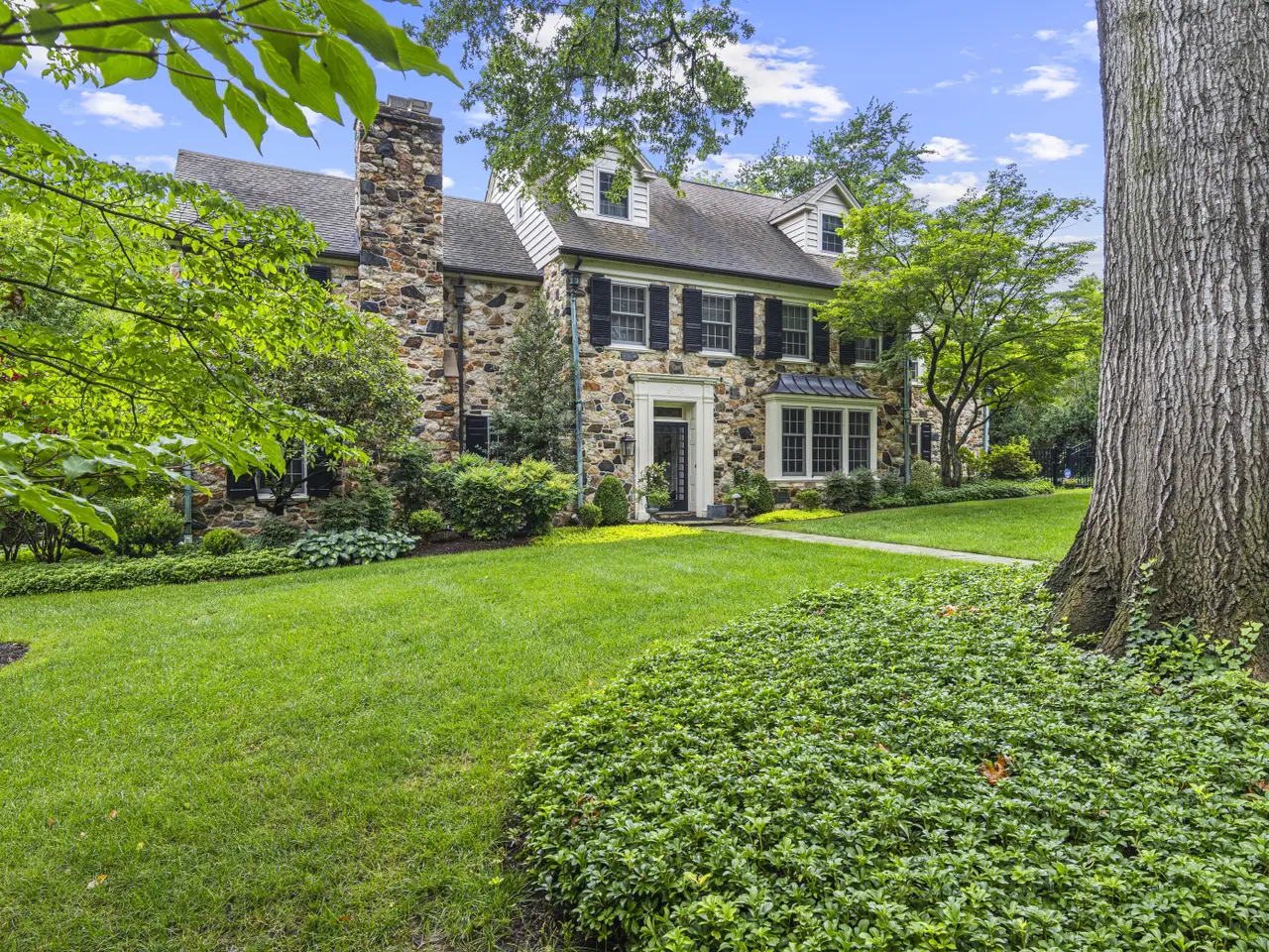 Dramatic and stunning, this stone colonial is located in Westover Hills, the historically significant neighborhood popular for its tree-lined streets and architecturally unique homes. Set on an over half acre lot with elaborate hardscaping and landscaping, this charming home has it all. Enter into the stately center hall foyer with powder room and immediately notice the charm and character unique to homes of this era, including a wide classic staircase with ornate newel post, gleaming wood floors and custom moldings. The foyer is flanked by a large formal living room with slate fireplace and a generously-sized dining room with large windows. The well-sized kitchen features island with seating, granite counters and stainless steel appliances. From the living room, head through either of 2 sets of French doors to find a versatile sitting/music room with built-in cabinetry. Continue through to an newer sunroom with flagstone flooring, picture windows and high ceiling. A comfortable family room with built-in shelving is tucked at the end of the foyer. Head up the grand main staircase and into the luxurious owner's suite with large bedroom, dressing area and updated en-suite with soaking tub, walk-in shower and dual vanity. A second bedroom has private bath and two additional bedrooms share a Jack-and-Jill bath. Continue to the 3rd floor to find an additional guest suite with an abundance of closet space, including a cedar closet. The partially finished lower level features a large game room as well as unfinished storage space and powder room. From the main floor sunroom, head out French doors through a portico to find the newly designed entertaining space which includes sprawling flagstone patios, built-in outdoor kitchen and covered breezeway from the 2-car garage to the main house mudroom. The detached garage features a large finished space above including kitchenette and full bath offering endless possibilities for apartment or private office. The fully fenced grounds are truly one-of-a-kind. Enjoy the classic features with all of the ease of modern living while being just steps from Downtown Wilmington, Trolley Square and Rockford Park with immediate access to Amtrak and I-95.