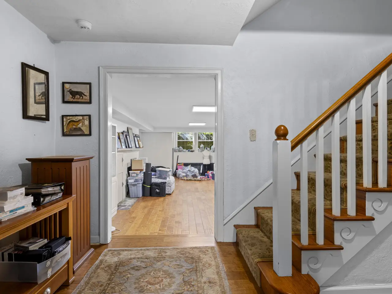 Ornate newel post.