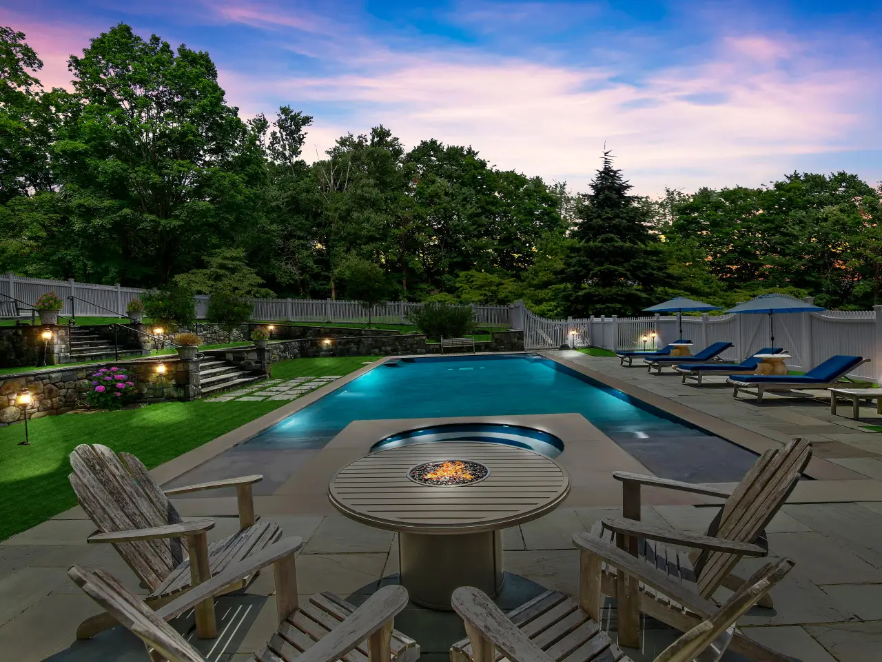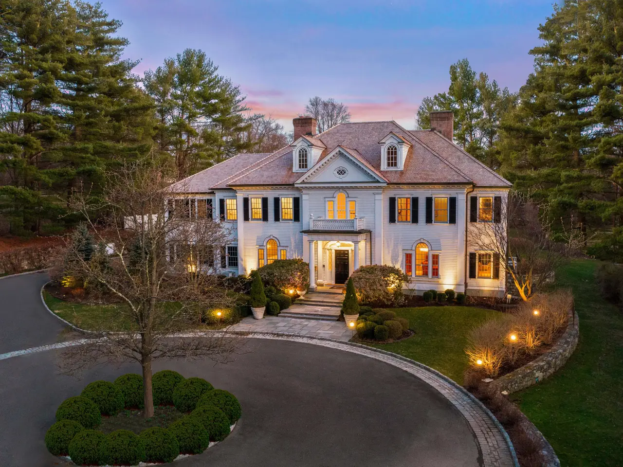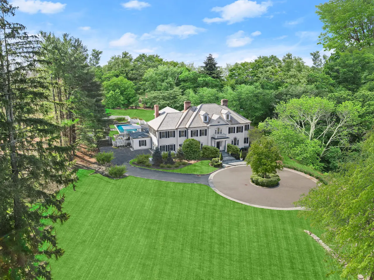 A timeless Connecticut Compound in mid-country Greenwich custom designed and built by a coveted team. Resting on 4.7 private level acres with a two bedroom guest house and barn/accessory garage. The sun-filled stylish interior features 10+foot ceilings, grand front-to-back entrance hall, refined living and dining rooms, a large handsome library and five inviting fireplaces all with bespoke finishes. The gourmet kitchen and breakfast room seamlessly connect to three exposed family rooms perfect for gatherings. Five en-suite bedrooms, including a primary suite with spacious terrace, sitting room, double walk-in closets and luxurious baths. The third floor space is open and bright for versatile use. The exceptional lower level has multiple recreation rooms, a wine cellar, a potential media room, and space for arts and crafts. Outdoor spaces offer all the amenities to enjoy the seasons; pool, spa, fire pit, expansive lawns and a combination of open and covered spaces for entertainment and relaxation. The guest cottage, fronted behind an old world stone wall, has a charming covered front porch and its own driveway entrance. For driving enthusiasts there is garaging for 5 cars. A unique opportunity on a lovely country road close to schools and parks, 45 minutes to NYC.