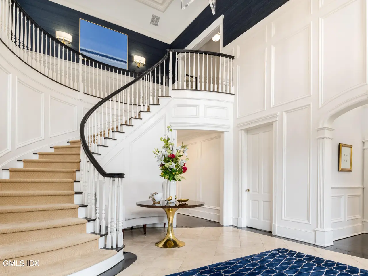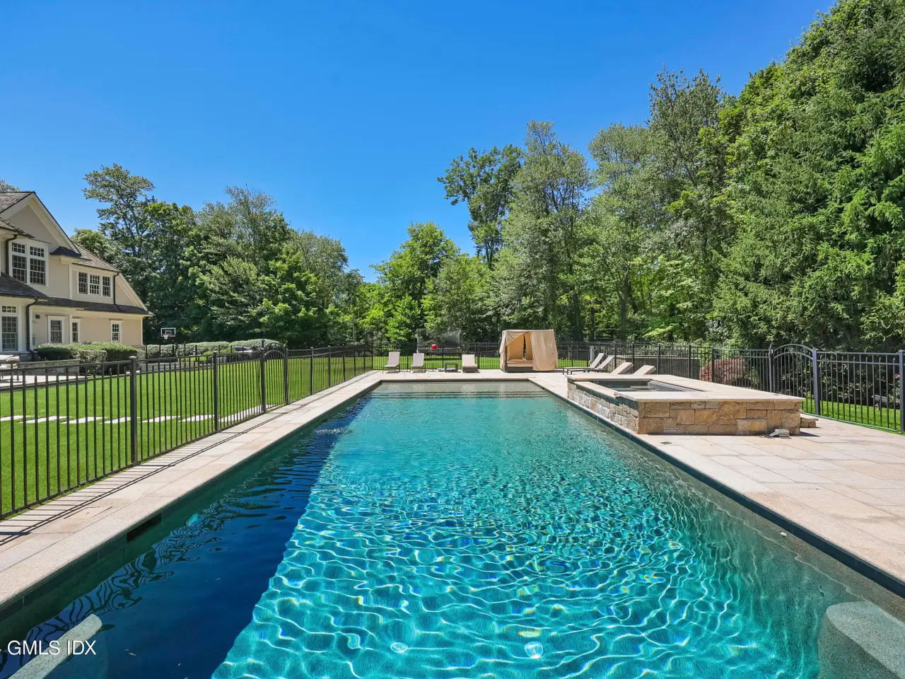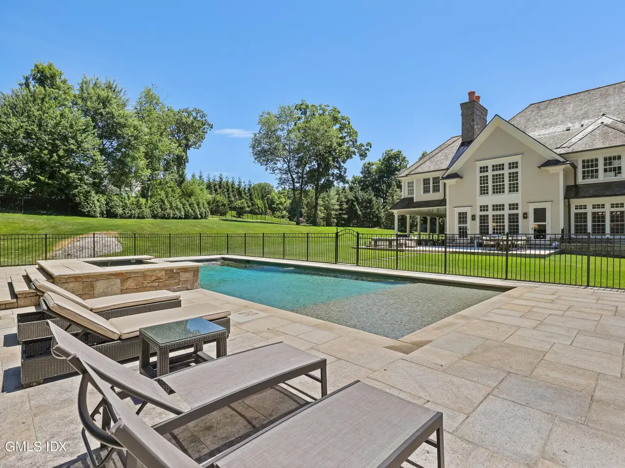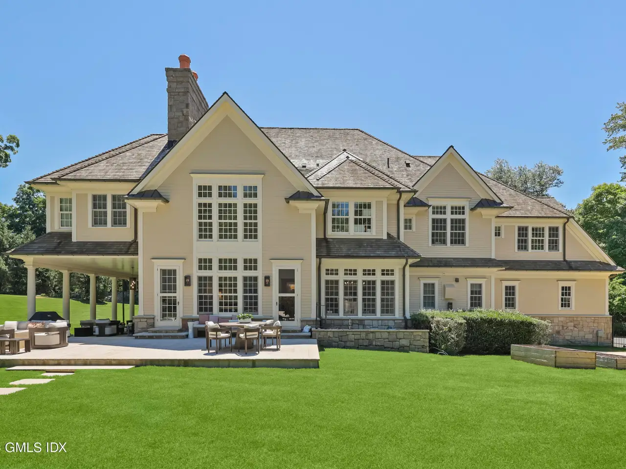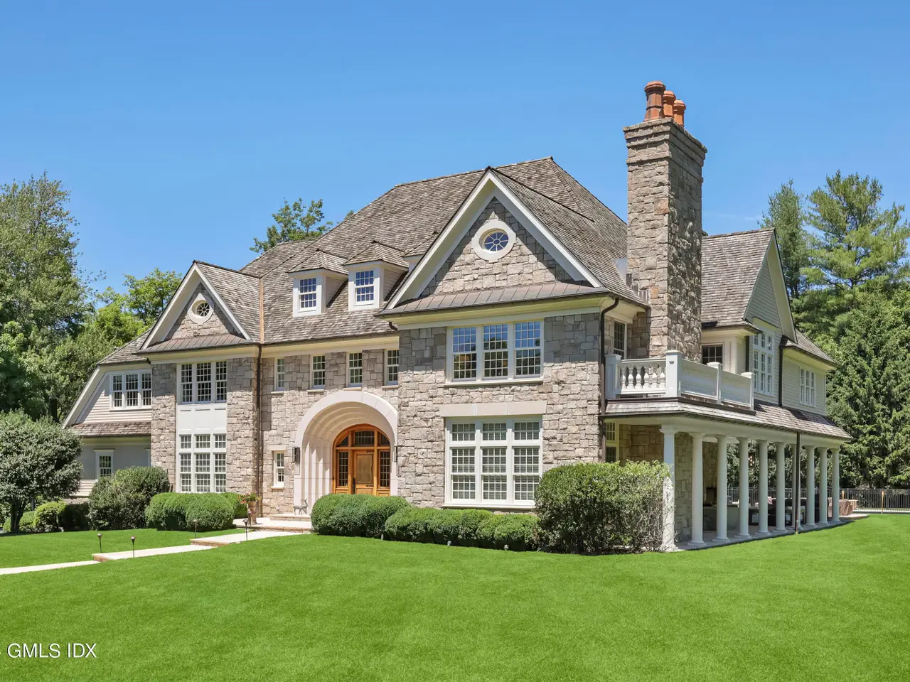 Elegance and luxury define this light-filled modern stone + clapboard home on 2 gorgeous acres close to town + schools. Designed by Rich Granoff, this 7 BR, 7.2 bath residence allows for spectacular indoor/outdoor living on expansive grounds w pool + spa, covered terrace with FP + firepit on a quiet cul-de-sac. Built in 2005 + recently redesigned by current owner, the open floor plan + very high ceilings impart a sense of airiness + spaciousness. Sunlight streams through the home - from the double height foyer to the lovely formal rooms + EI kitchen adj to amazing family room w vaulted ceiling + tall fp. Stunning Primary Ste w sitting rm + lux bath. 6 additional en-suite bedrooms. Wonderful LL media/game rm w high ceilings. 3 car garage w room for lifts. Generator. Greenwich at its best.