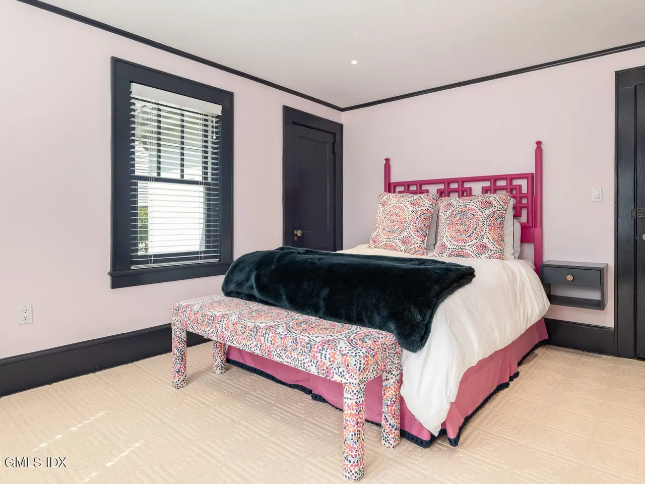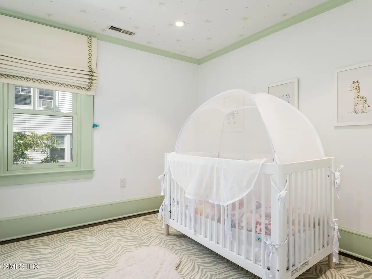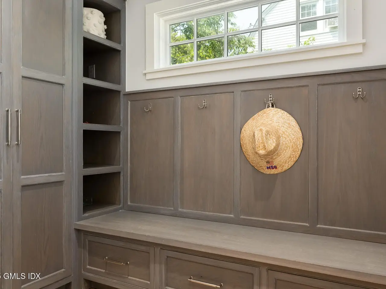 Perfectly positioned between conservation land and one of Greenwich's most prestigious roads, this five-bedroom home combines exceptional convenience with refined privacy. A tree-lined sidewalk provides direct access to downtown, while the property offers a serene, retreat-like setting. French doors open to a spacious terrace with outdoor lighting and a fully fenced yard, adjacent to an oversized two-car garage with bonus space above. The elegant family room showcases a grand stone fireplace and views of the manicured lawn, and don't miss the lower level complete with a playroom, laundry, and wine cellar.