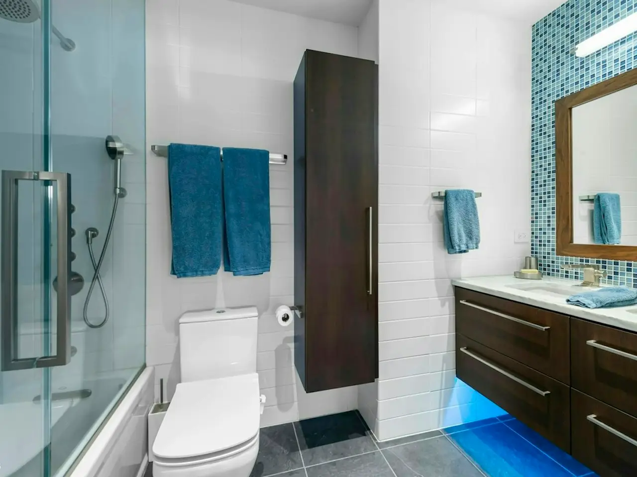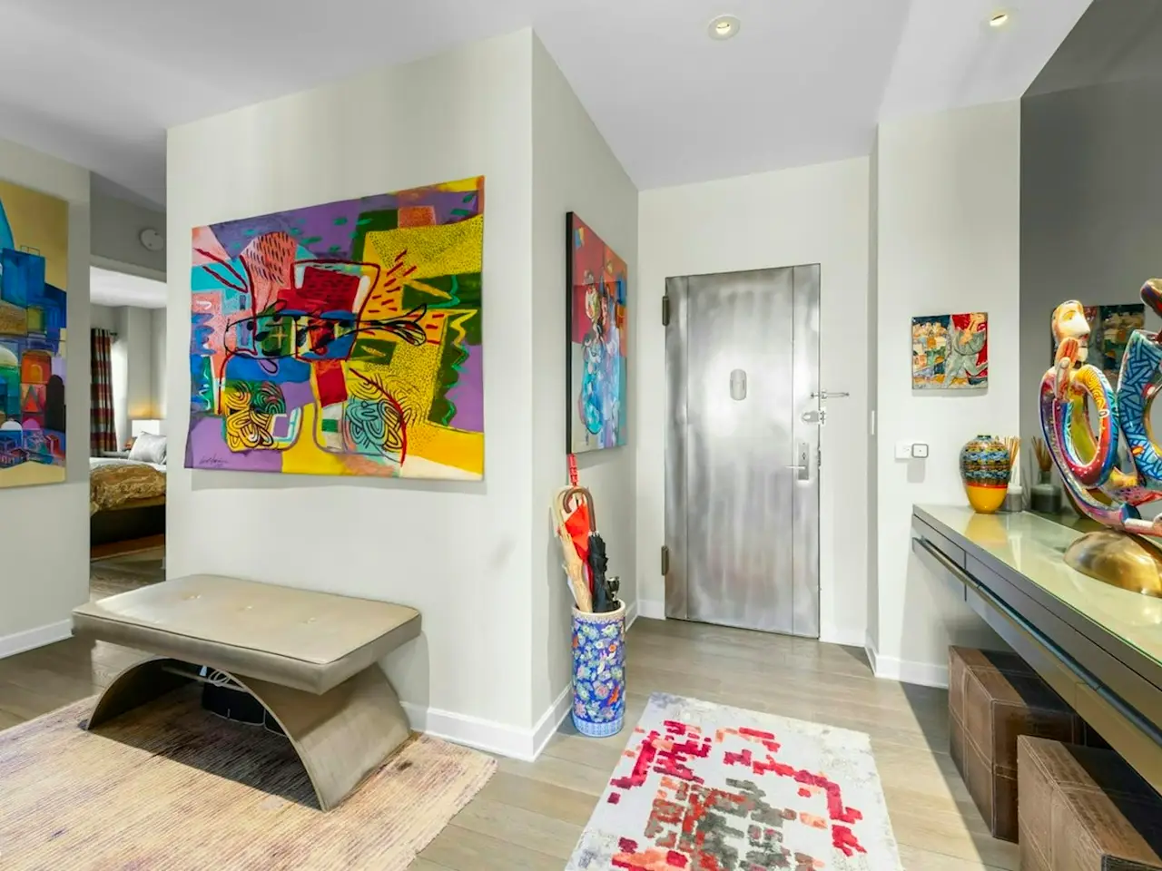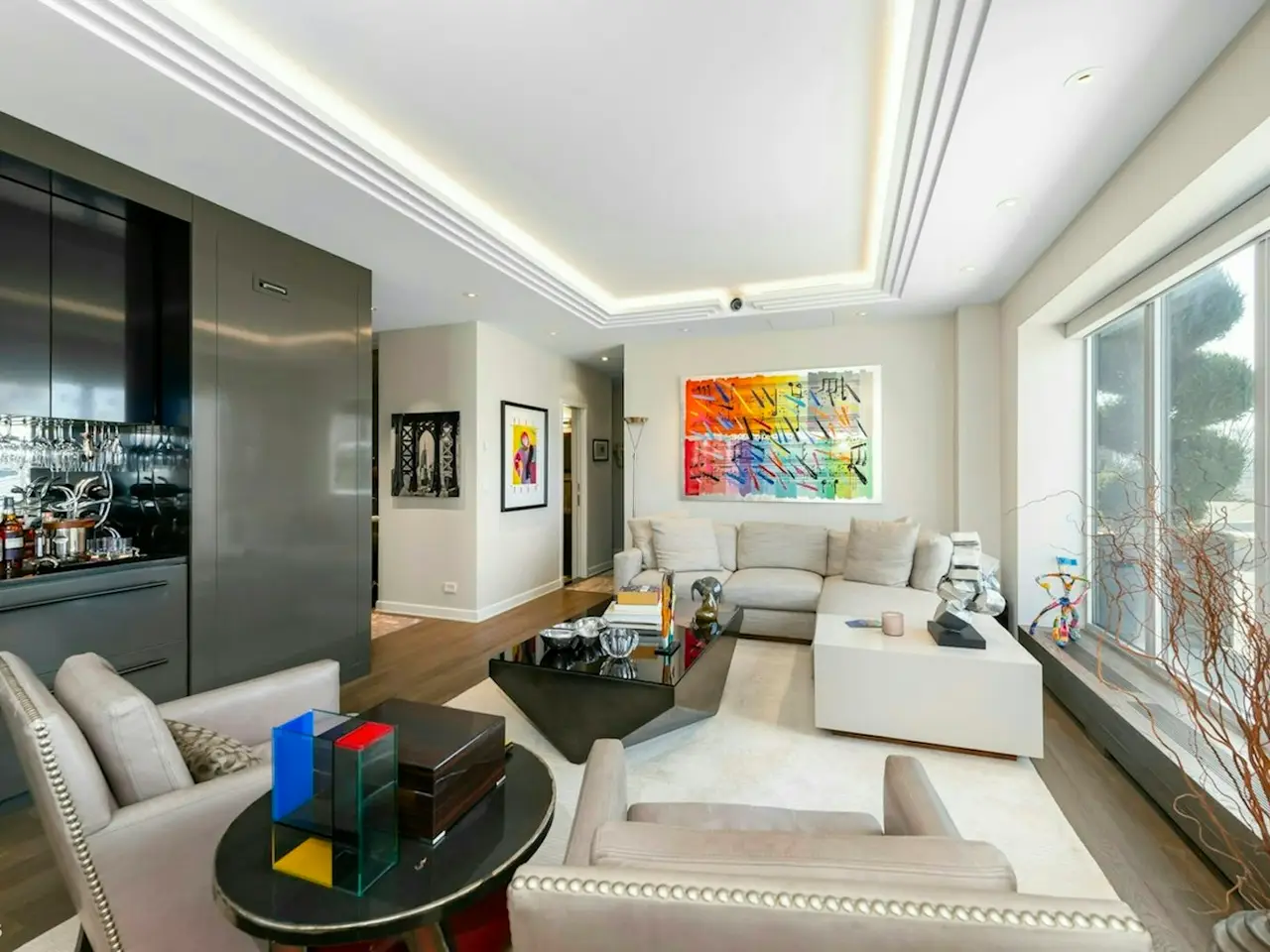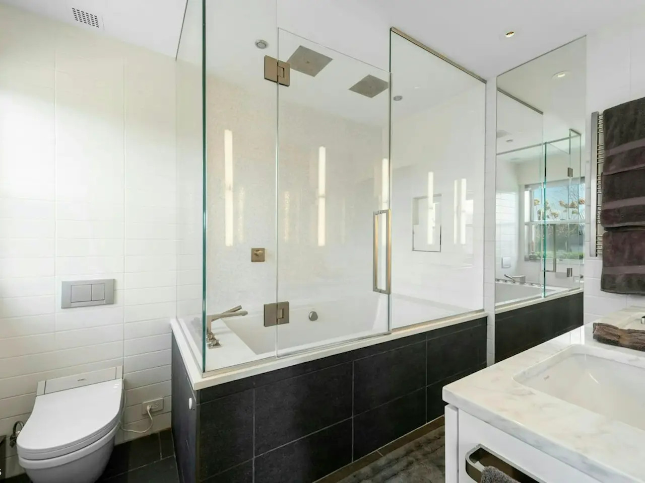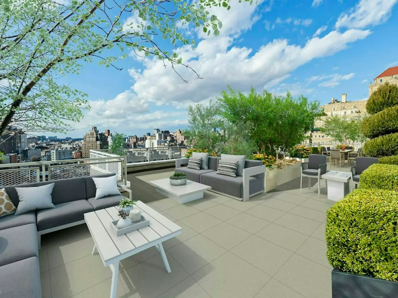 Trophy Terrace at 2 Fifth! Sleek and renovated to perfection, this spectacular Greenwich Village 3 bedroom/3 bath (see alternate floorplan) with unobstructed views, over 9" ceilings, and more than 1,250 square feet of private terraces is the pinnacle of luxury living. Custom retractable glass doors in the living/dining area create a seamless indoor/outdoor experience leading to your majestic terrace. Dramatic open vistas in 3 directions and outdoor space for personal serenity, or cocktails, hors d'oeuvres and dinner is truly rarefied air. A retractable projection TV, built-in Sonos audio, and remote electric solar shades, provides the perfect entertainment combination. Poggenpohl cabinets, top-of-the-line appliances, Caesarstone countertops, water filtration and a built-in coffee station makes this kitchen a cook's favorite. The primary bedroom is over 20' long with Poliform leather-wrapped closets and built-in desk. The en suite bathroom has double sinks, a soaking tub with rainfall shower, and heated towel rack and floors. The second bedroom has its own private terrace and en suite bathroom with steam shower and dressing area. Lutron lighting, Savant smart home system, built-in humidifying system, and all new windows are the perfect must haves. A third full bathroom and generous separate laundry room complete this move-in ready Gold Coast experience. Two Fifth Avenue is a full-service white-glove building in the Gold Coast of Greenwich Village. There is a gym, adult lounge, children's playroom, private library, storage bins, bike room and on-site dry cleaner. Pied-a-terre, pets and co-purchasing are all allowed with board approval. A garage and the circular driveway add to the long list of amenities making this building one of the finest around. Located in one of the most desirable locations in all of New York City; close to fabulous restaurants, shopping and of course, iconic Washington Square Park.
