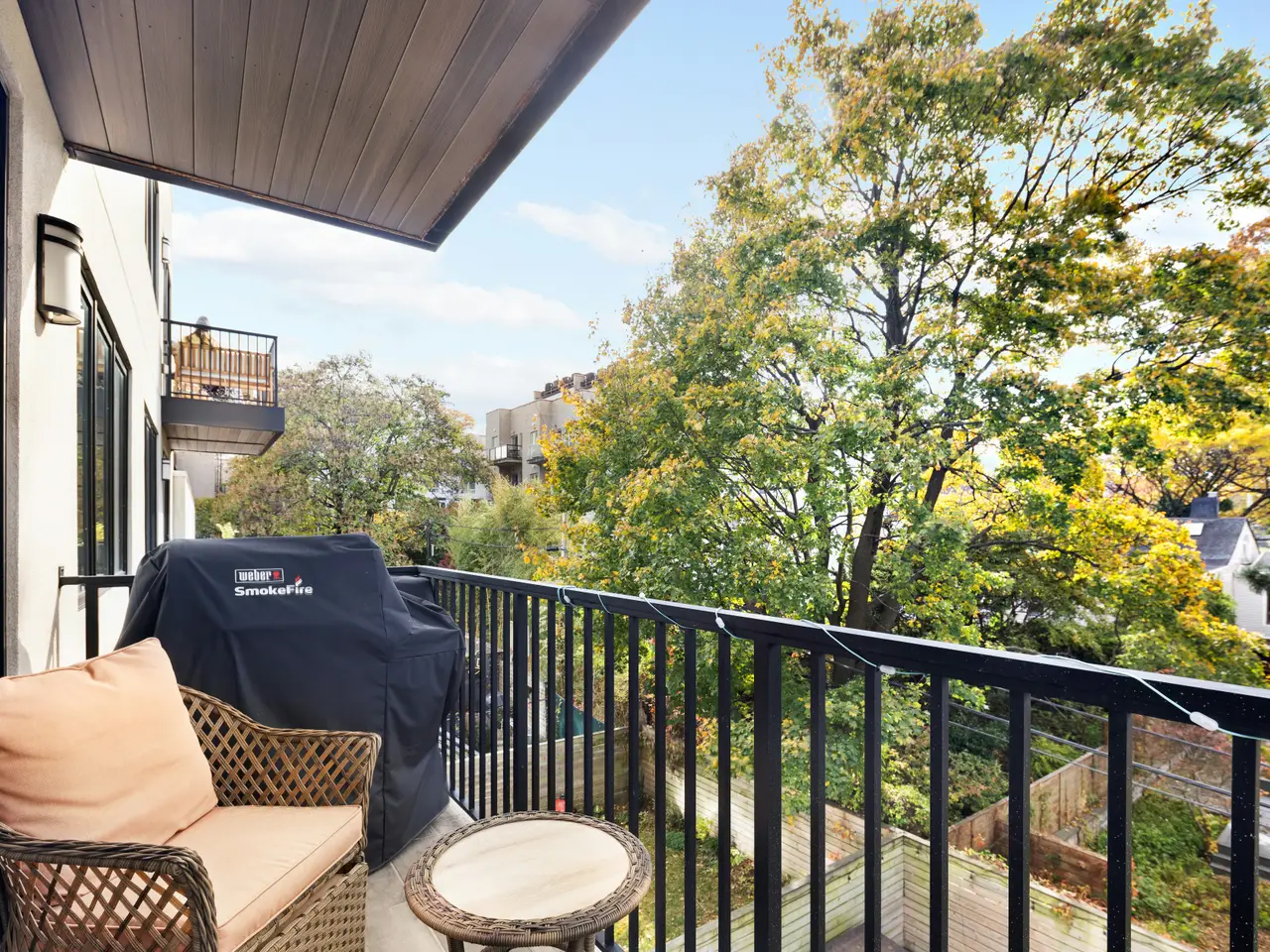 Private terrace overlooking lush backyards