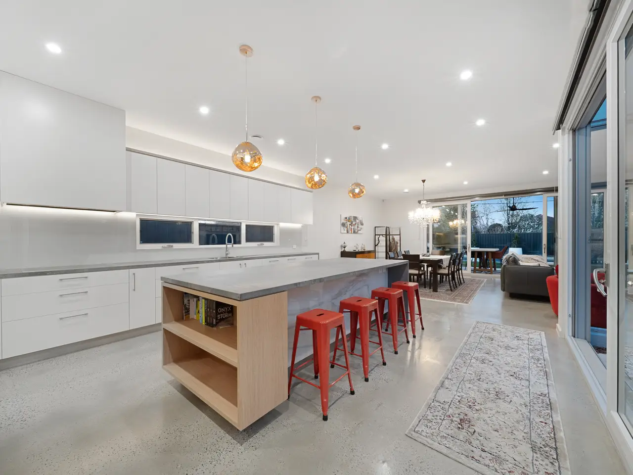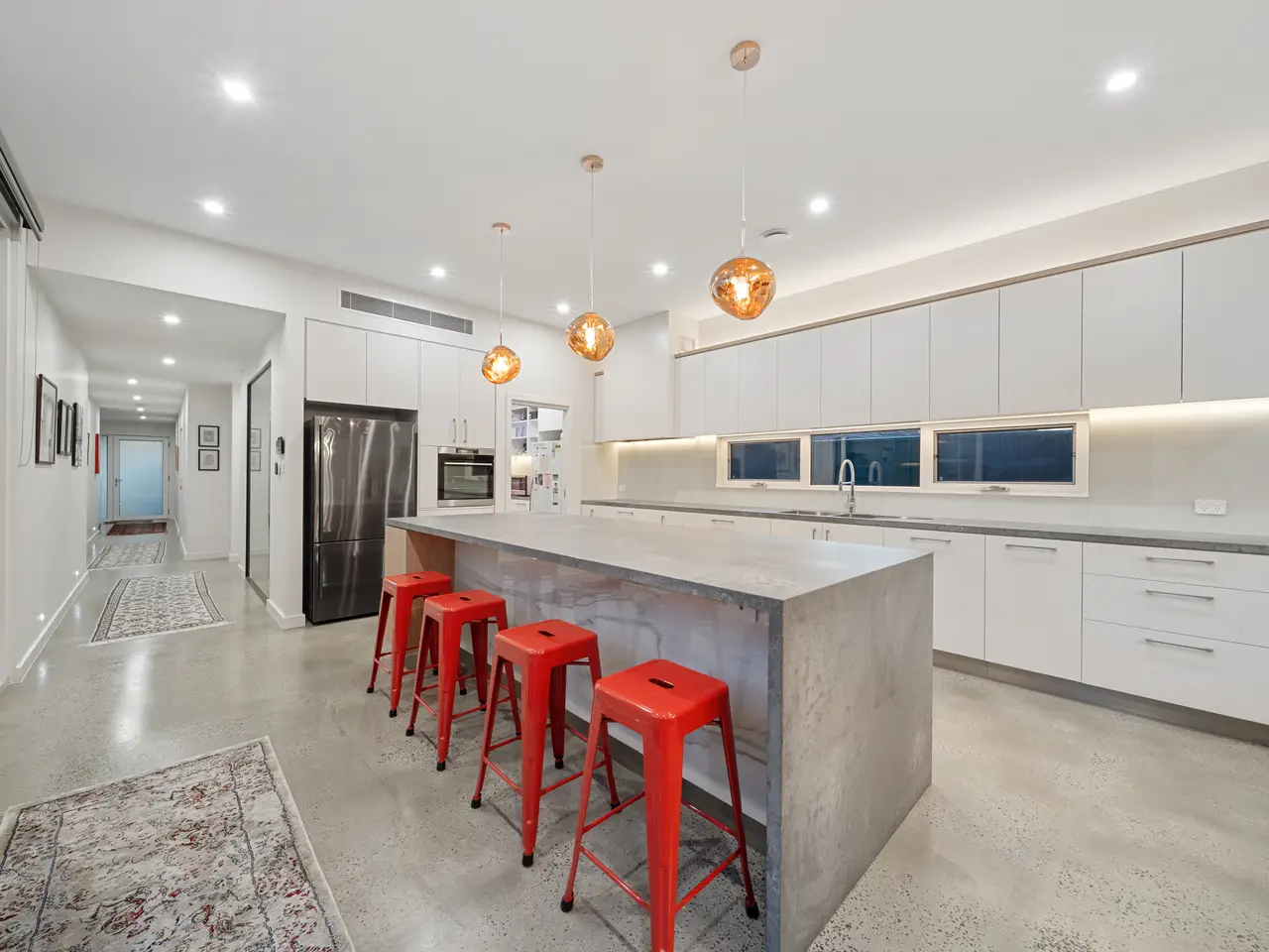 13a Mitchell Street is a true testament to refined elegance, Canberra style and expert craftsmanship. Positioned in a prime location and designed with sophistication, it spans two levels on a 613sqm block, offering a perfect blend of style, functionality, and understated luxury. Every corner of this home has been meticulously crafted to create a space that is both alluring and impeccably finished. The striking exterior showcases modern brickwork paired with dark vertical cladding, delivering an architecturally stunning facade. Inside, the home boasts soaring ceilings, polished concrete flooring, eccentric light fittings, expansive windows, and multiple green-emersed courtyards that flood the space with natural light and offer seamless transitions between indoor and outdoor living areas. The palatial living space extends to a spectacular poolside entertainment area, perfect for hosting or relaxing. The gourmet kitchen is a chef's dream, featuring an uninterrupted, sleek stone island benchtop with marble and timber accents, a spacious butler's pantry, and a wine cellar with integrated door access. Top-of-the-line appliances, including a AEG oven and an electric induction cooktop, and a large breakfast bar, complete the space. The private master suite, situated downstairs, includes a walk-in robe, a large ensuite, and views to a beautiful courtyard. A study overlooks the front courtyard, providing the perfect amount of natural light. The carpeted staircase leads you to three generously sized bedrooms, each with built-in wardrobes, and a second living room. The main bathroom and two powder rooms are designed with the same attention to space and luxury, complementing the overall aesthetic of the home. A two-car enclosed carport with concrete flooring provides internal access. The centerpiece of the home is the expansive outdoor entertainment area, where large sliding doors connect the indoors with the landscaped pool area, covered alfresco, and expansive lawn. The alfresco features a built-in BBQ, and above you will find in-built heaters for year-round comfort. This residence is the epitome of luxury living, where every detail has been thoughtfully designed and impeccably executed to create a home that is as functional as it is beautiful. * 4-bedroom ensuite home with two living areas and a study * Striking brickwork and dark vertical cladding for an architecturally stunning exterior. * Two levels spanning 271sqm with soaring ceilings and polished concrete flooring. * Expansive windows and multiple courtyards flood the home with natural light. * Sleek stone island benchtop, marble and timber accents, butler's pantry, and top-tier appliances (AEG oven, induction cooktop). * Downstairs master suite with walk-in robe, ensuite, and courtyard views. * 3 generously sized upstairs bedrooms with built-in wardrobes and a second living room. * Large sliding doors lead to a landscaped pool area, covered alfresco with built-in BBQ and heaters. * Main bathroom and two powder rooms designed with attention to luxury and space. * Study area overlooking the front courtyard with abundant natural light. * Two-car enclosed carport with concrete flooring and internal access. * Thermally wrapped for outstanding energy efficiency. EER: 6.0 Living Size: 271.78sqm (approx.) Rates: $9,037pa (approx.) Land Tax: $15,241 (approx.) Whilst all care has been taken to ensure accuracy in the preparation of the particulars herein, no warranty can be given, and interested parties must rely on their own enquiries. This business is independently owned and operated by Belle Property Canberra. ABN 95 611 730 806 trading as Belle Property Canberra.