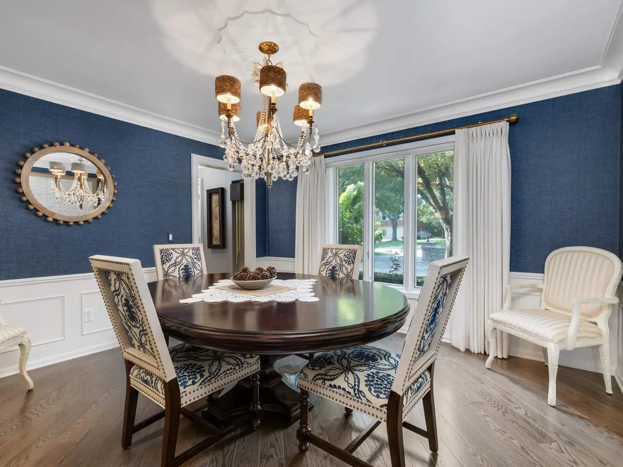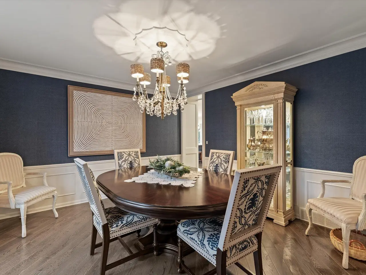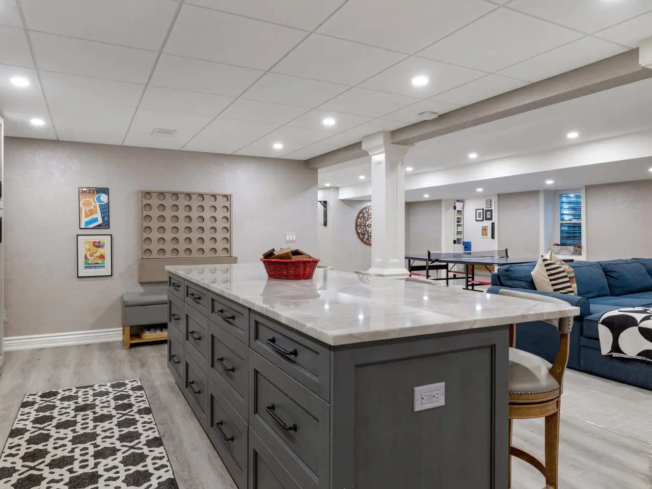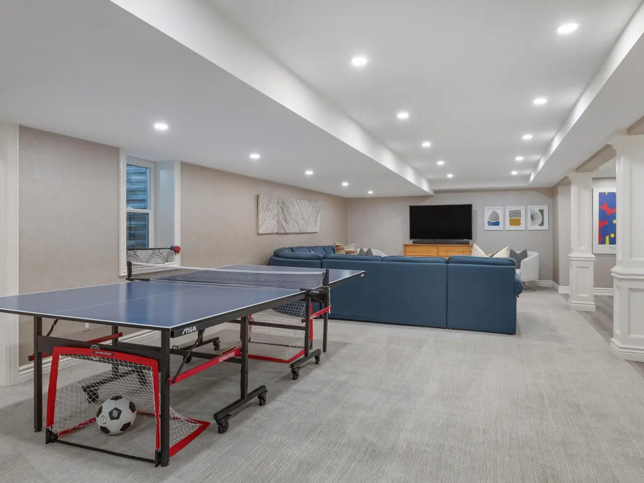Welcome to 54 Belle Meade, not just a home but a recently renovated sanctuary looking for its new family. With 5 bedrooms, 4 and a half bathrooms, custom Milennium Kitchen and bathrooms, this tastefully designed home is key turn ready and waiting for you. On the top floor you'll find the primary suite with a large bathroom area with built in vanity, and multiple closets. A secondary bedroom also has a built in vanity with light up mirror. A third bedroom has soaring ceiling and beautiful chandelier. Down the staircase to the first floor you will find your office, guest bathroom, piano room with built in bookcases and a new bay window. From there you move across the main entry hall into the tv room that has a large built-in tv all with more bookshelves and a wet bar for entertaining. The tv room leads into the spacious and bright custom Millennium Kitchen. Here you will find high end appliances from Wolf and Subzero. The counters are Cristallo, the cooktop is induction, a double oven, and microwave is integrated into the island, with 4 freezer drawers and a pantry. Look closely and you will see a hidden coffee station with special cabinets that pop-out for storing kitchen and speciality items. There is a hidden cabinet with a tv over the oven as well. Off the kitchen is an oversized laundry room with a service door to the garage and courtyard. The laundry room has multiple closets, a laundry shoot and conveniently located full bathroom. The entrance to the basement is located in the laundry room. Here you will find a second custom kitchen, workout room with floor to ceiling mirrors, another full bathroom, flex room currently used as an art room, second laundry, with ample storage. The basement is a special place for entertaining with the ability to have a mutli-generational family live as well. Nest and C02 detectors have been installed throughout the home, as well as recessed lighting, and a Sonos sound system through the first floor, garage, and patio. In the front courtyard is a basketball net and installed flood light for night time games on the court, in the back an oversized patio for entertaining in you own secluded oasis. Back here you will also find a permanently affixed grill connected to the home's gas line. This stunner is not to be missed.