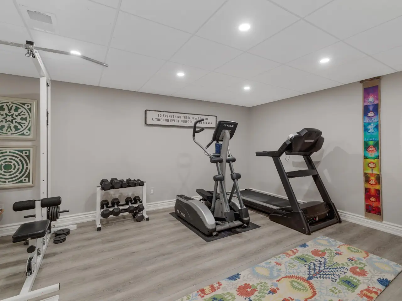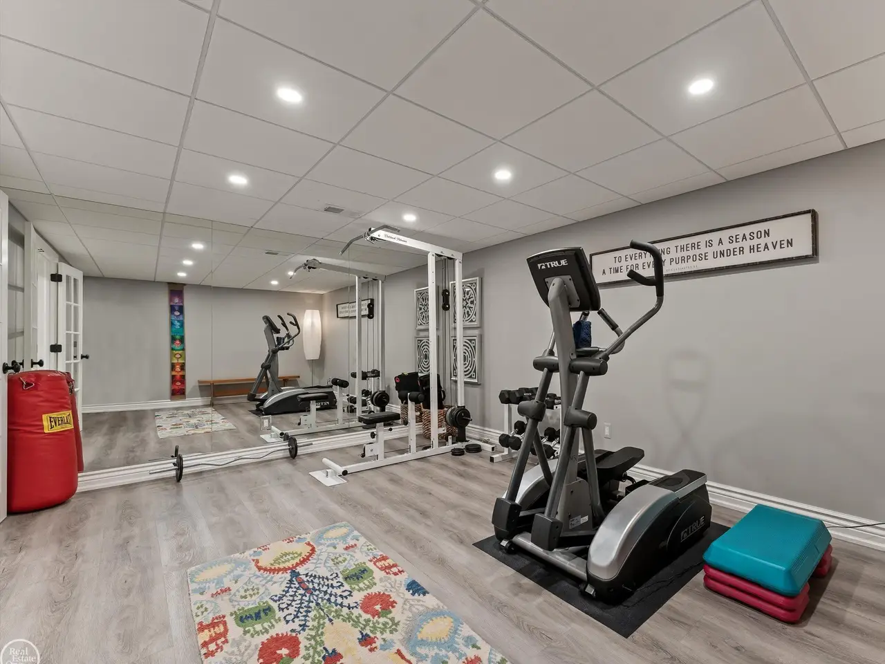 Floor-to-ceiling mirrors in workout room